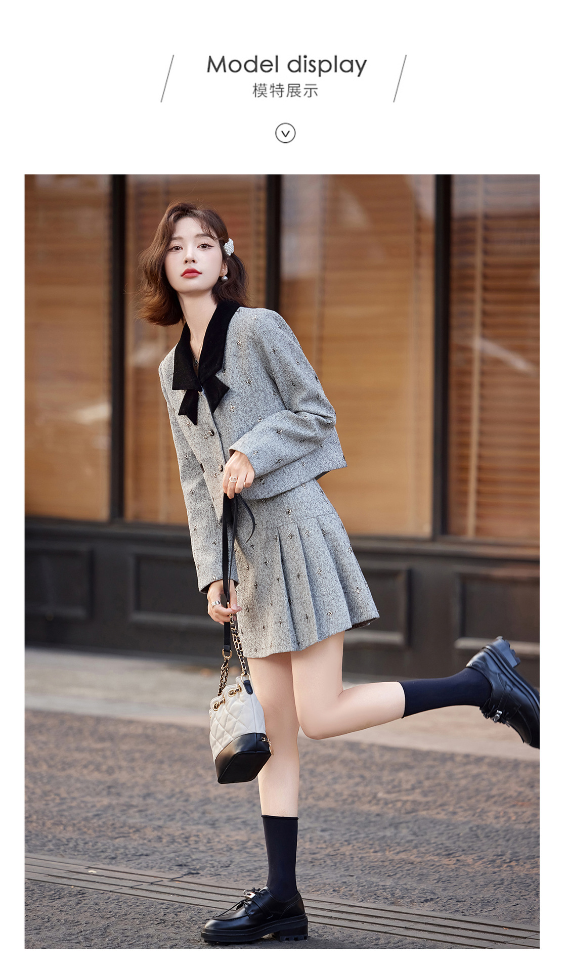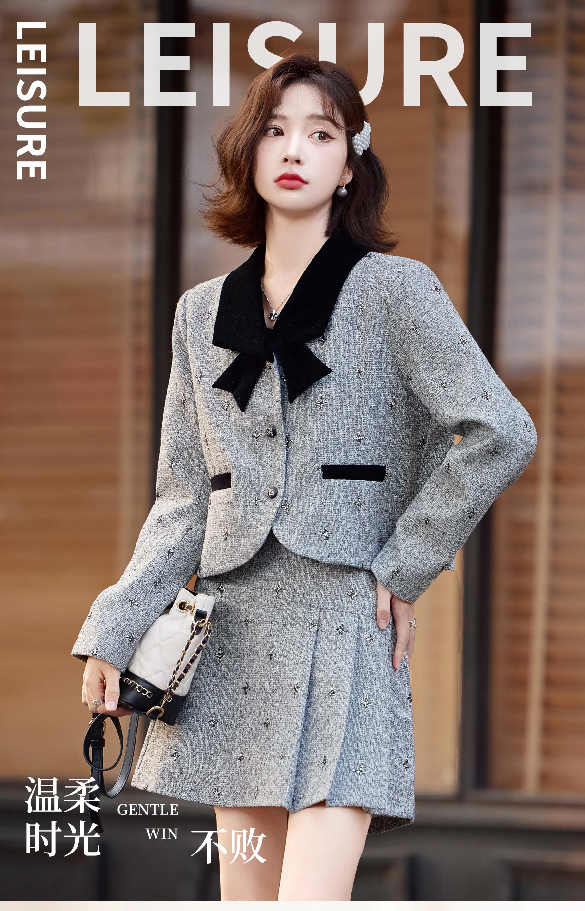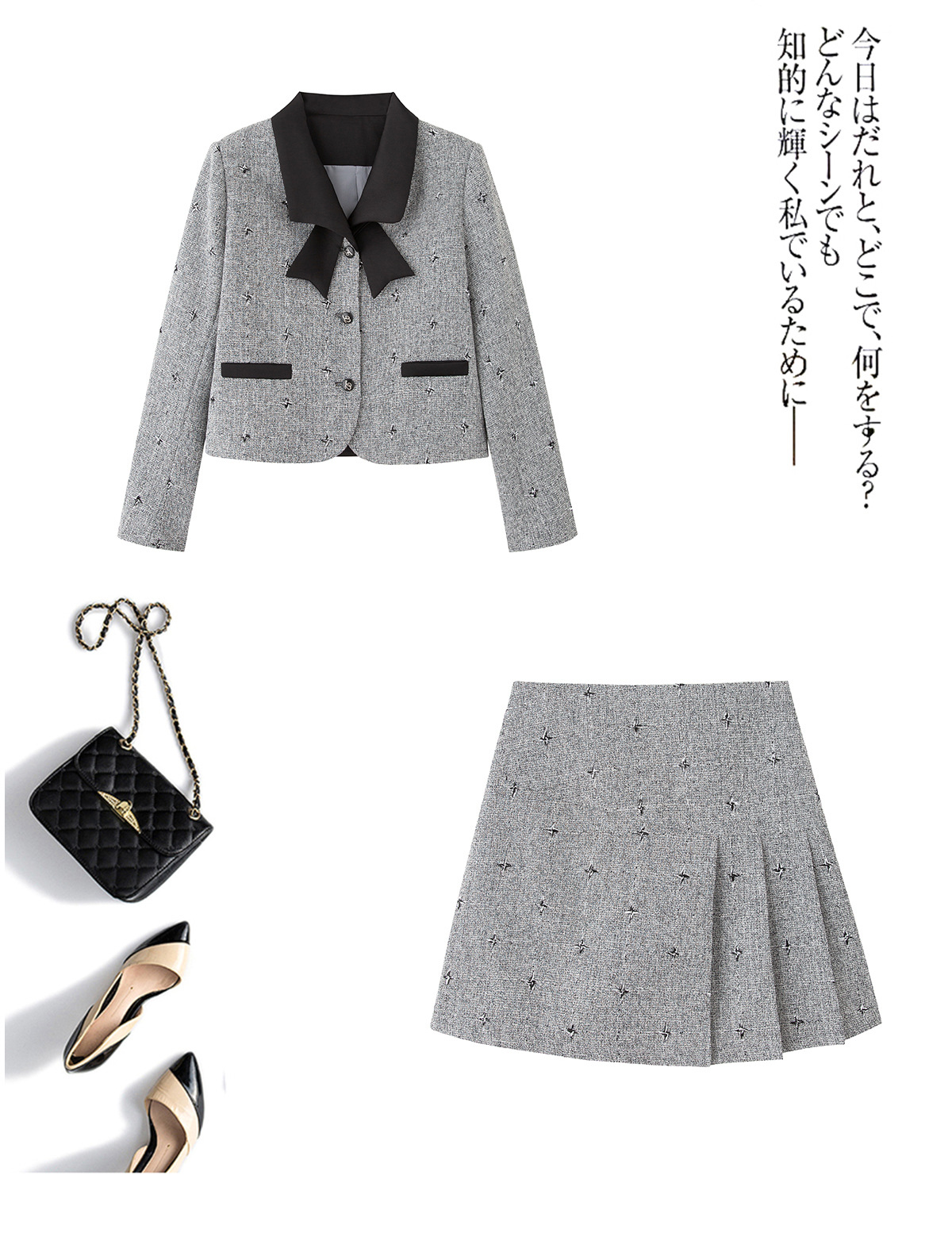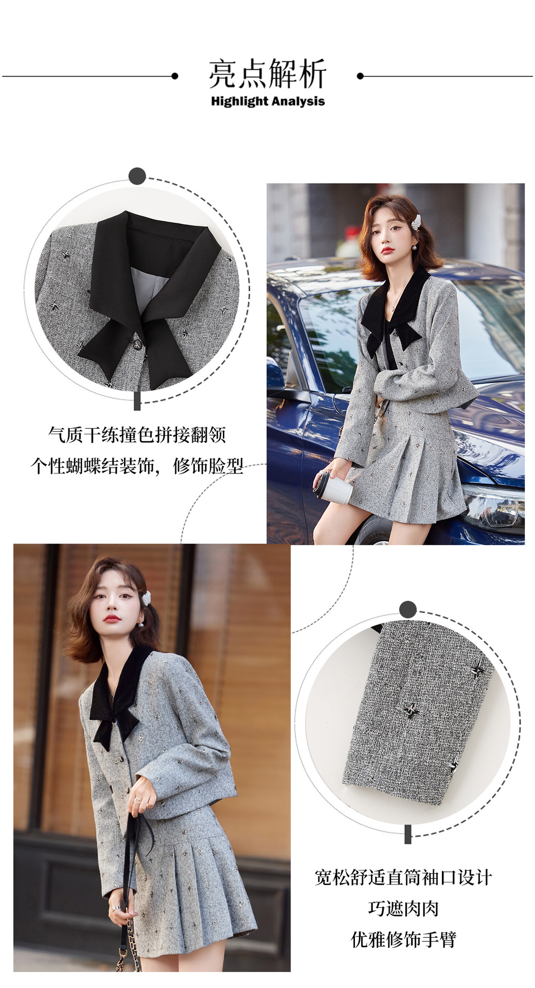 小香风蝴蝶结套装,时尚气质减龄撞色小个子两件套裙HR-ZYQQ10