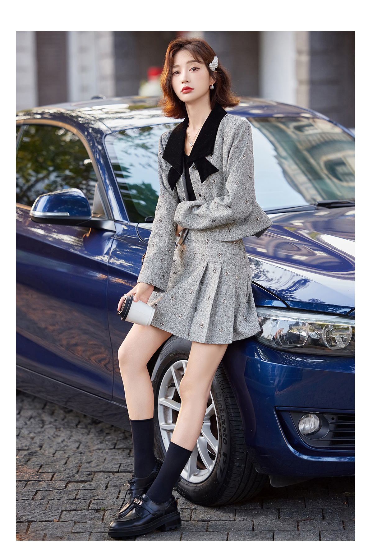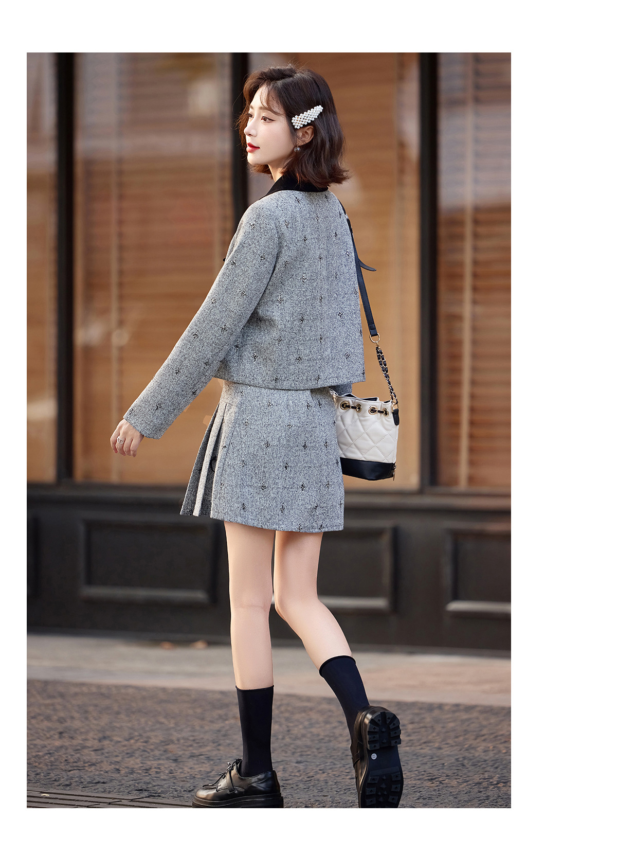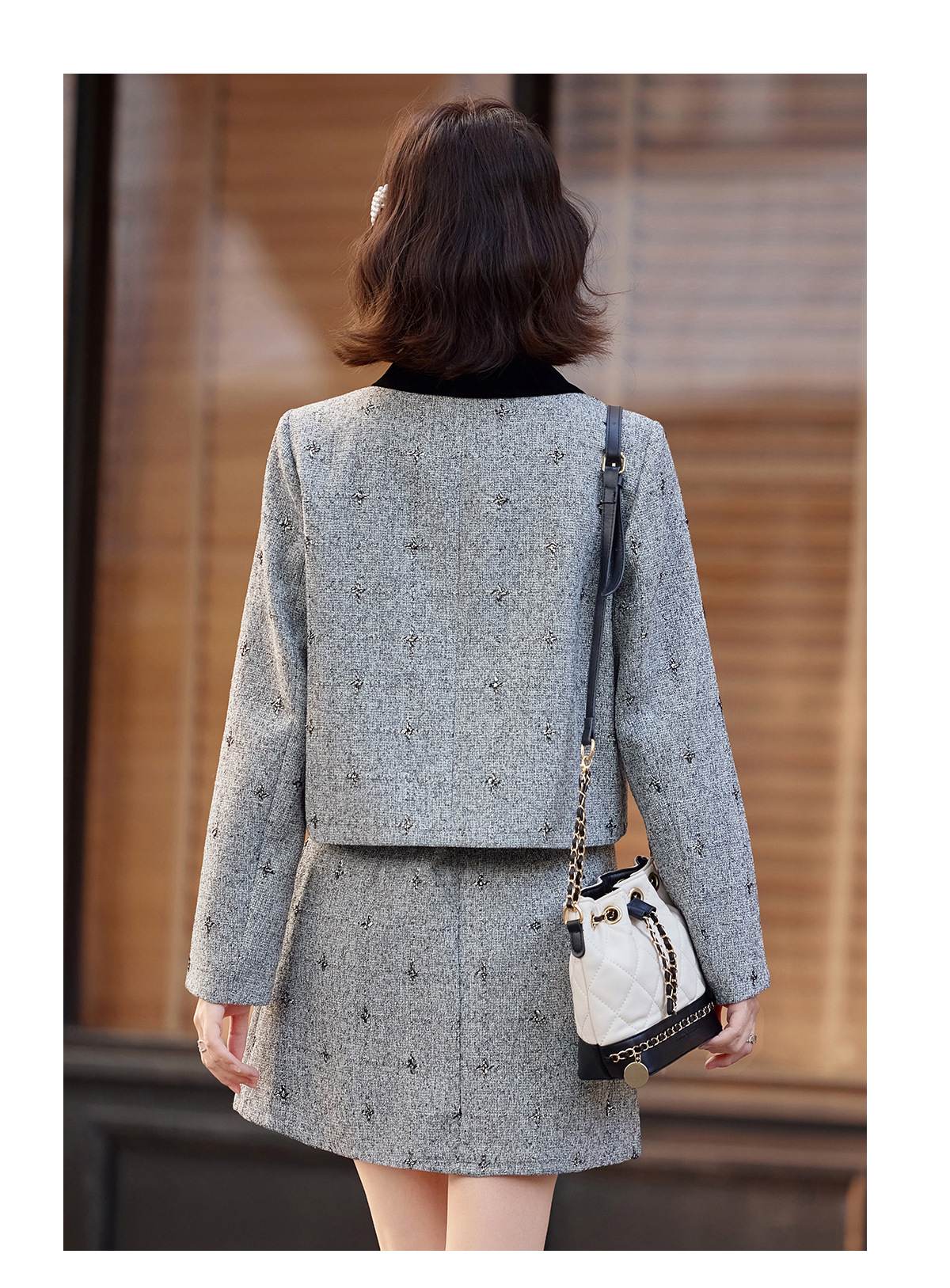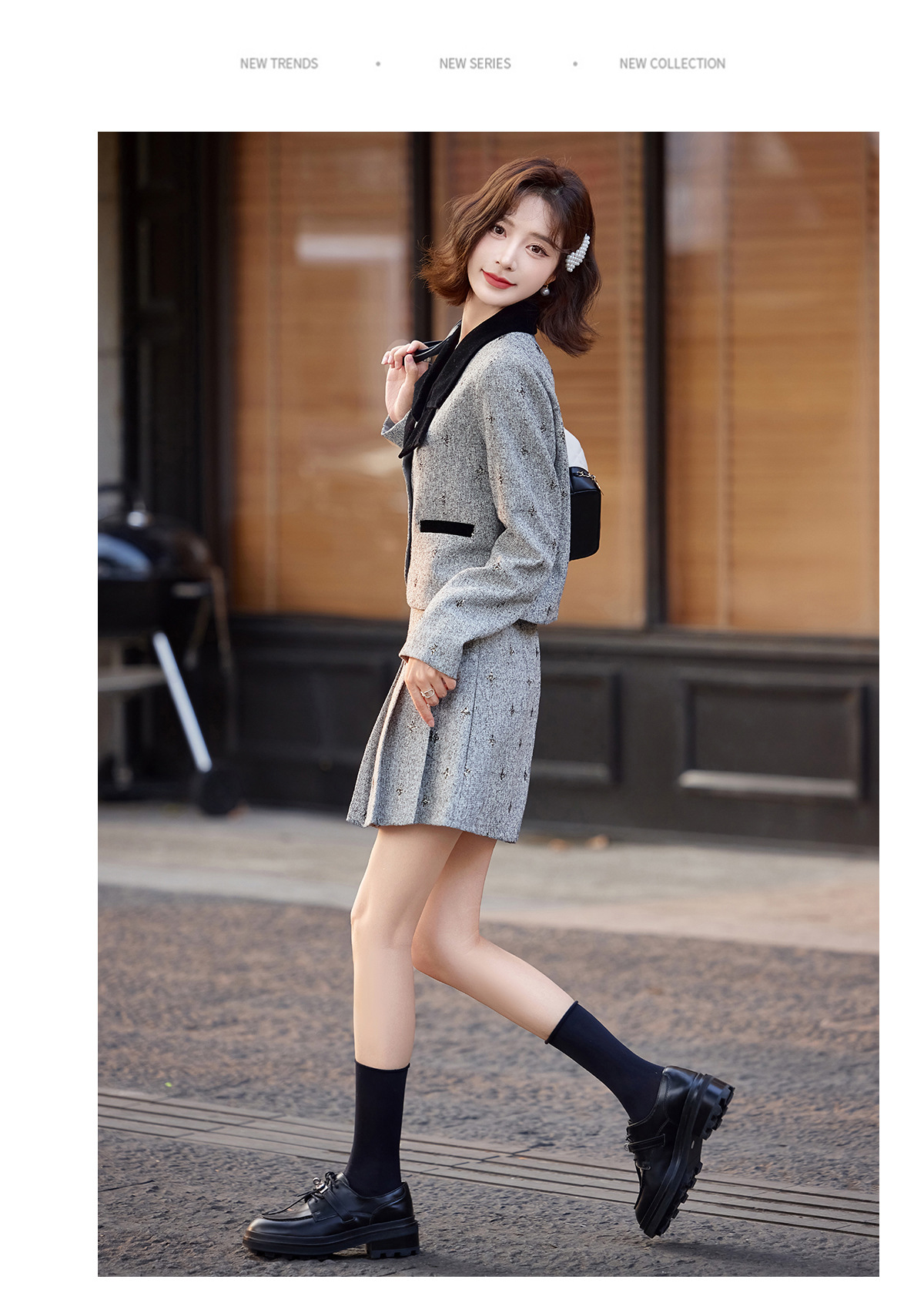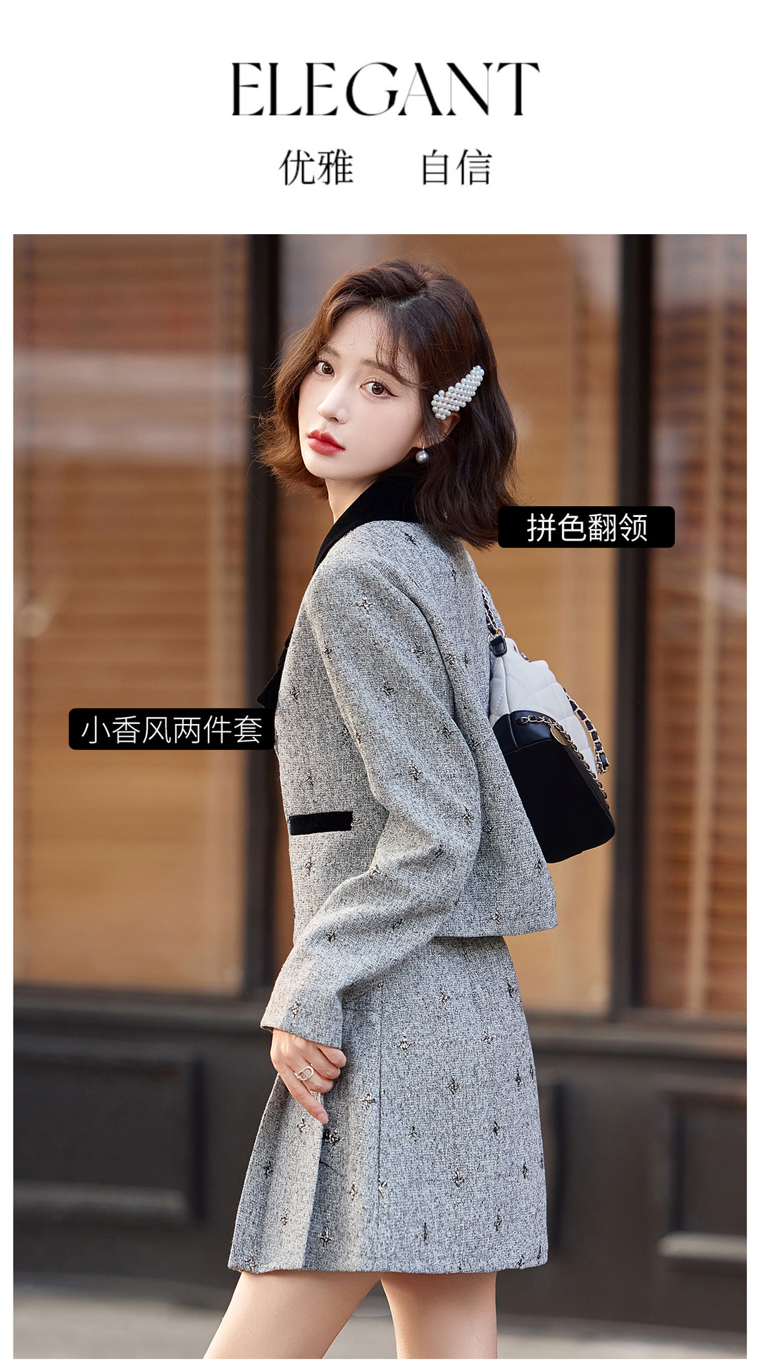 小香风蝴蝶结套装,时尚气质减龄撞色小个子两件套裙HR-ZYQQ10