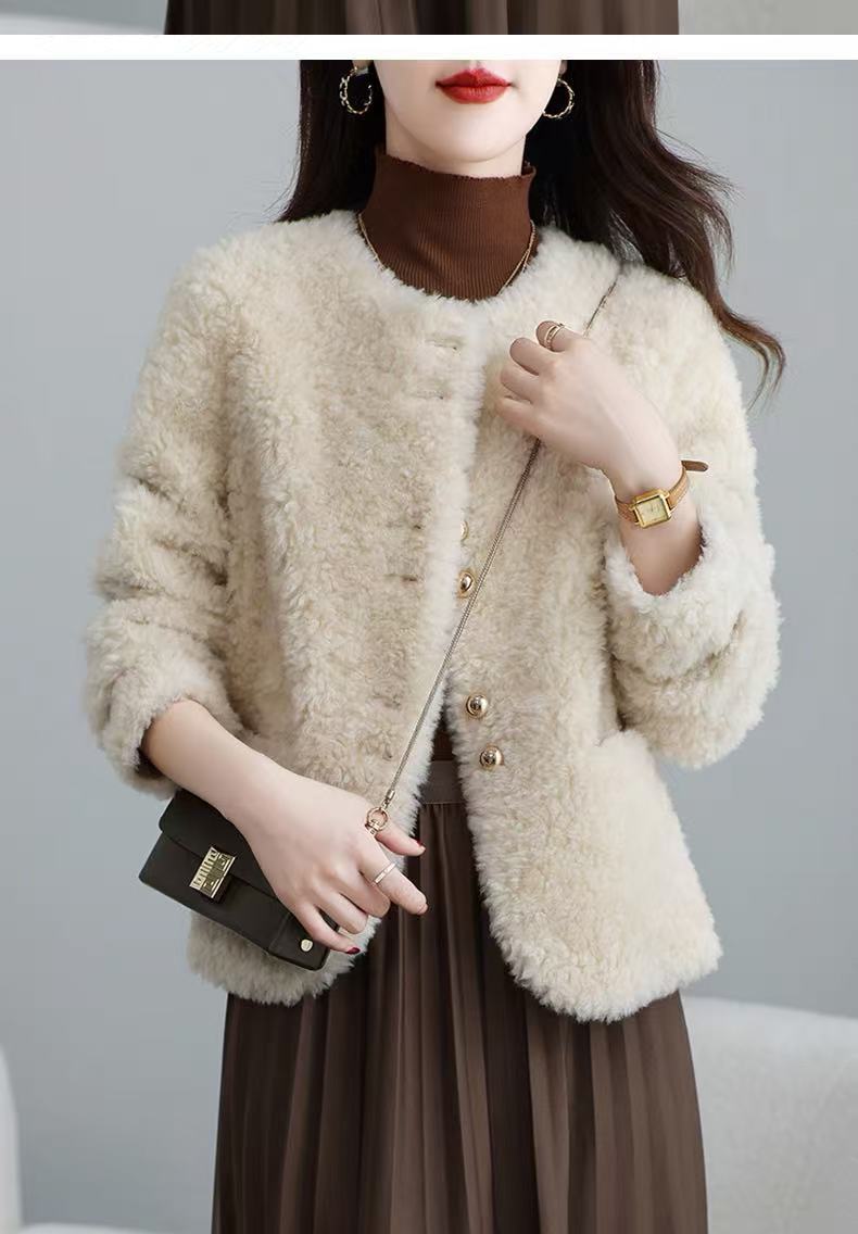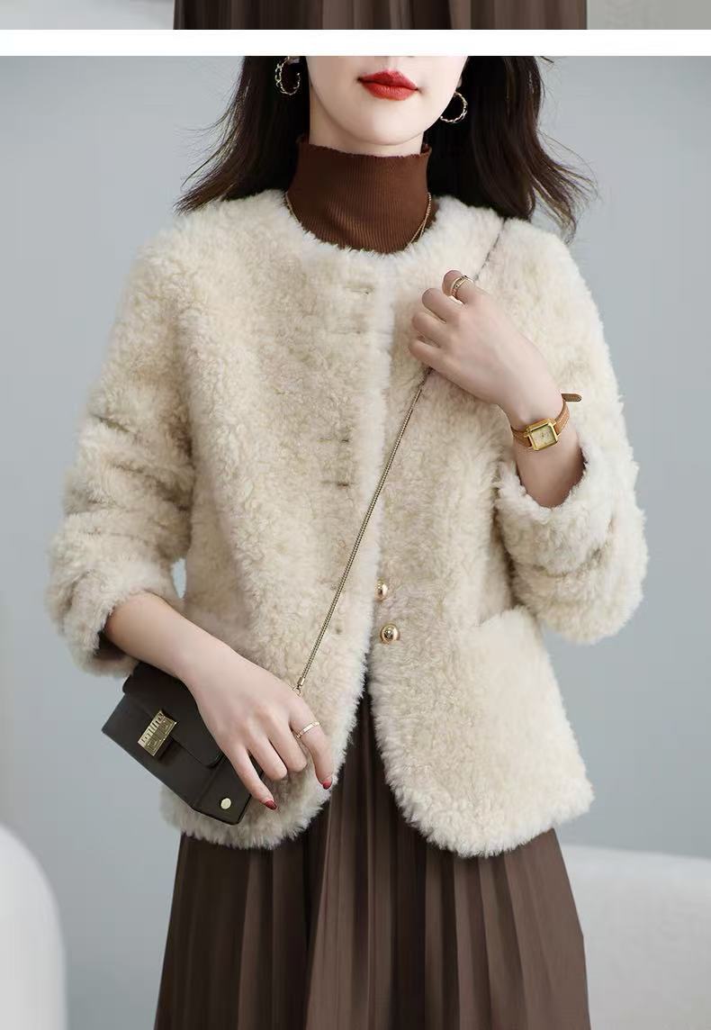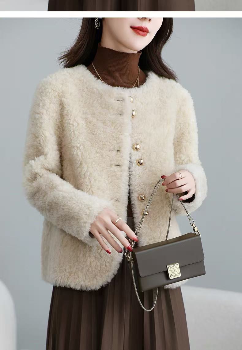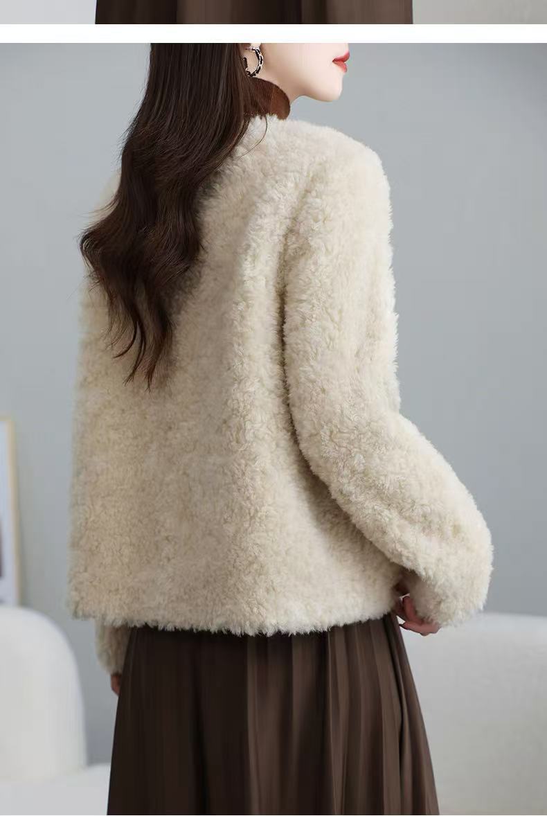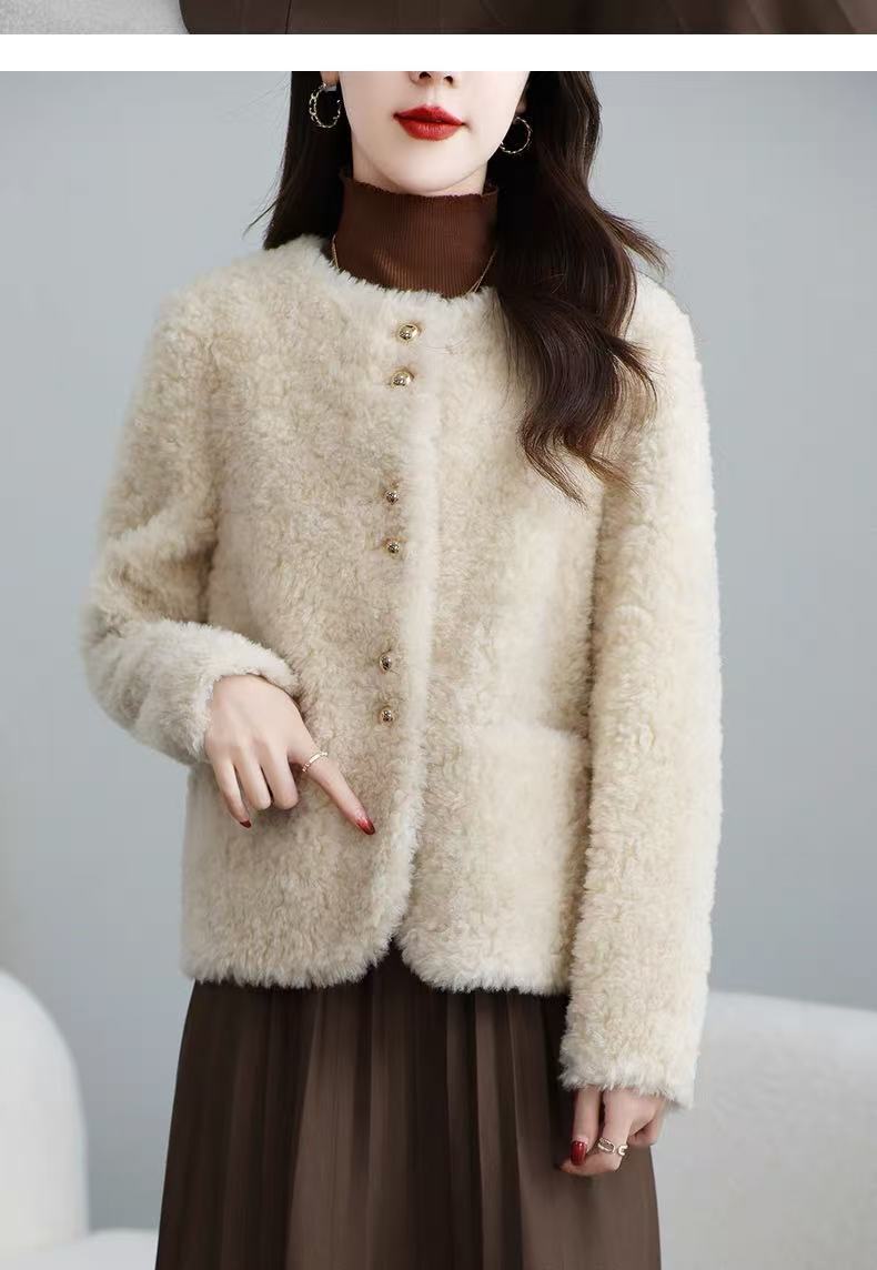 丁摩 皮毛一体羊剪绒小香风羊羔毛大衣8501