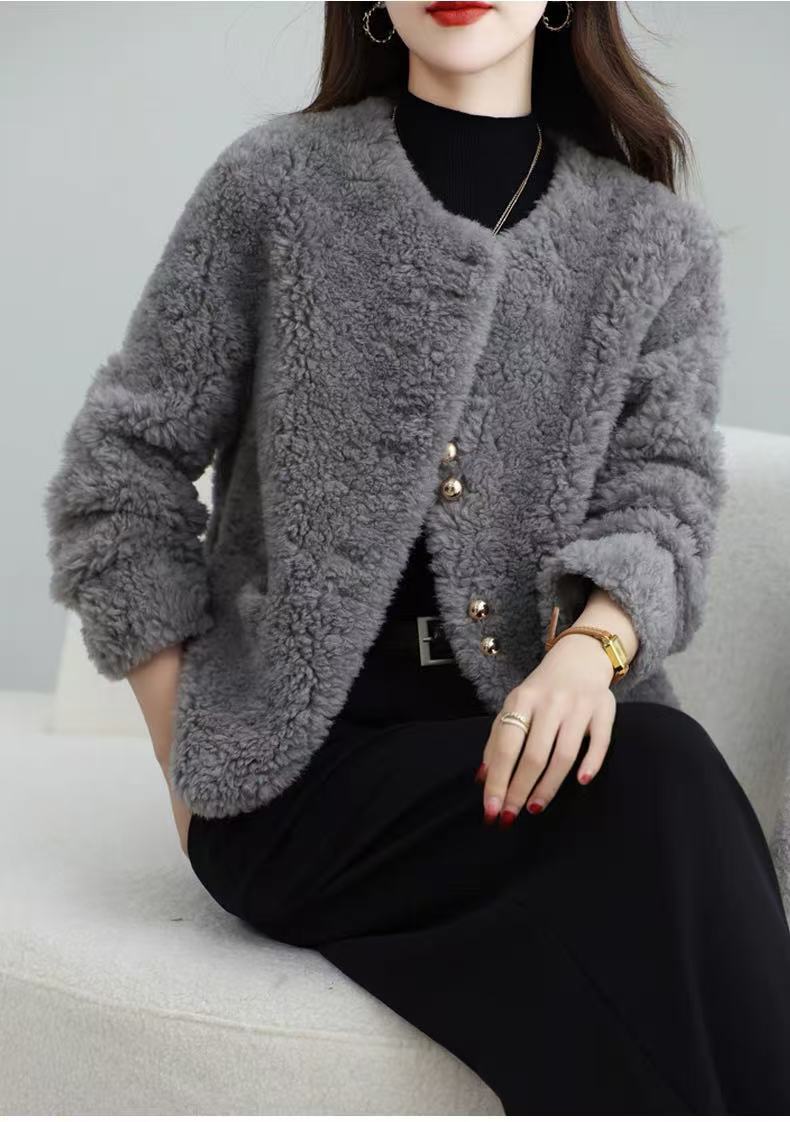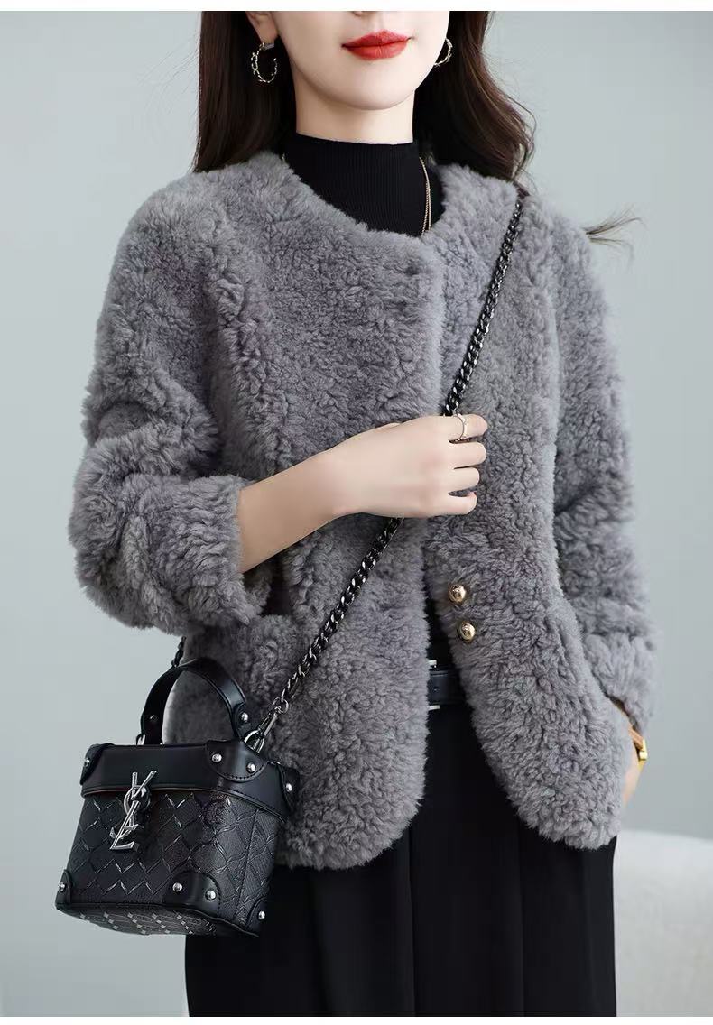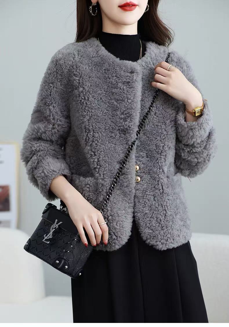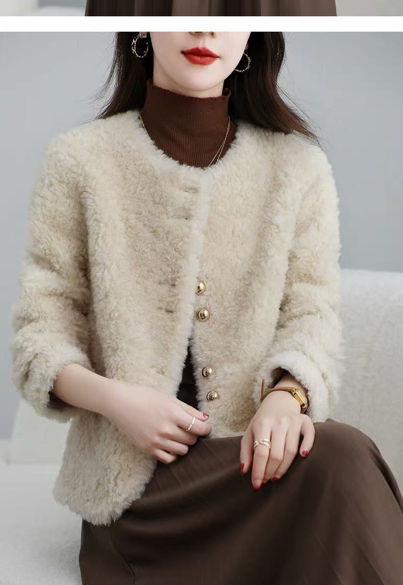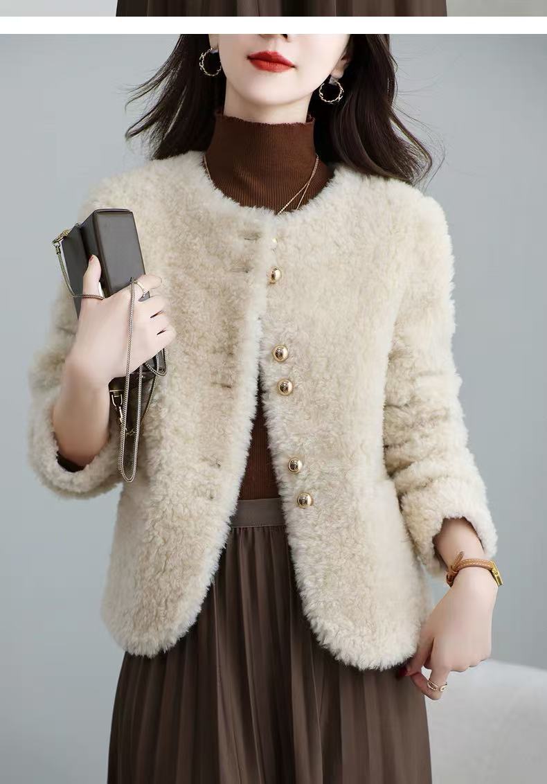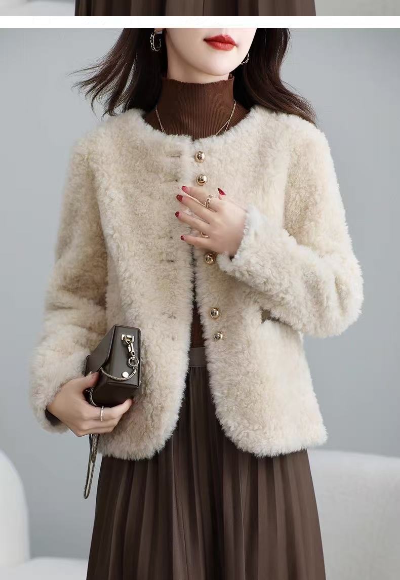 丁摩 皮毛一体羊剪绒小香风羊羔毛大衣8501