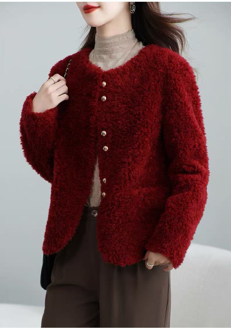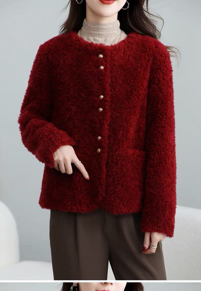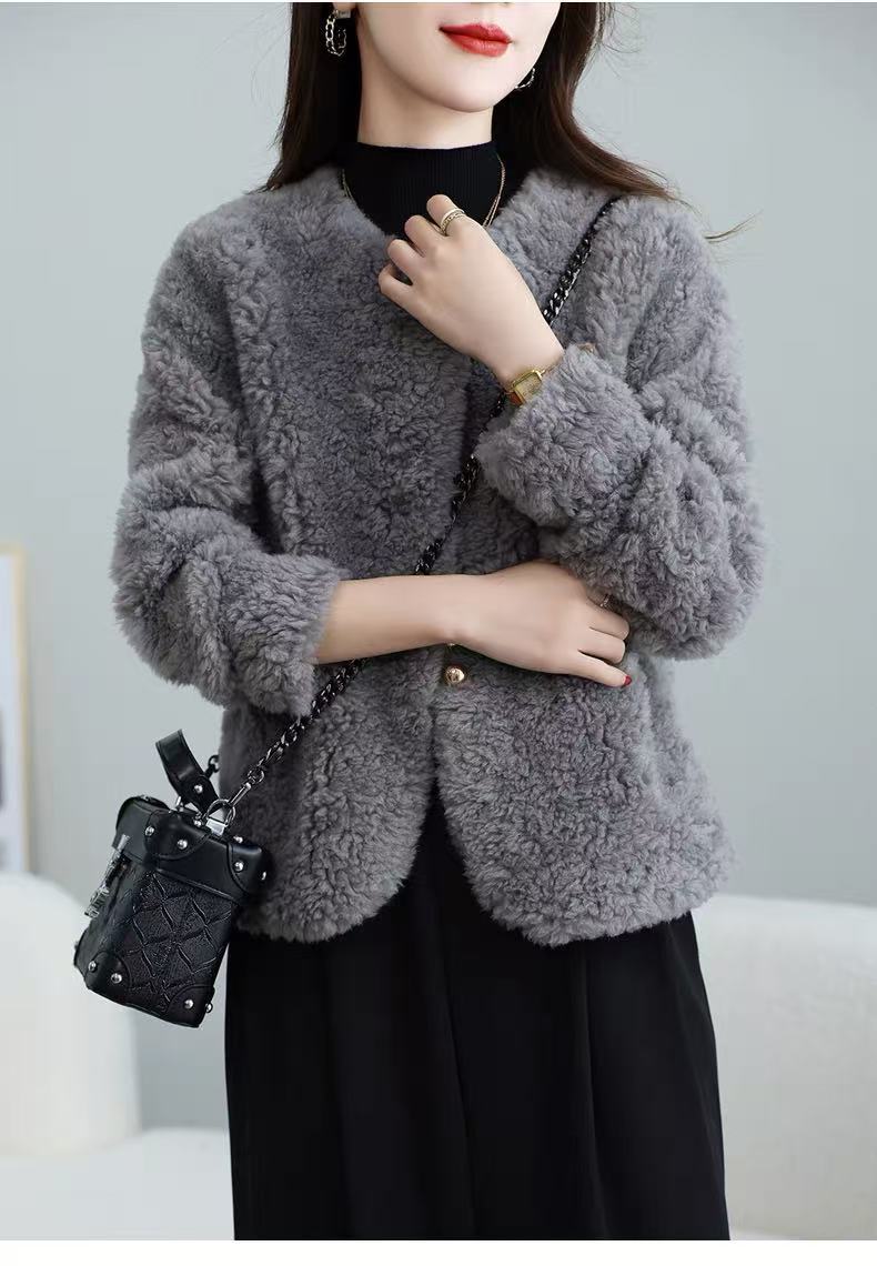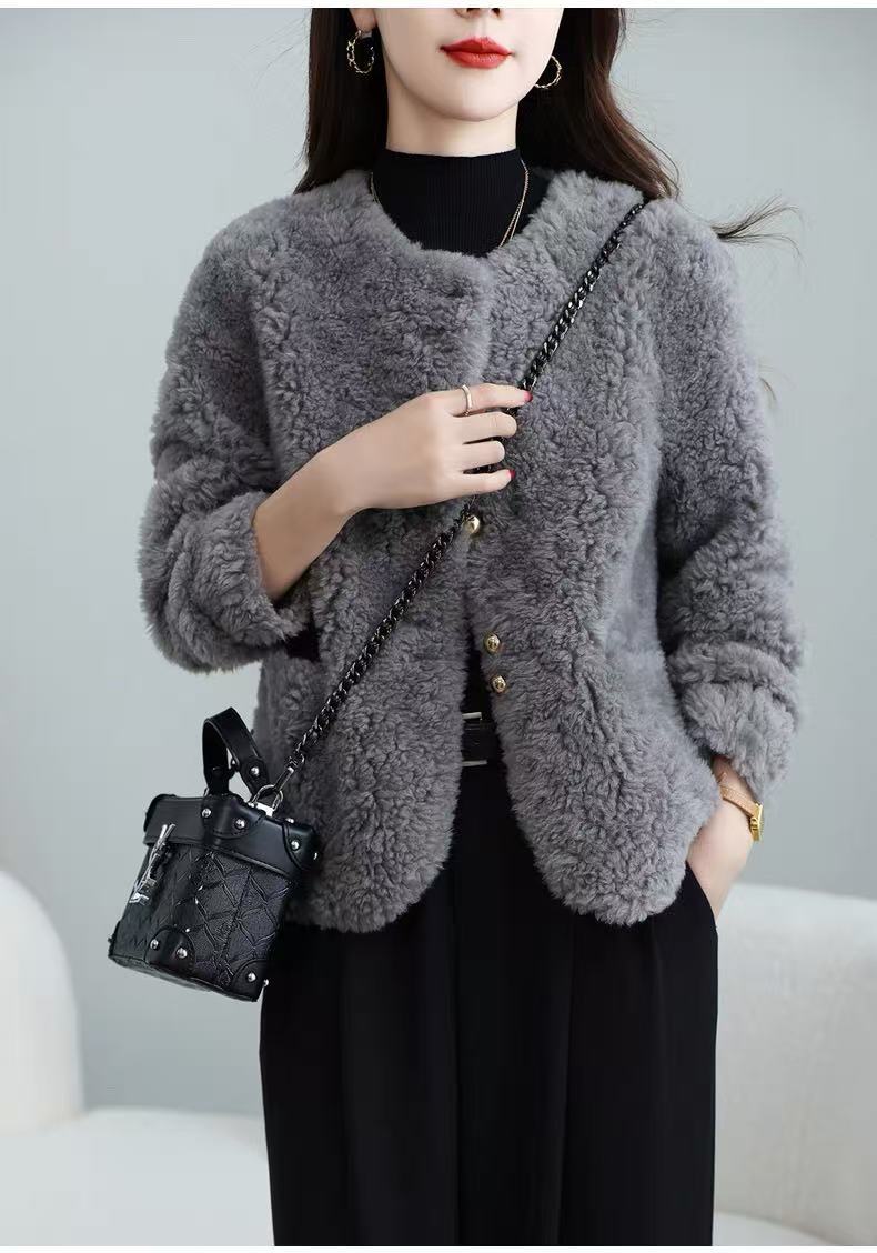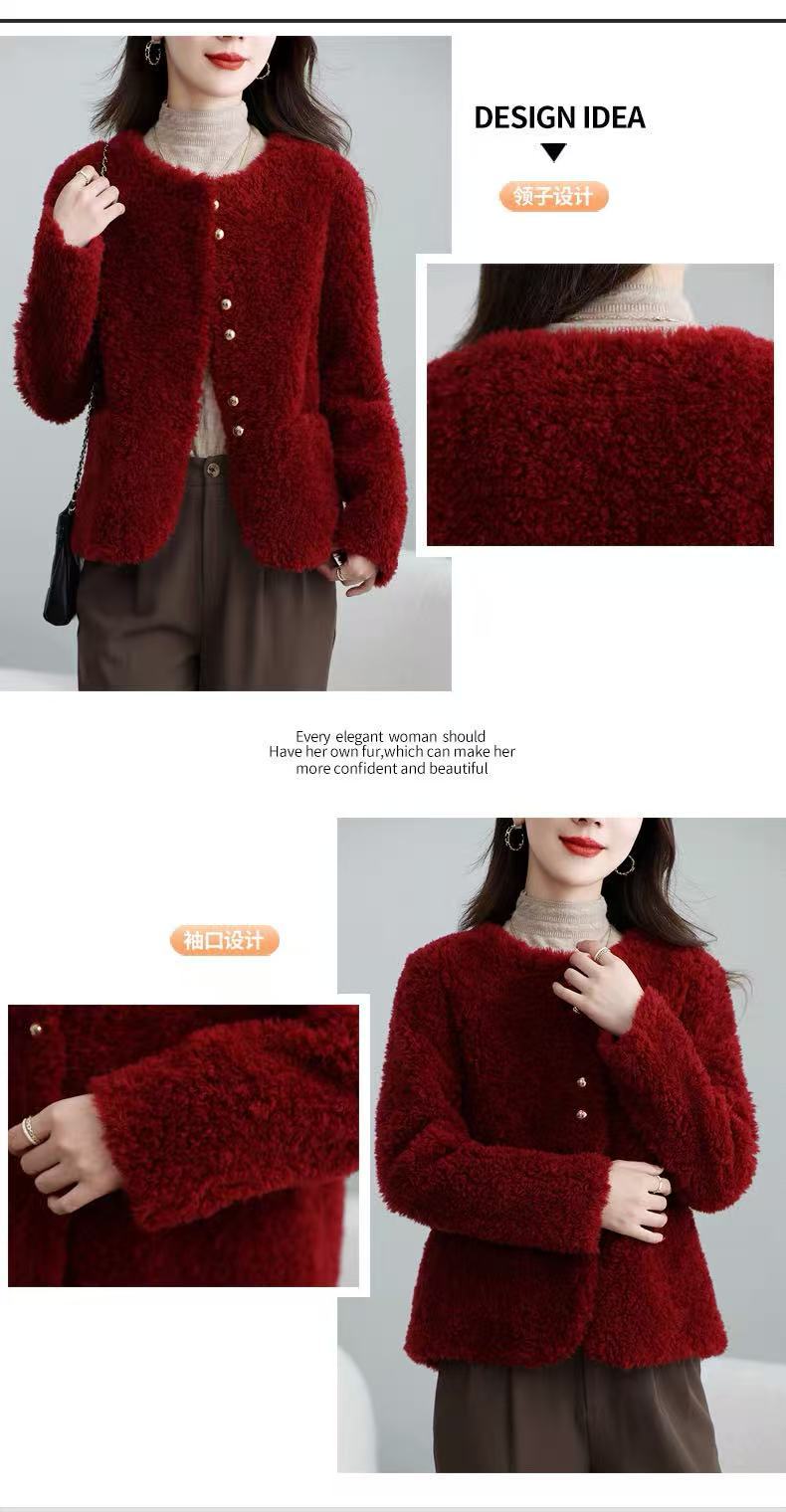 丁摩 皮毛一体羊剪绒小香风羊羔毛大衣8501
