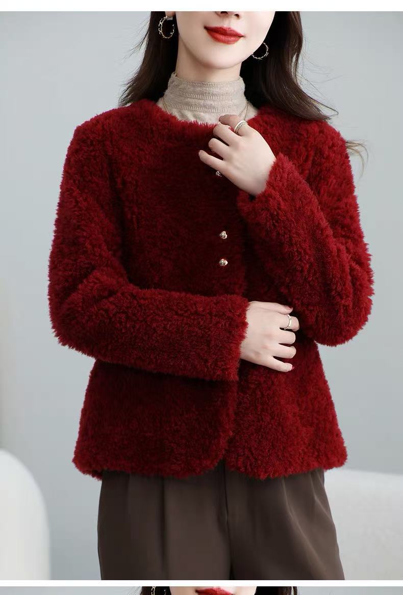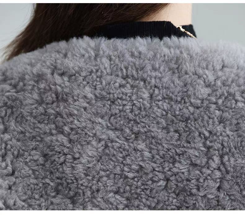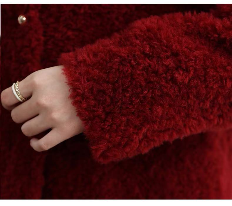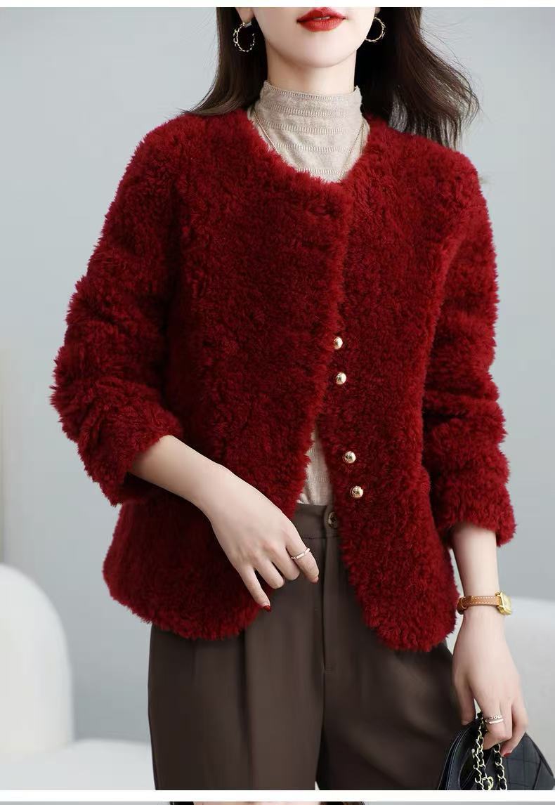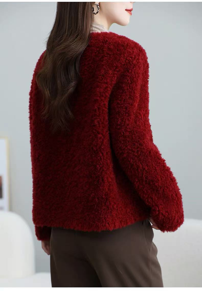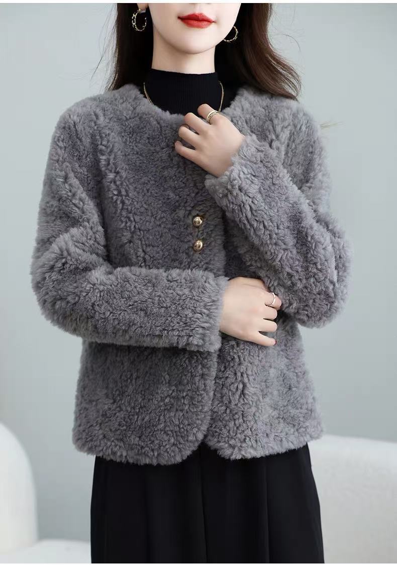 丁摩 皮毛一体羊剪绒小香风羊羔毛大衣8501