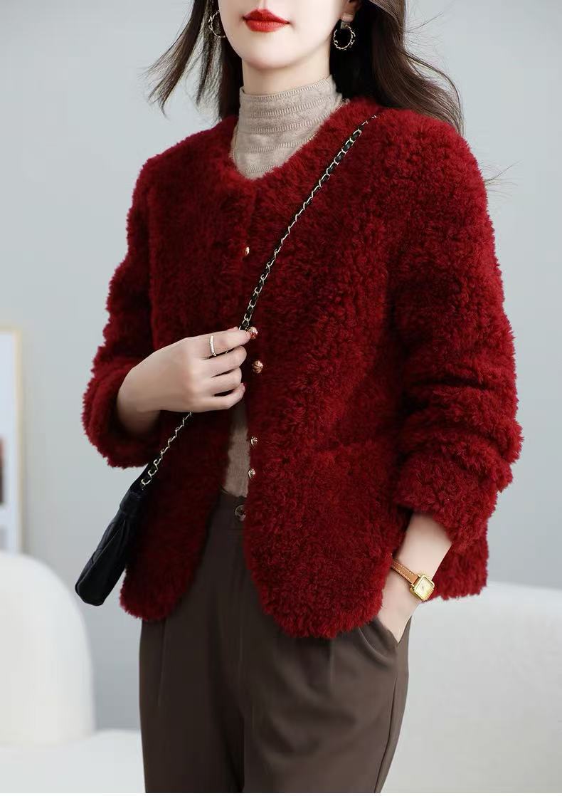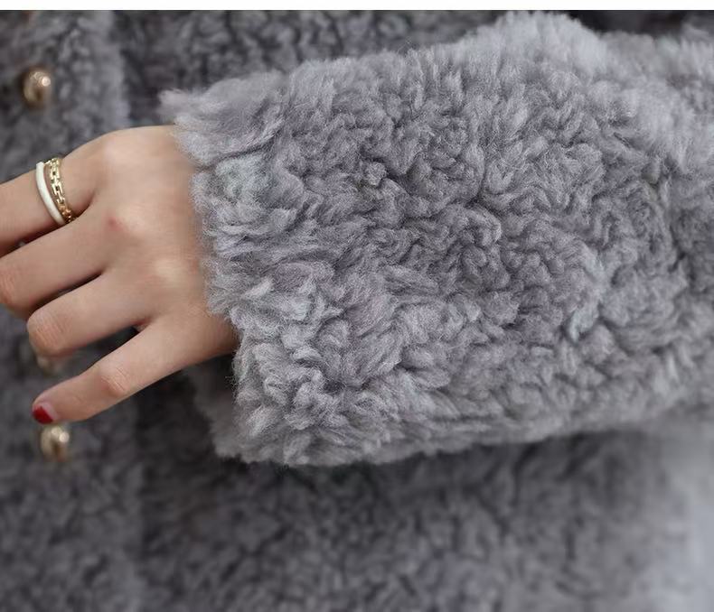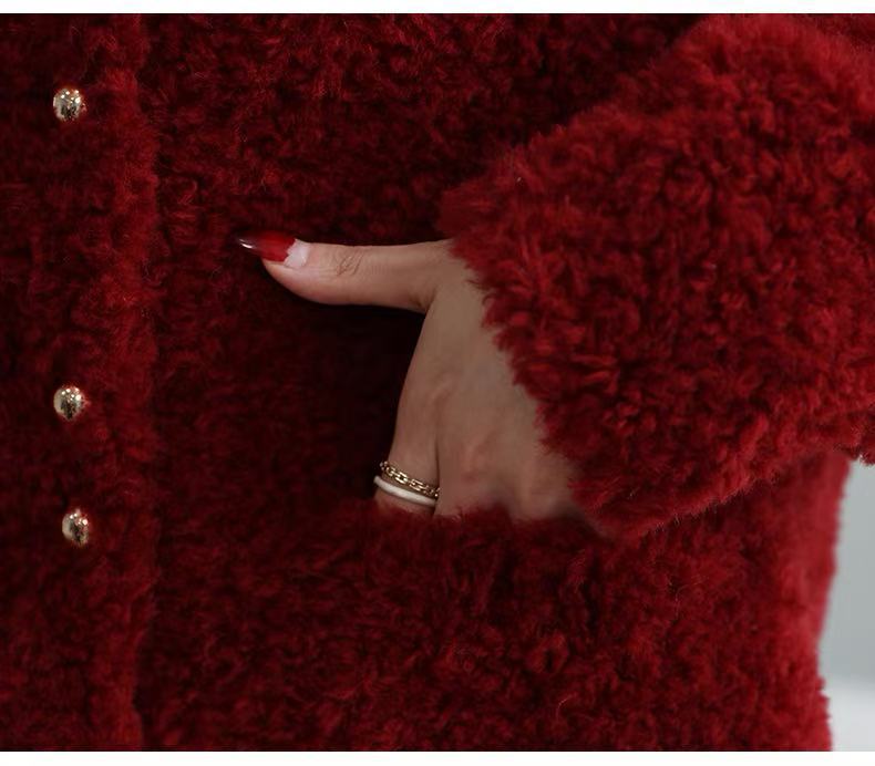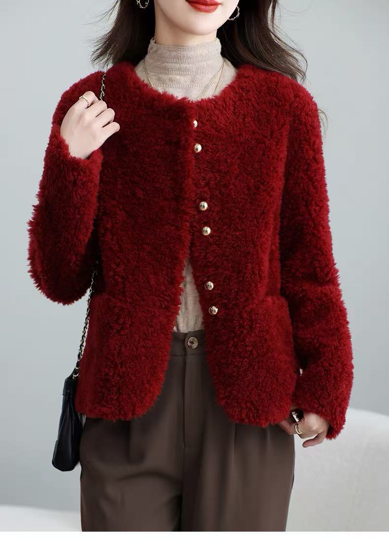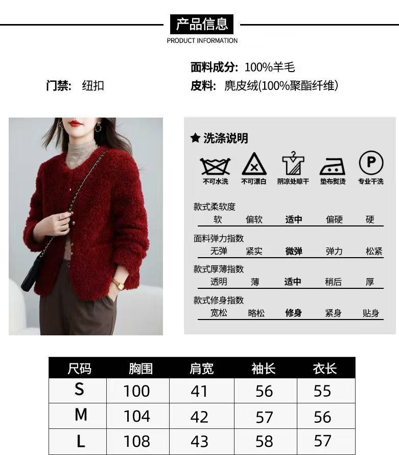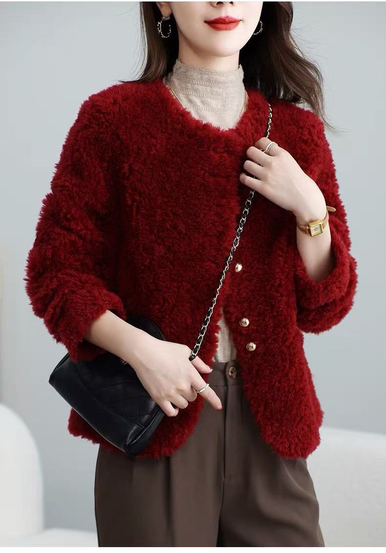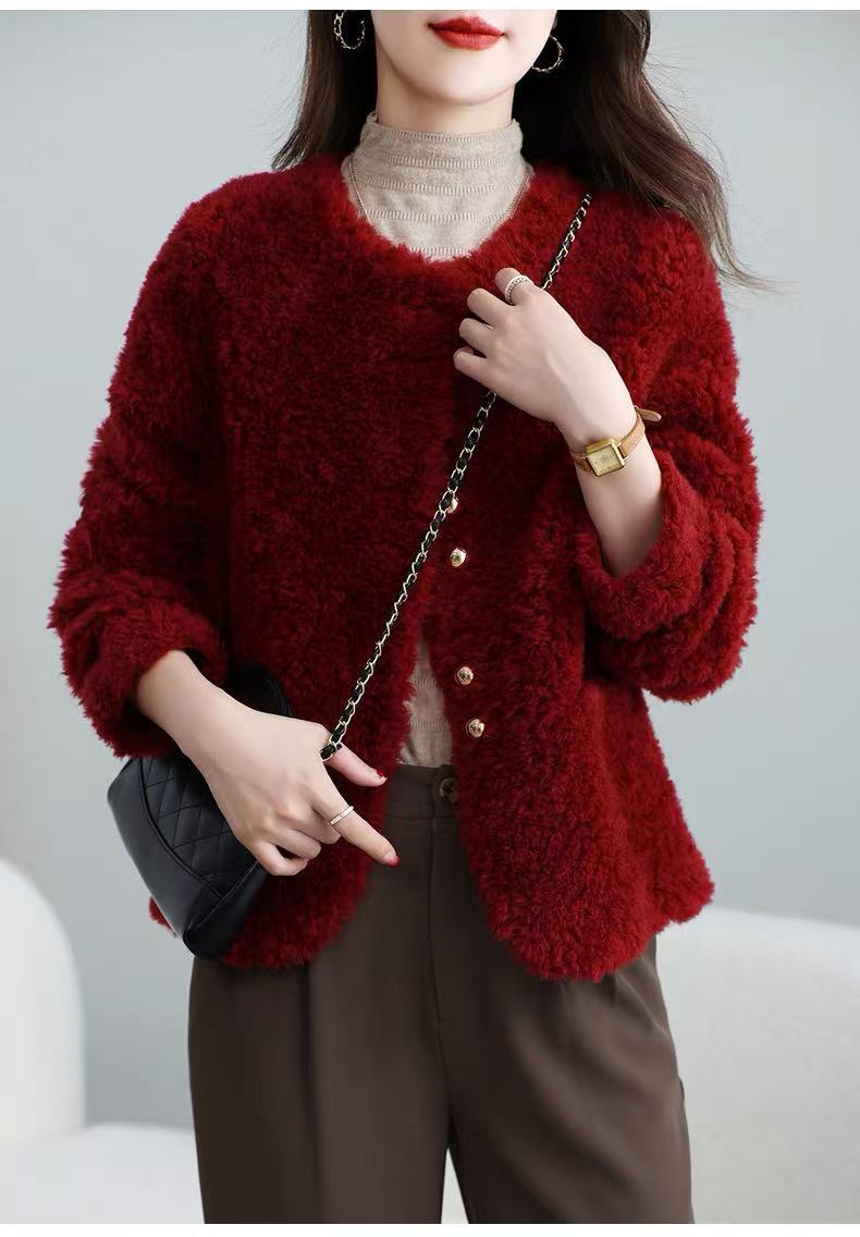 丁摩 皮毛一体羊剪绒小香风羊羔毛大衣8501
