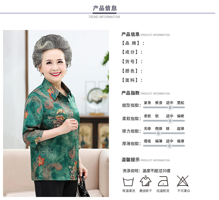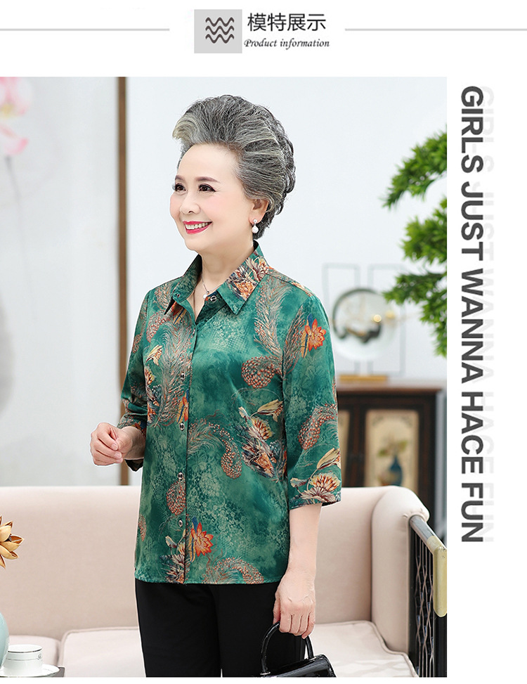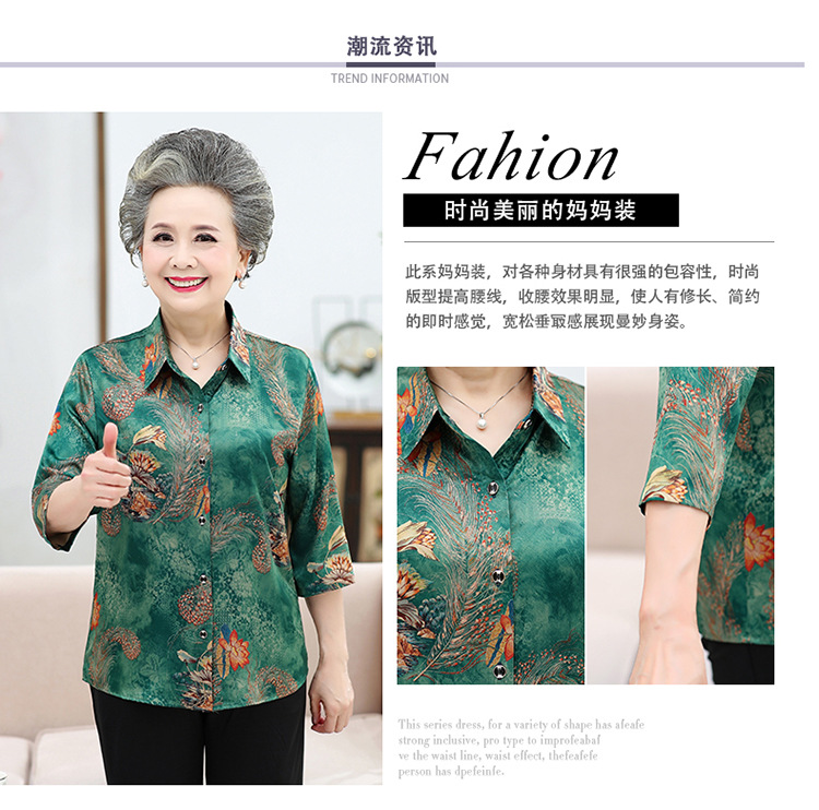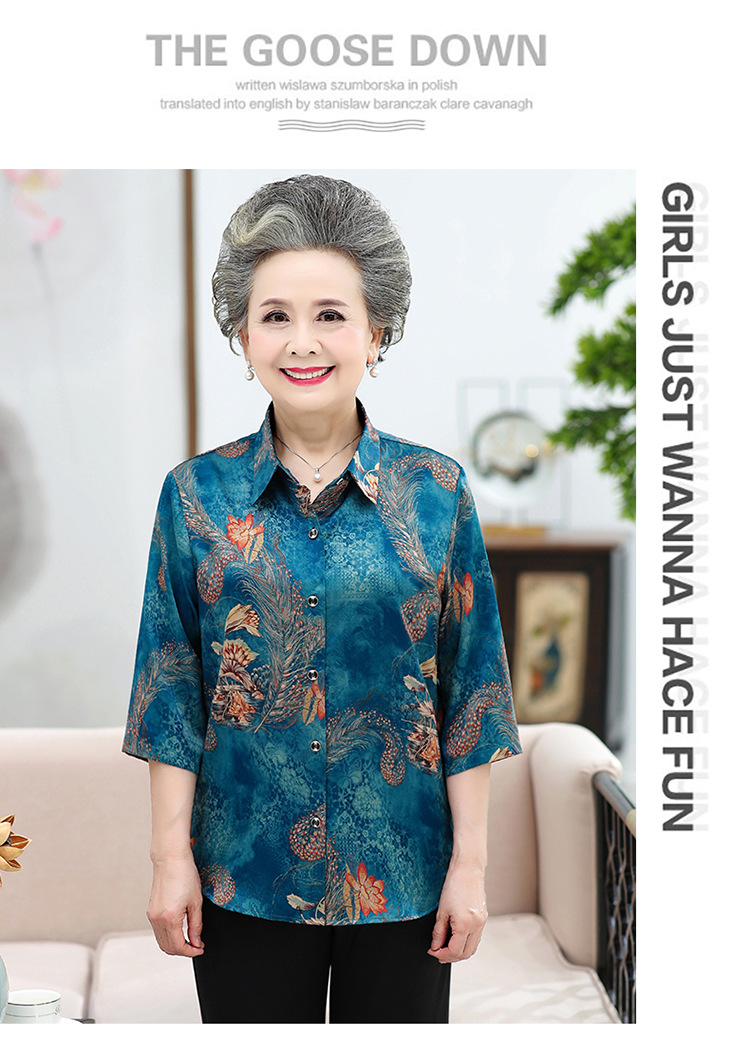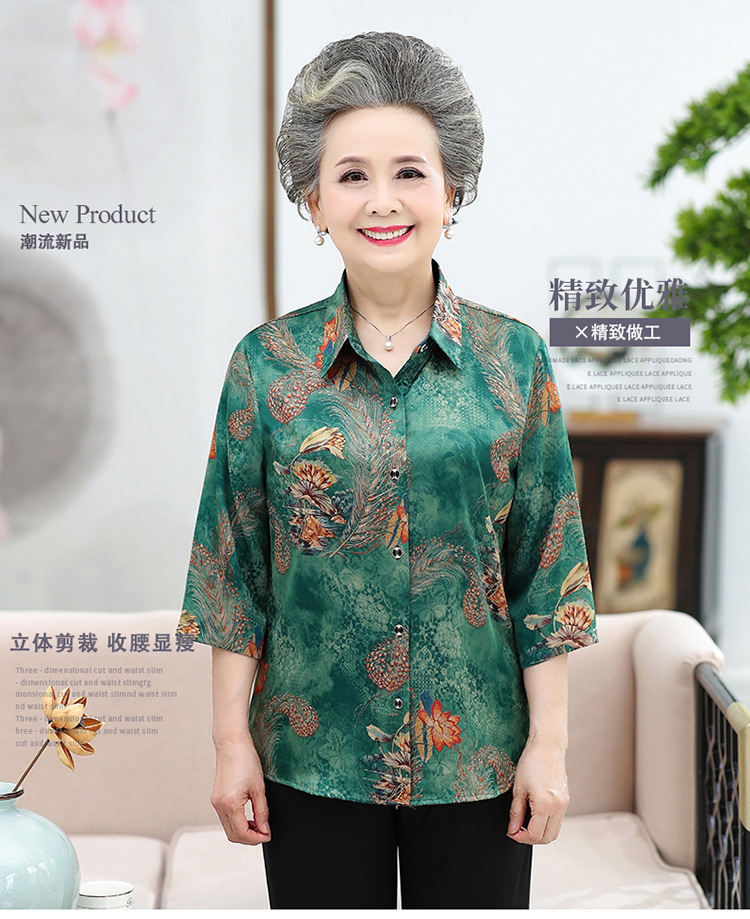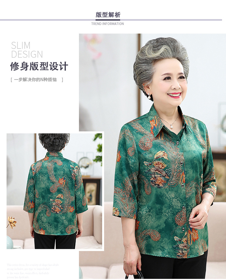 QYY-sp9905新款大码七分袖舒适翻领开衫奶奶装
