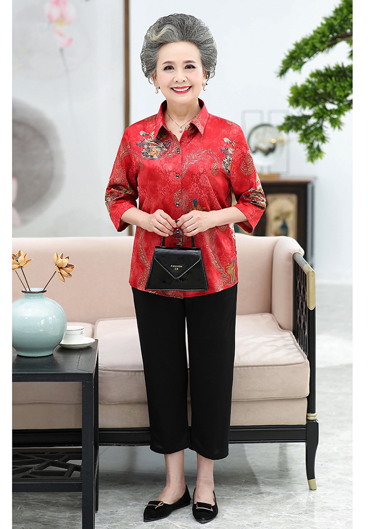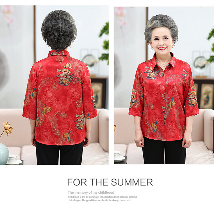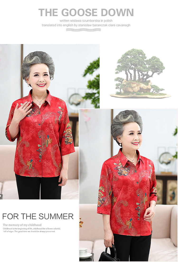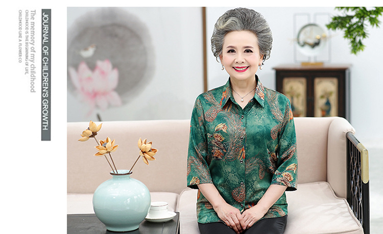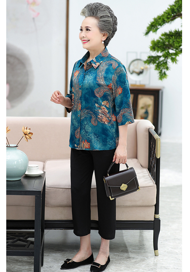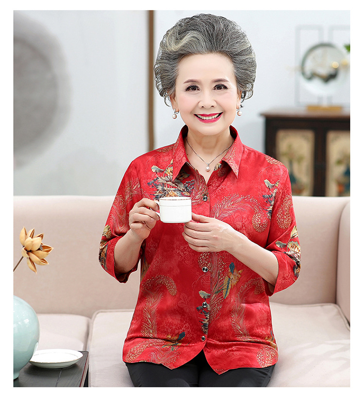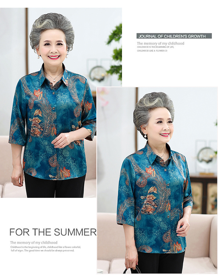 QYY-sp9905新款大码七分袖舒适翻领开衫奶奶装