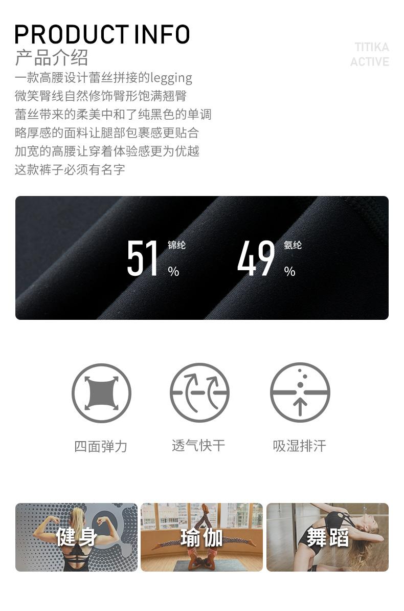 TITIKA ACTIVE瑜伽健身系列 时尚修身运动裤休闲弹力透气紧身裤22P21003