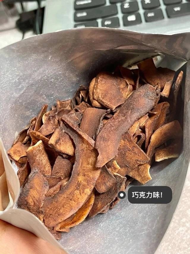 每一片都裹上了可可 开袋是扑鼻而来的天然椰香混杂巧克力的醇香 吃起来带着可可的醇厚微苦 椰肉清甜还带有牛奶香气,简直是绝配