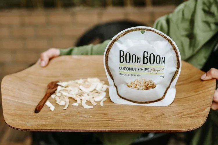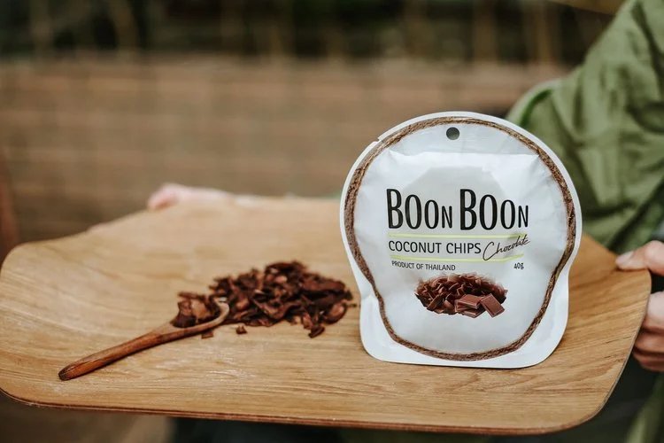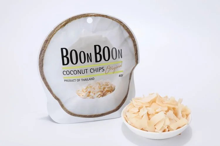 BOONBOON是一家以椰子为主题元素的食品品牌 这款新上市的椰子片是Godiva歌帝梵、沪上阿姨的原材料 冰激凌上的椰子片用的就是BoonBoon的哦🍦 椰子片在线下话梅连锁店也火热在售🔥