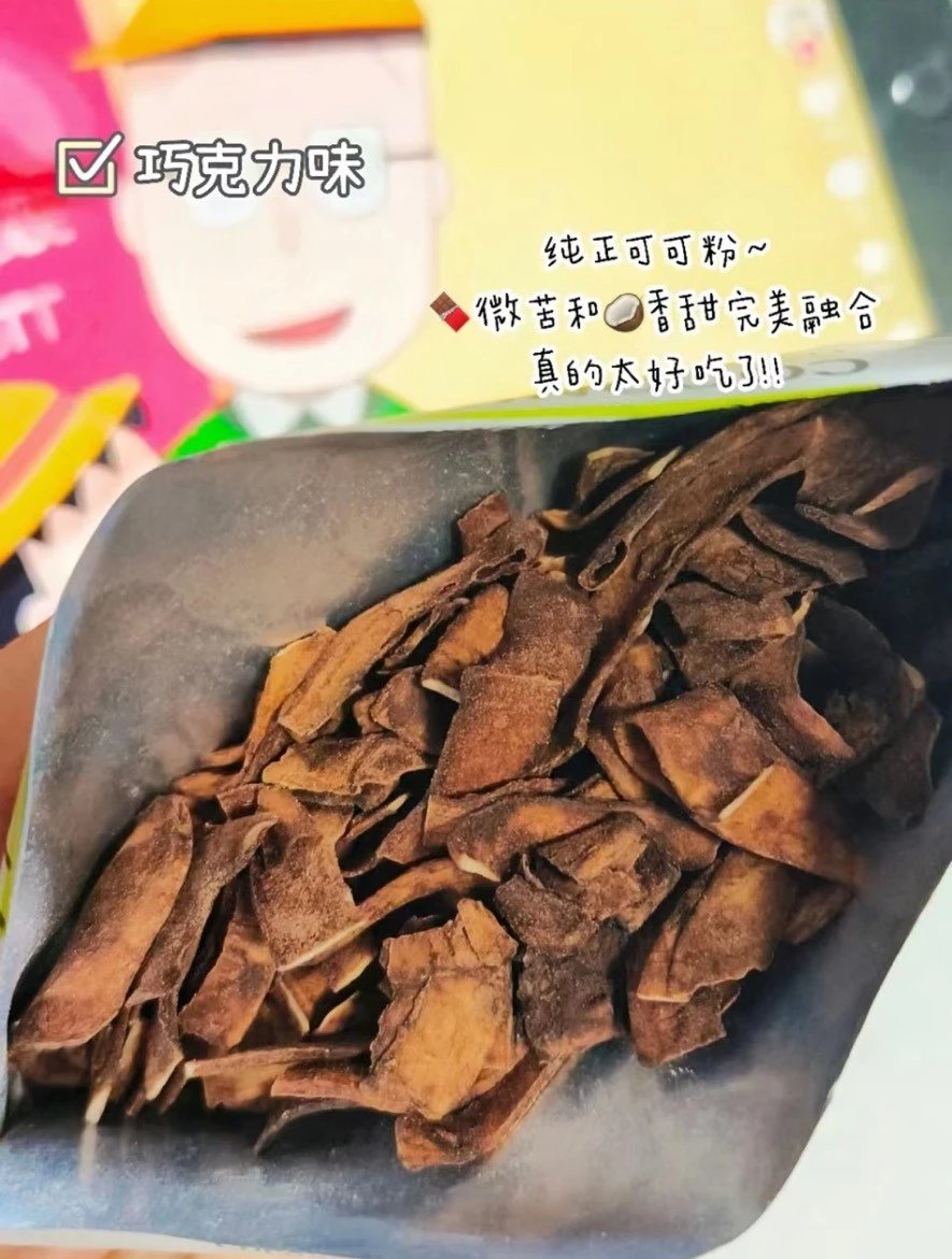 🍫巧克力味香脆椰子片 黑与白的矛盾,苦与甜的交织,造就了巧克力椰子片 当巧克力的丝滑触碰到舌尖时,你将对它再难忘记