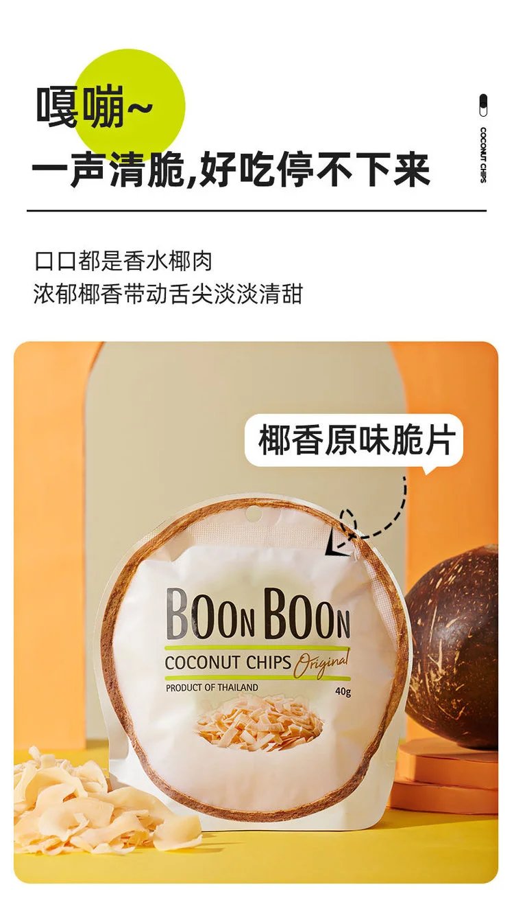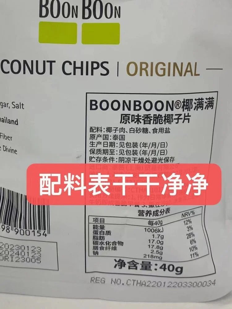 这个零食真的太好吃了吧 BOONBOON椰满满椰子片 原产地是泰国 🇹🇭重点是di卡di卡di卡,配料表干净