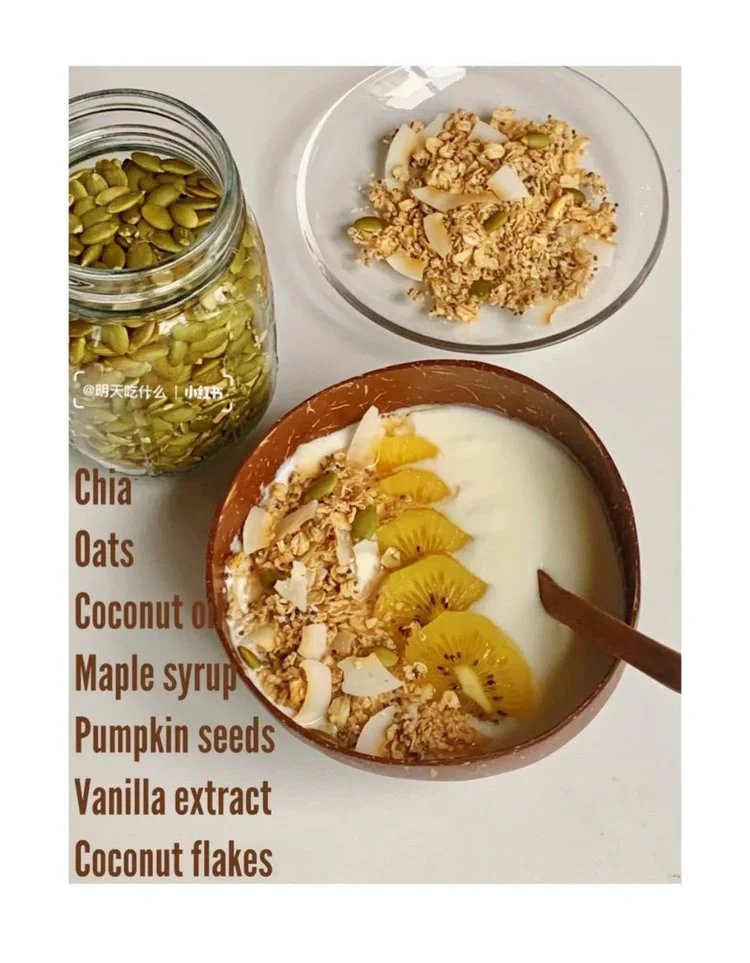 椰子片 + 水果沙拉 沙拉可是优秀的健身一族的必备餐点 喜欢吃水果沙拉的小伙伴可以尝试在制作的时候加上一些椰子片,zui好要捏碎一些哦,这样在吃水果的同时又能感受椰香和脆爽的口感