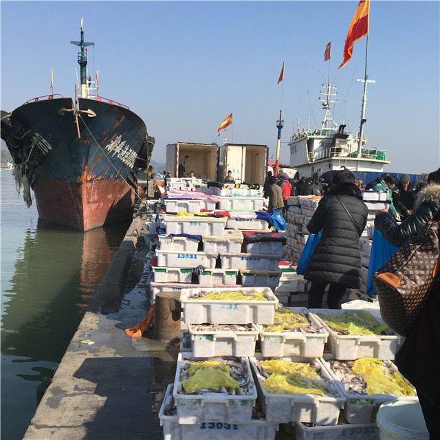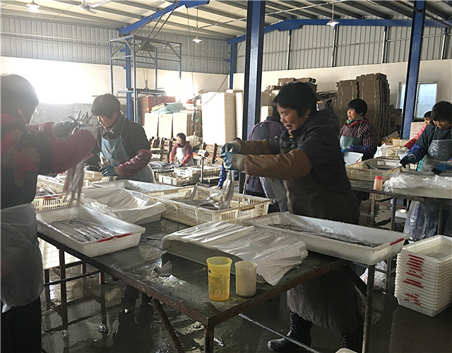 (上图)都市购实惠栏目订制的舟山带鱼就在这个车间完成,从卸船到车间路程不超过10分钟,站在车间的二层窗口就可以看到抵达到岸的渔船。