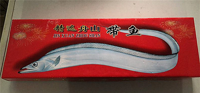 (上图)冷冻好的带鱼,装上包装盒,冷链运输到济南,一箱毛重10斤。