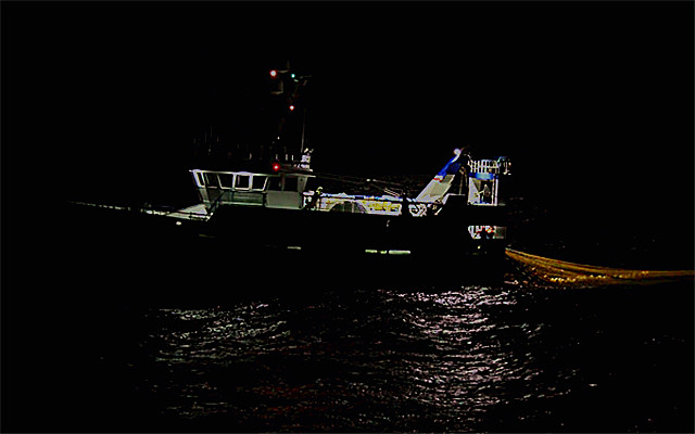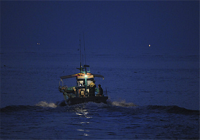 (上图)直到深夜,海平面基本稳定时,捕捞船开始收网,在我们的镜头下,穿了渔船偶尔剧烈的摆动和冰凉的海水,除了体验到高危险系数的工作外,剩下的就是一口舟山带鱼来之不易的艰辛。