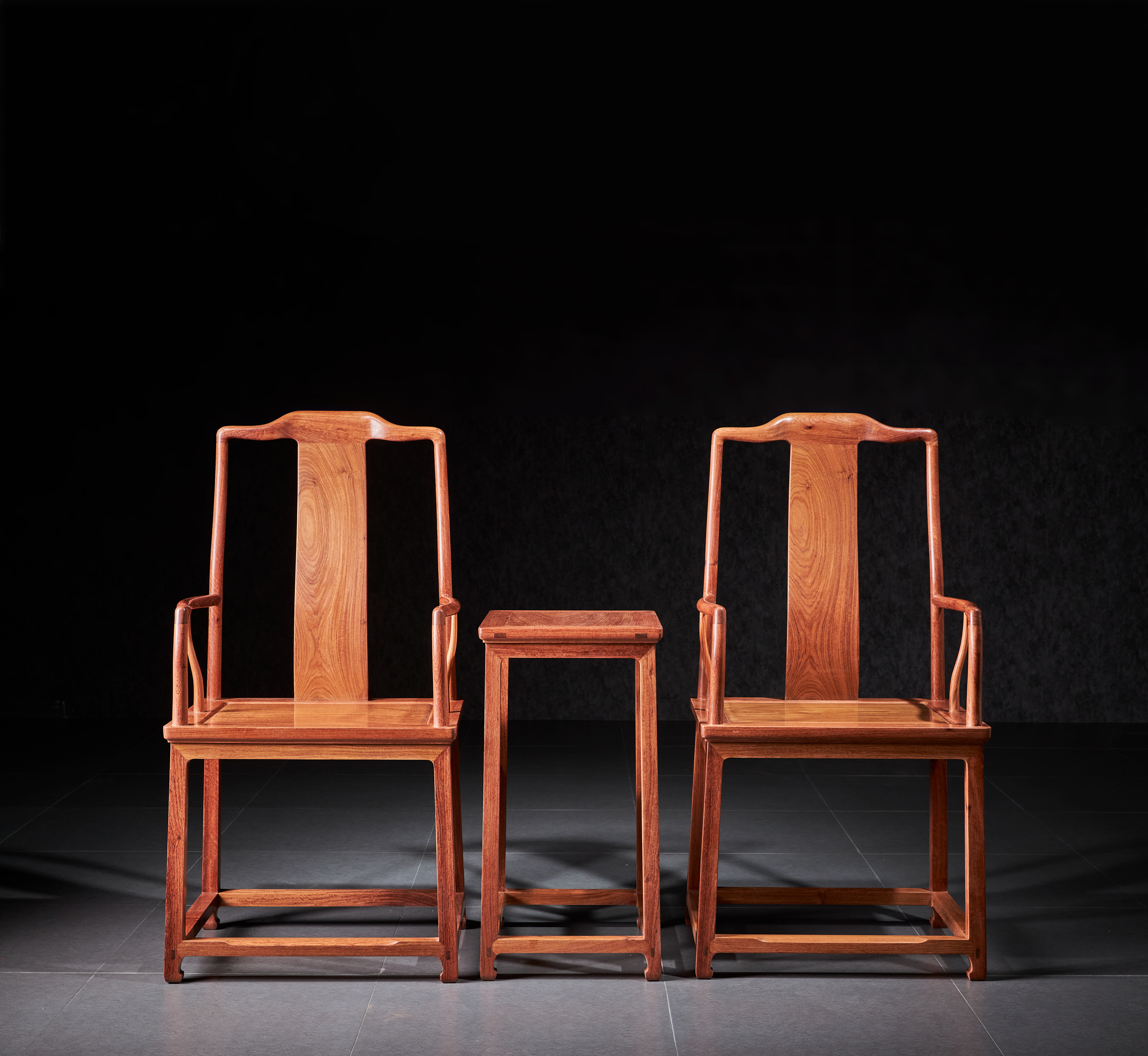 红桥红  家具严选  缅甸花梨(大果紫檀)【洪氏 马蹄腿高靠背南官帽椅 三件套】 商品图0