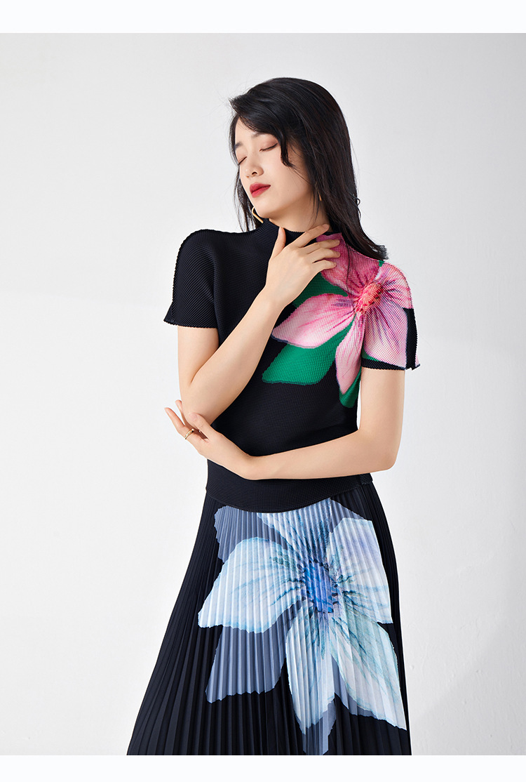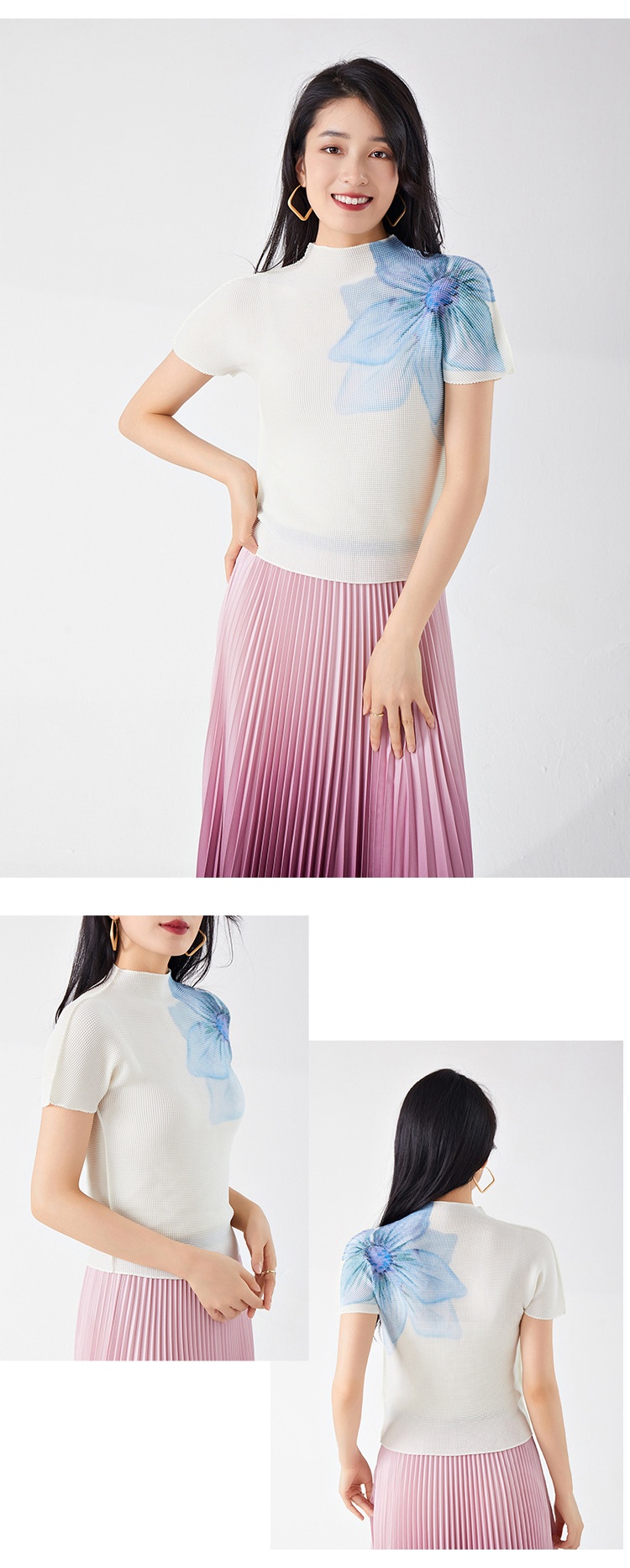 「自」全新升级【铂金会员183/天猫249/差价66】(13840)洛诗琳新款印花T恤2025夏季高级感修身弹力气质百搭上衣