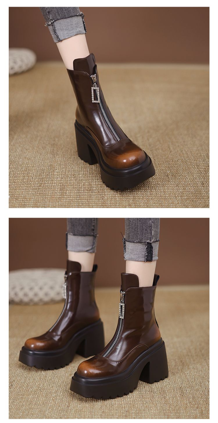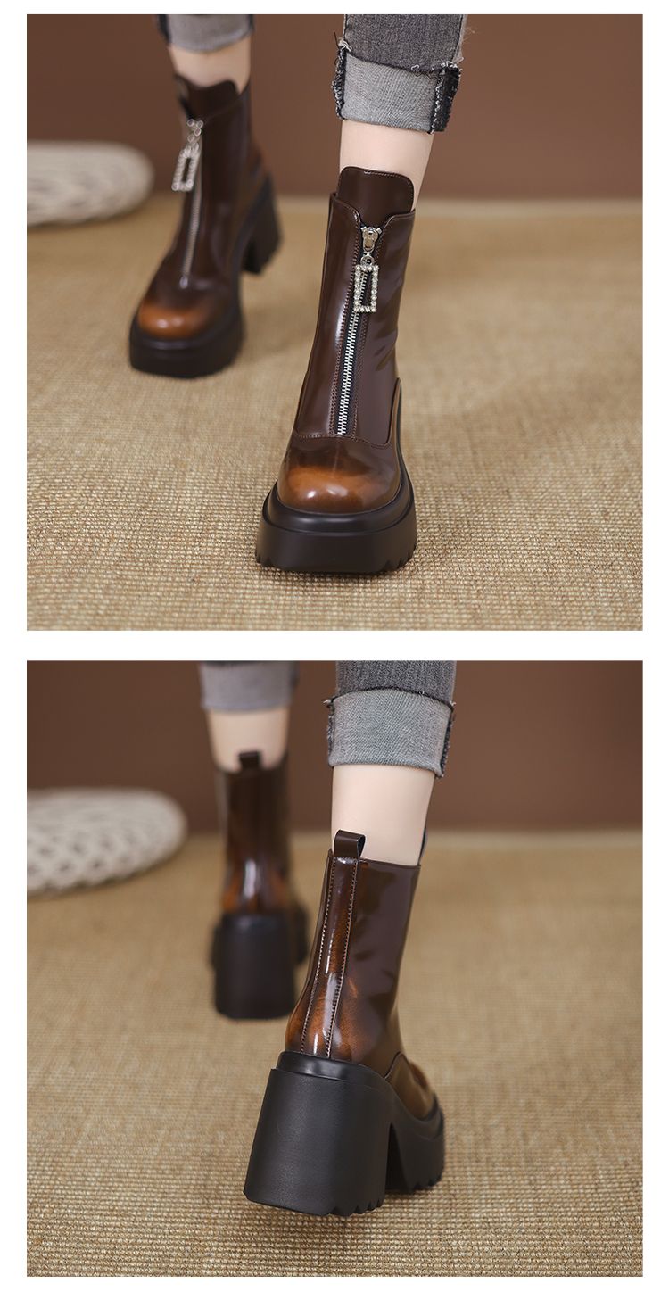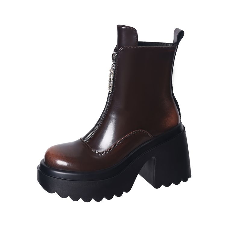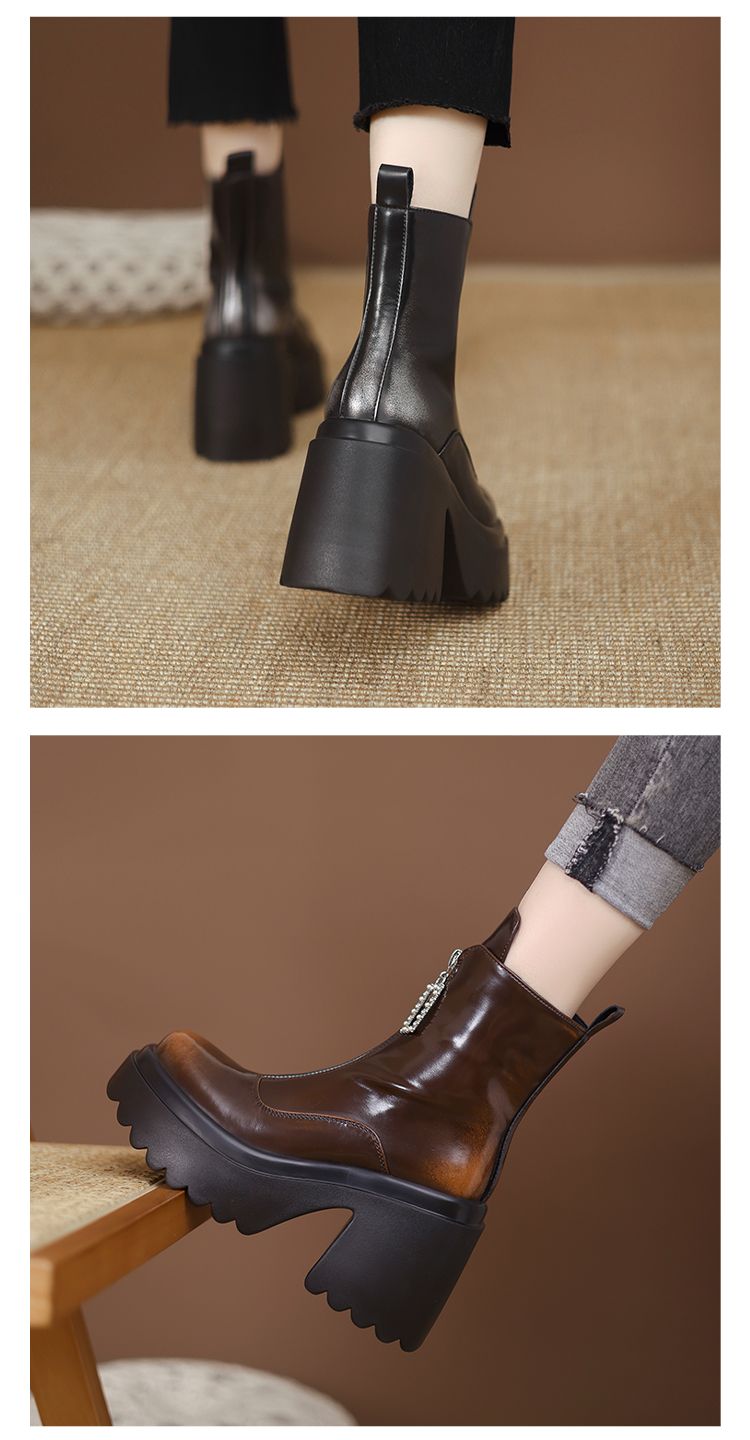货号:ZM2418-A帮面:牛皮跟高:10cm颜色:黑色 棕色尺码:34-39内里:单里 绒里鞋垫:单里 绒里