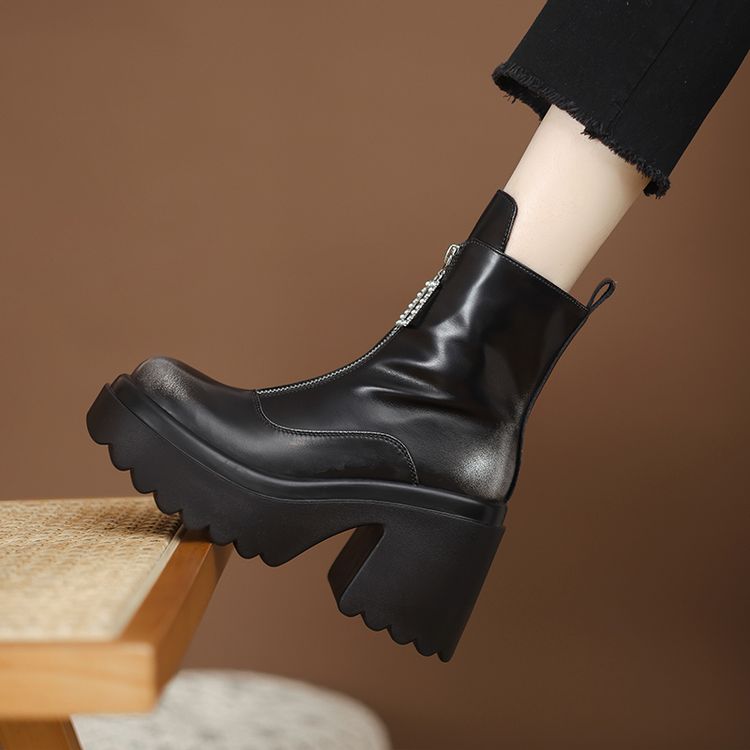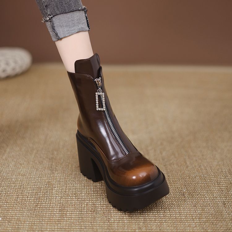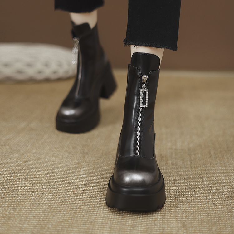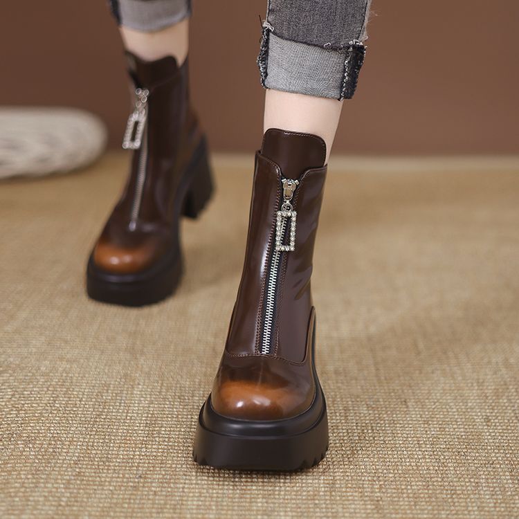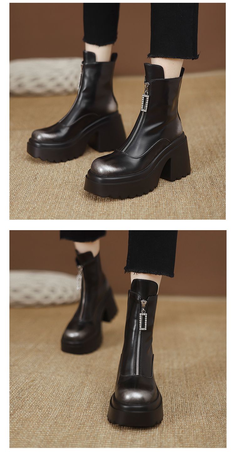 货号:ZM2418-A帮面:牛皮跟高:10cm颜色:黑色 棕色尺码:34-39内里:单里 绒里鞋垫:单里 绒里