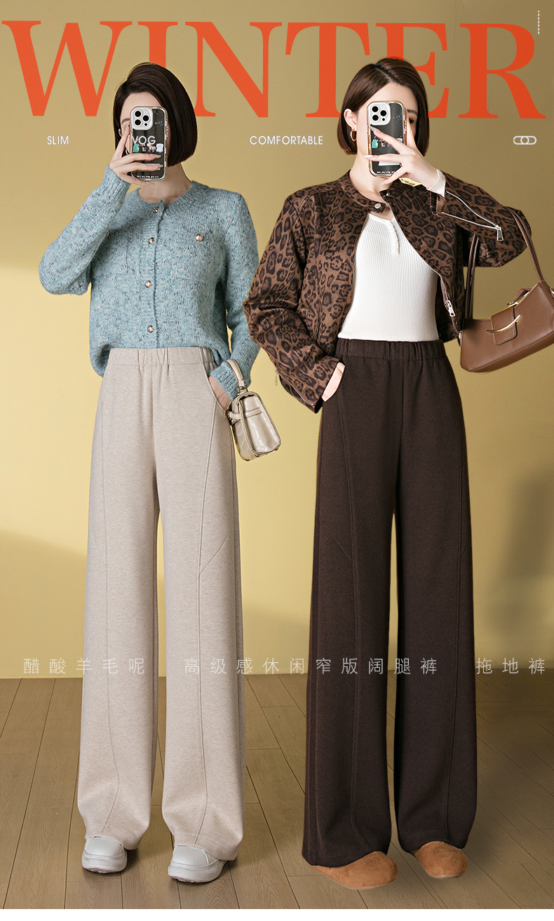 「自」全新升级【铂金会员183/天猫249/差价66】(21408)洛诗琳加绒加厚醋酸羊毛呢直筒裤2025冬季窄版休闲阔腿裤