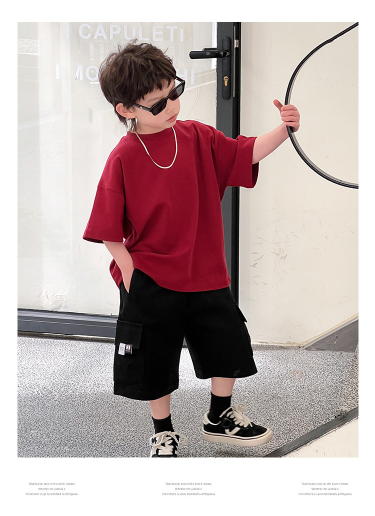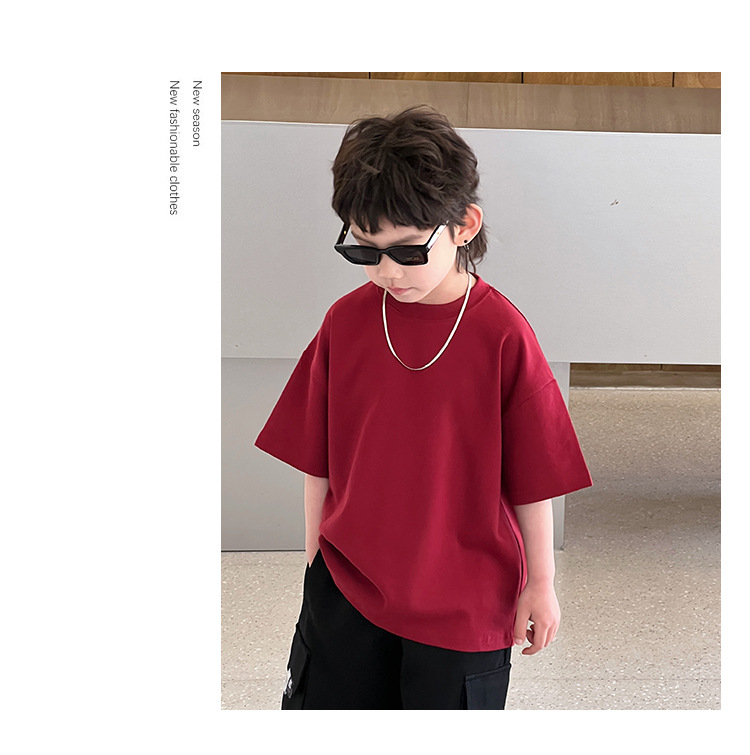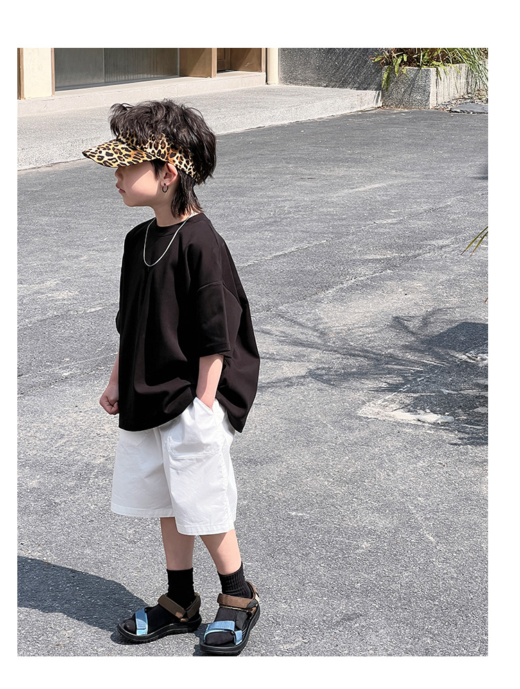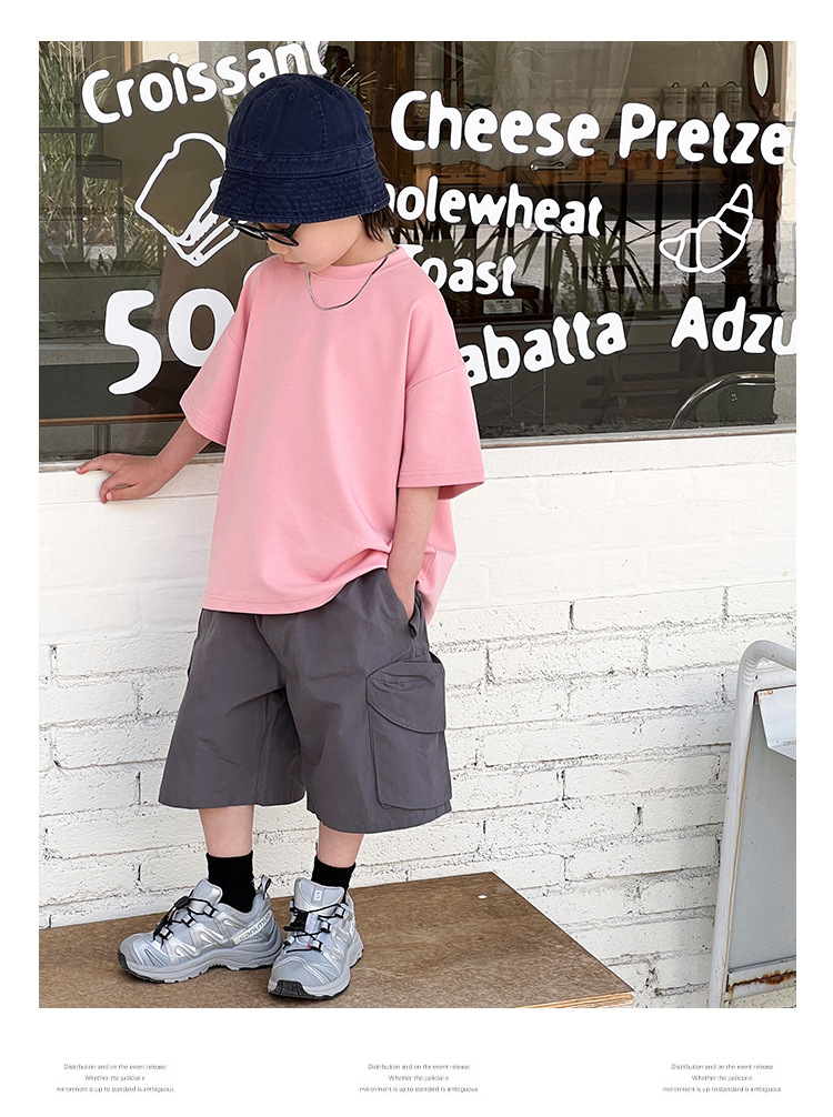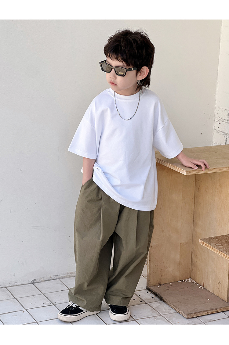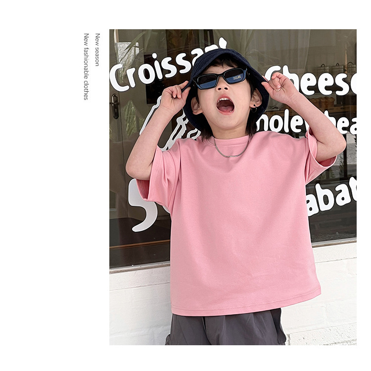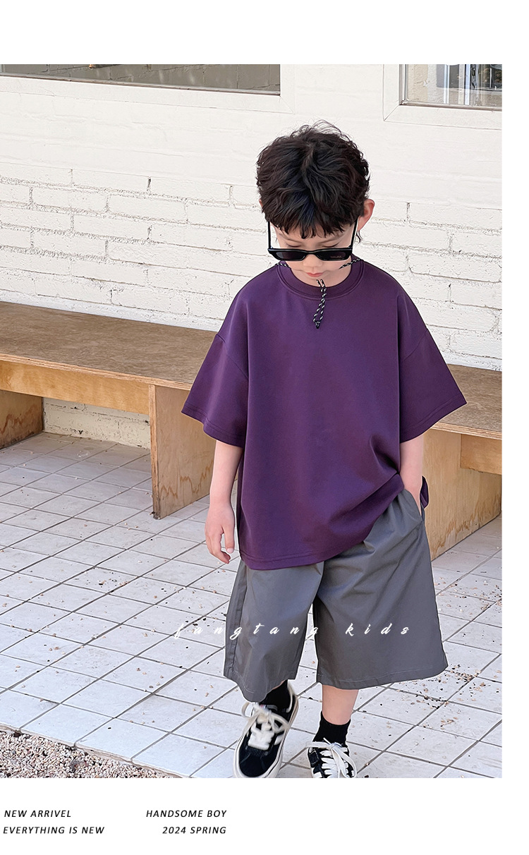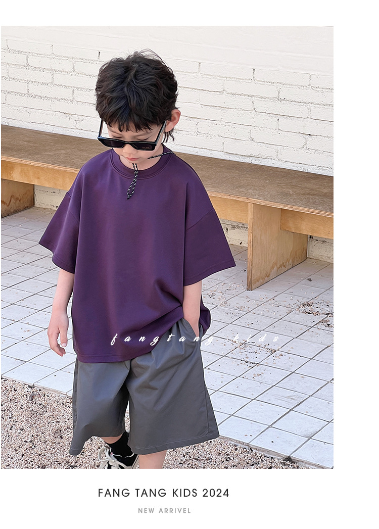 【可爱宽松款式,爆款童装T恤!】童装夏装儿童短袖男童T恤,2024夏季新款中大童小男孩潮流宽松上衣-QQ