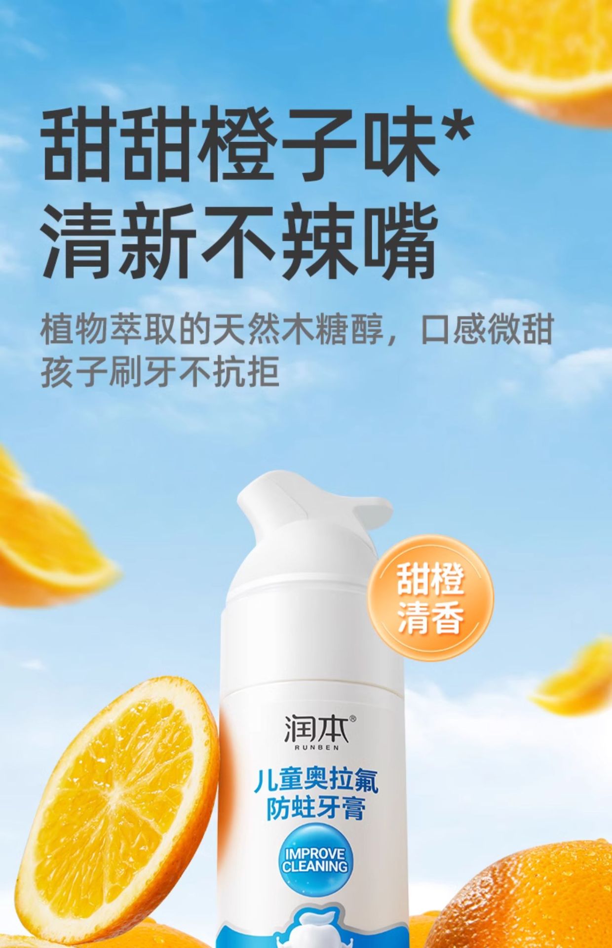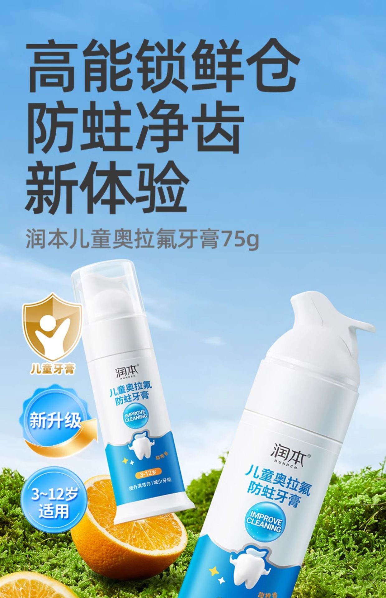 【按压款牙膏!高能锁鲜仓,防蛀净齿新体验!】润本儿童牙膏 3-12岁 含氟可防蛀牙龋齿 宝宝换牙期不吞咽 按压牙膏-QQ