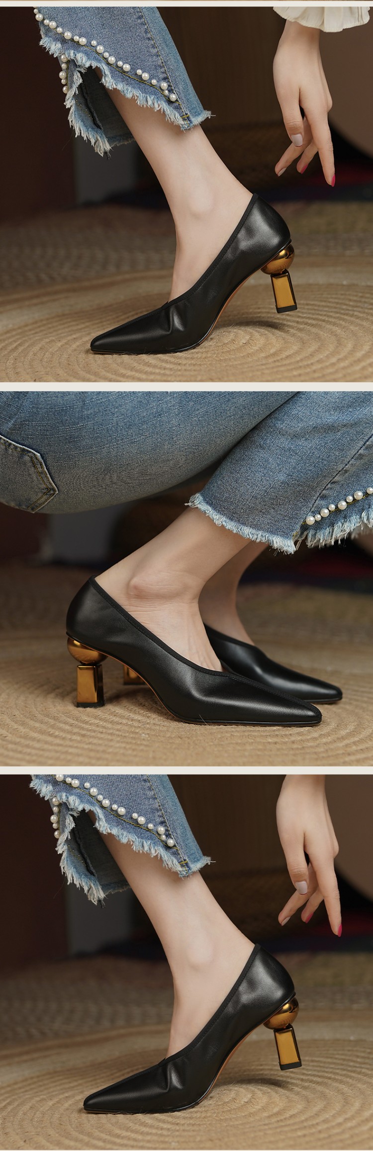 【预售5天】法式高跟鞋女新款细跟百搭真皮设计感小众职业工作尖头单鞋 BXJ-B462