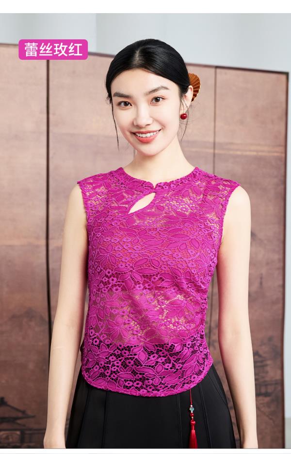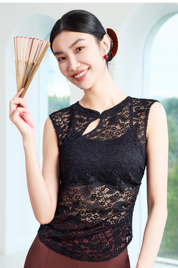 凡圣瑜伽新中式蕾丝背心 F15217