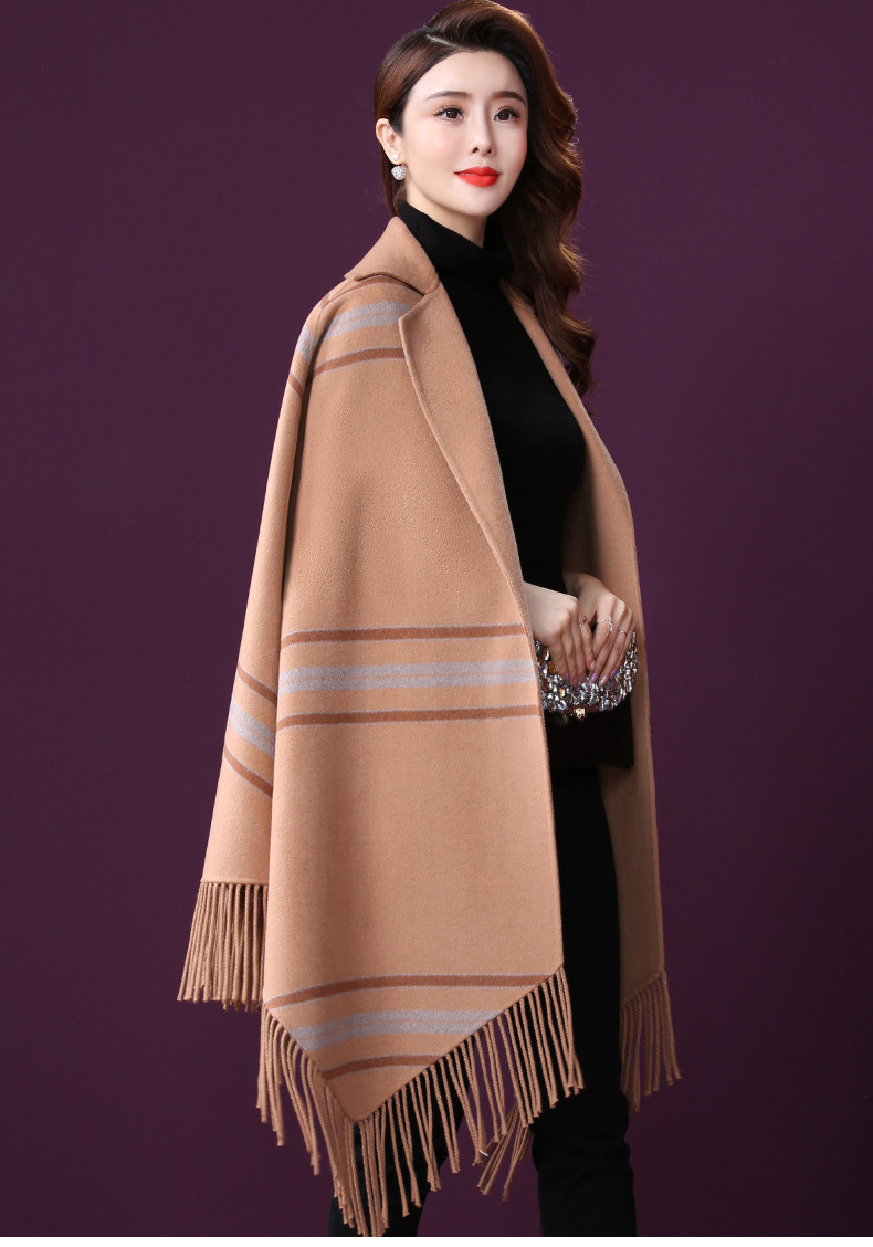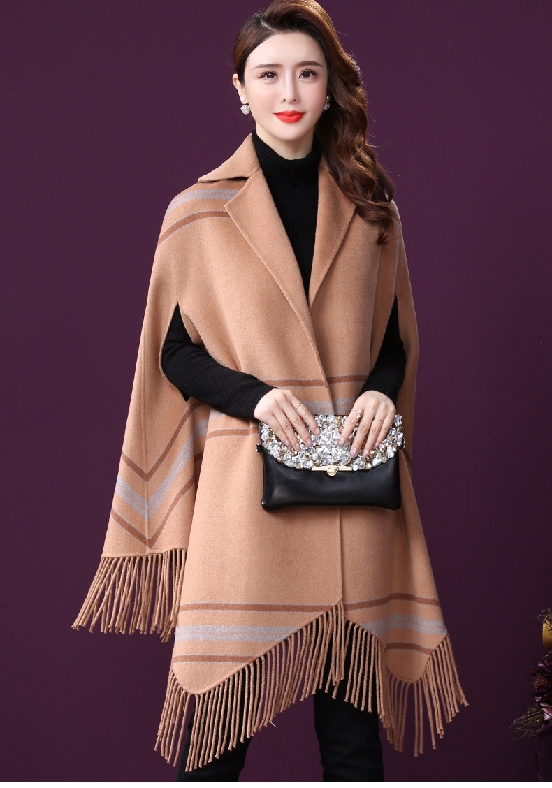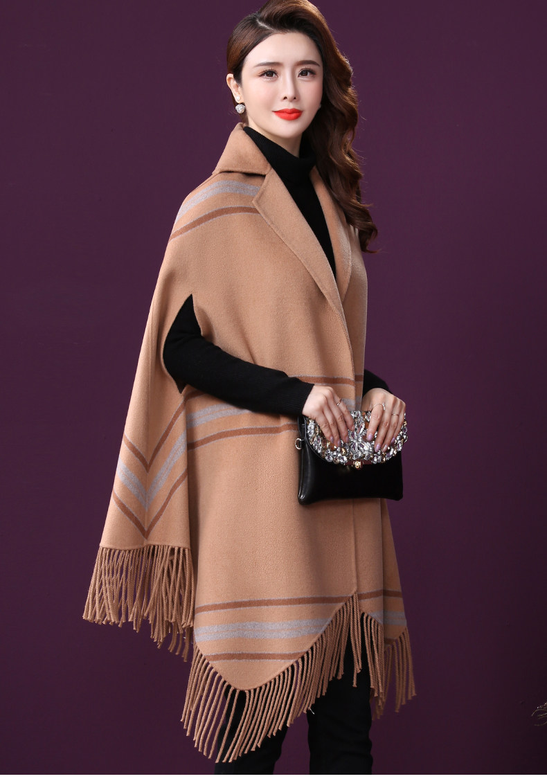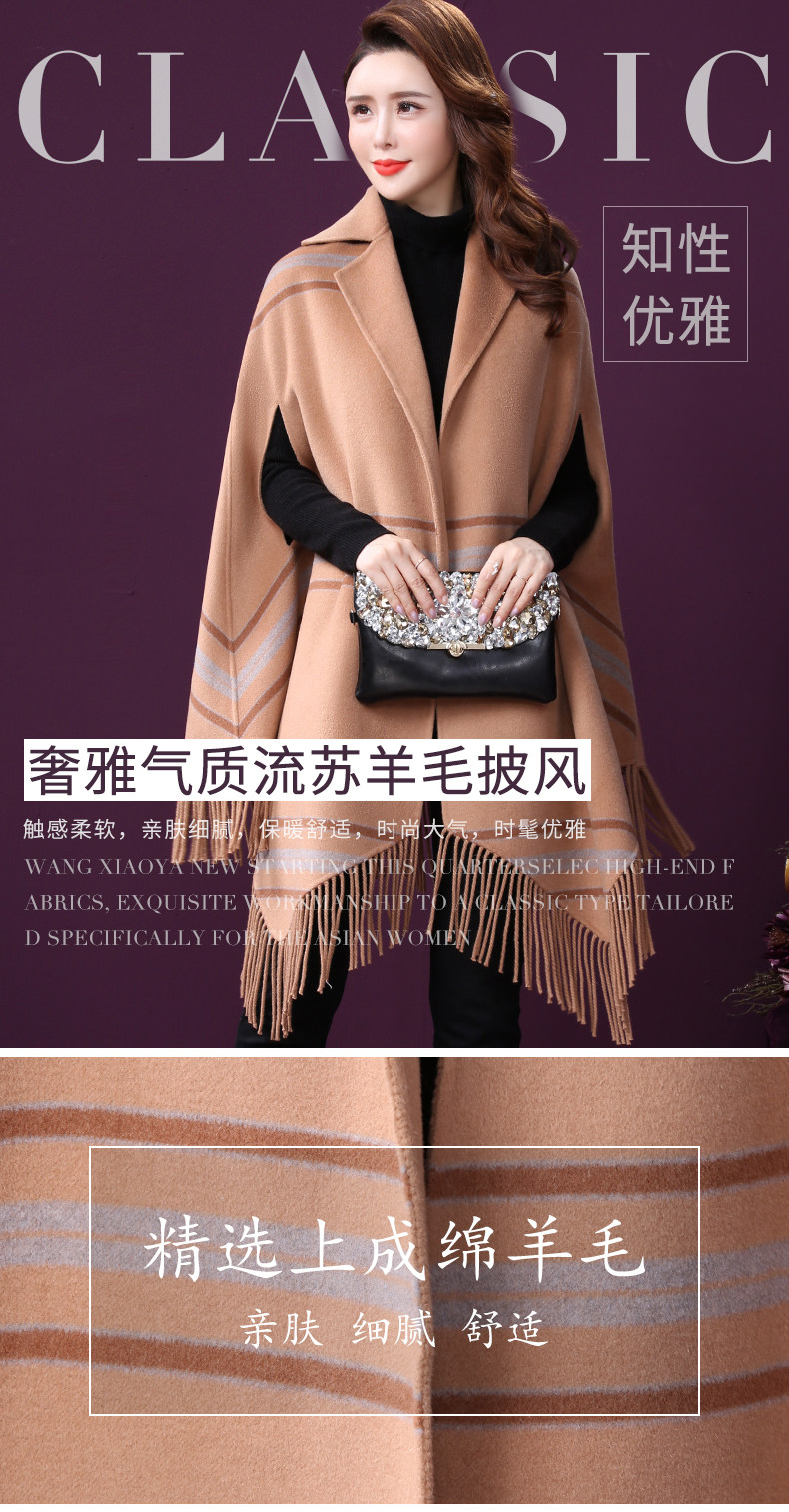 WXY-W-QX-20863秋冬中长款新款复古气质名媛绵羊毛翻领时尚披肩