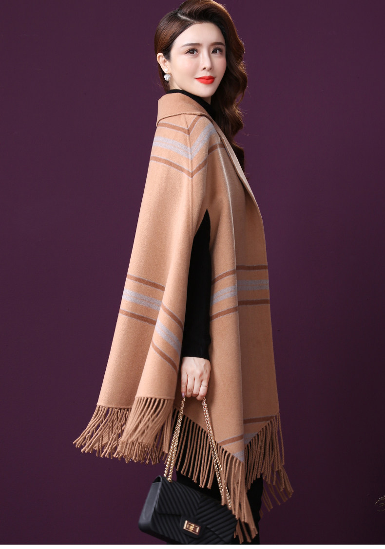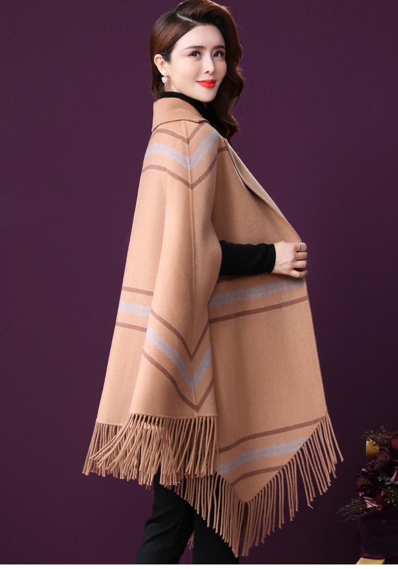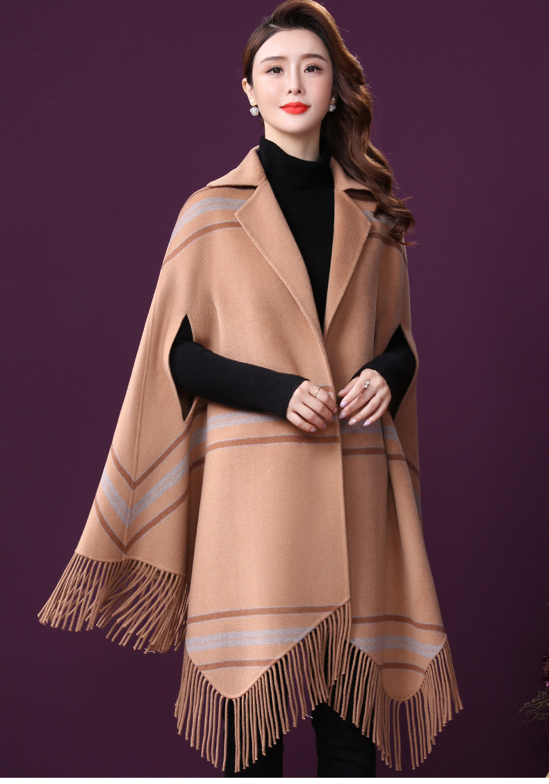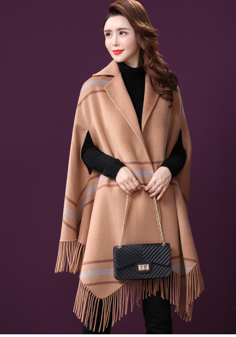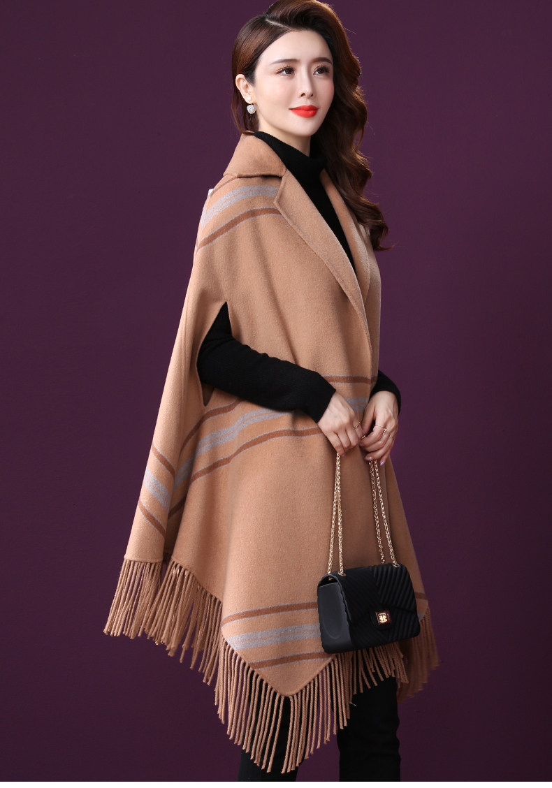 WXY-W-QX-20863秋冬中长款新款复古气质名媛绵羊毛翻领时尚披肩