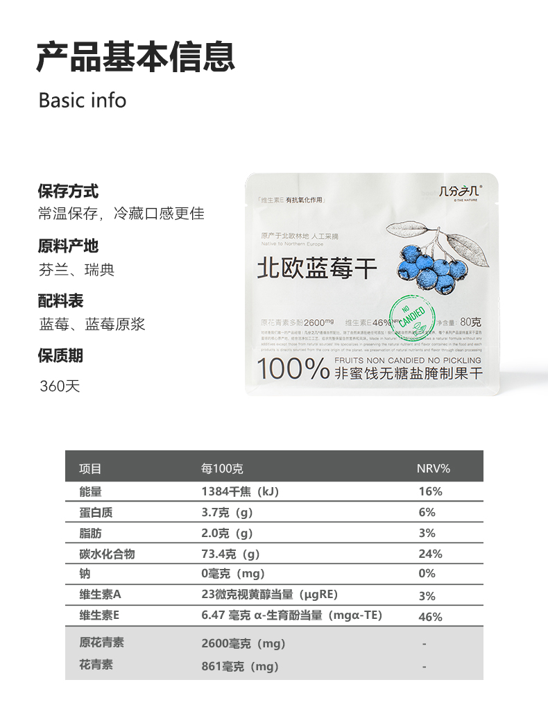 几分之几北欧越橘野生蓝莓干80g
