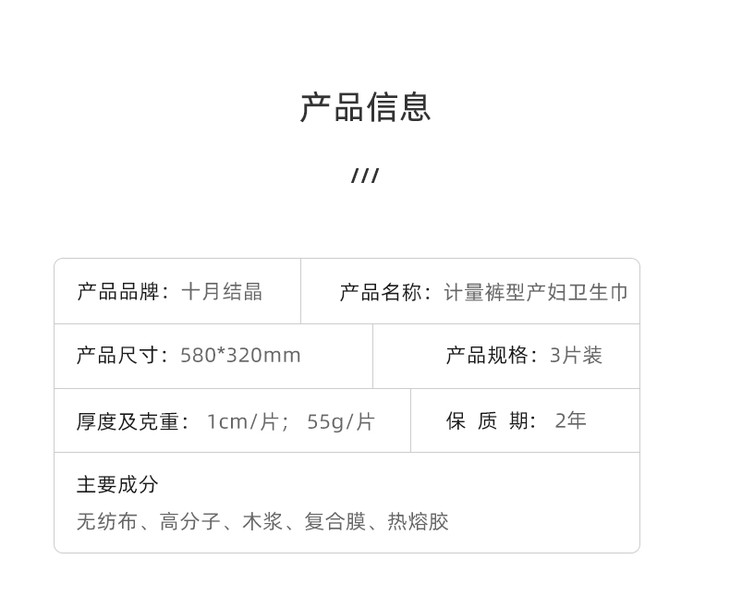 十月结晶计量裤型产妇卫生巾 3片
