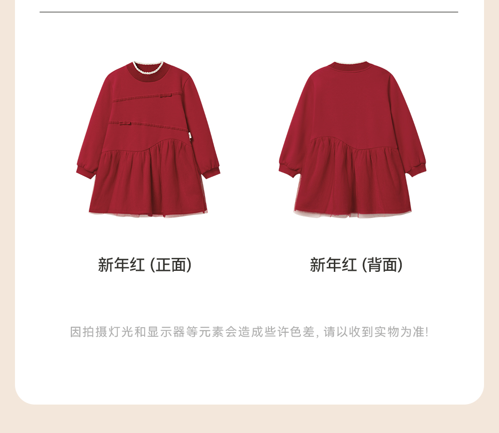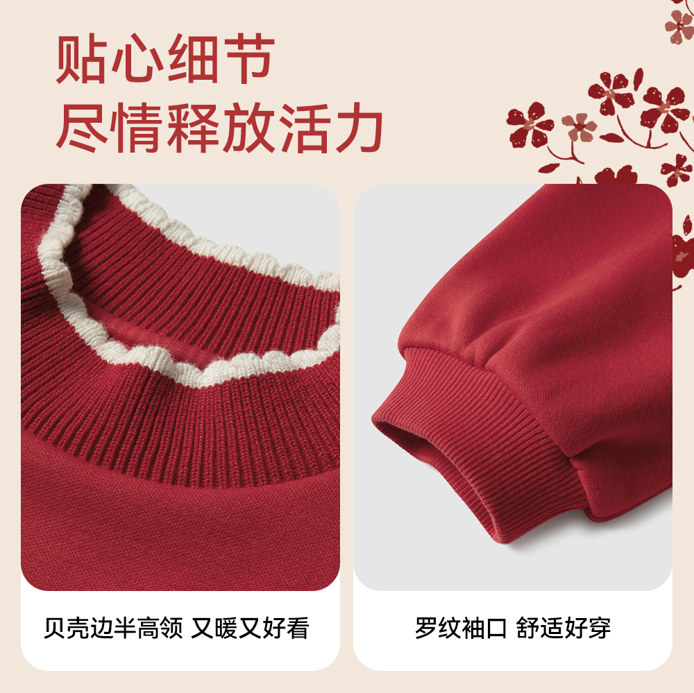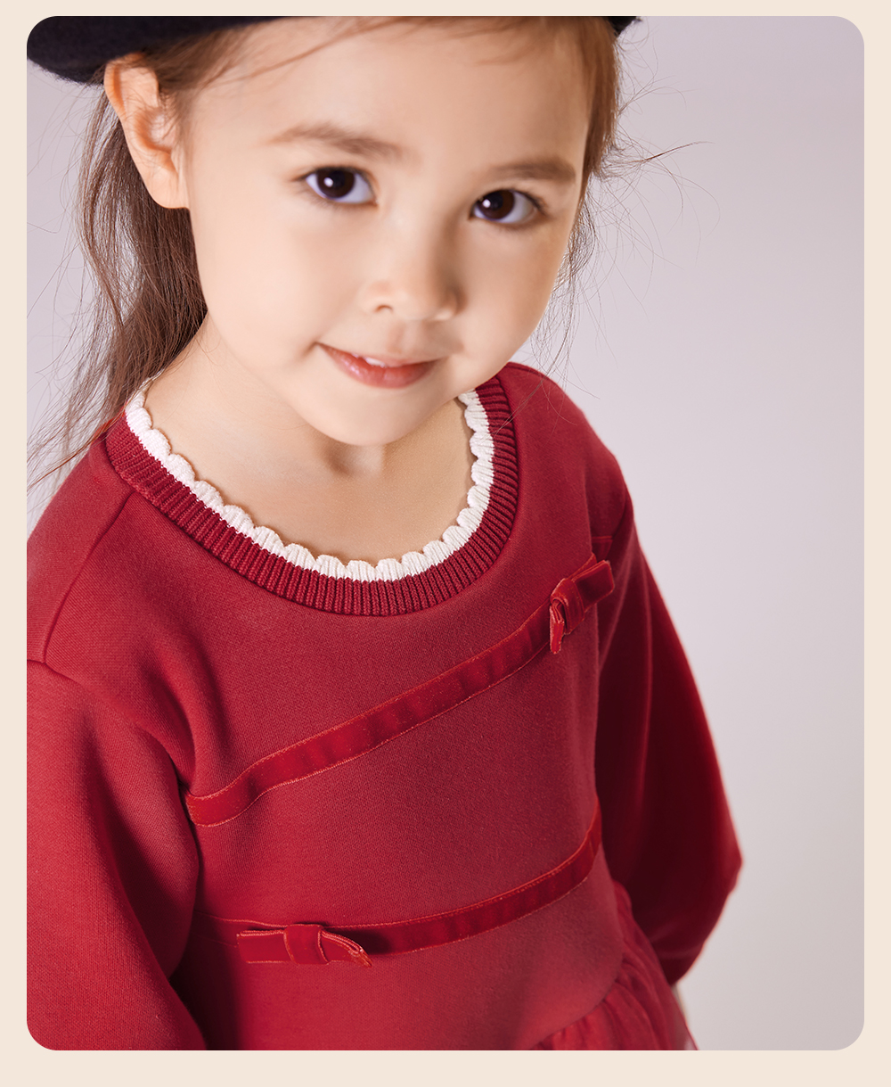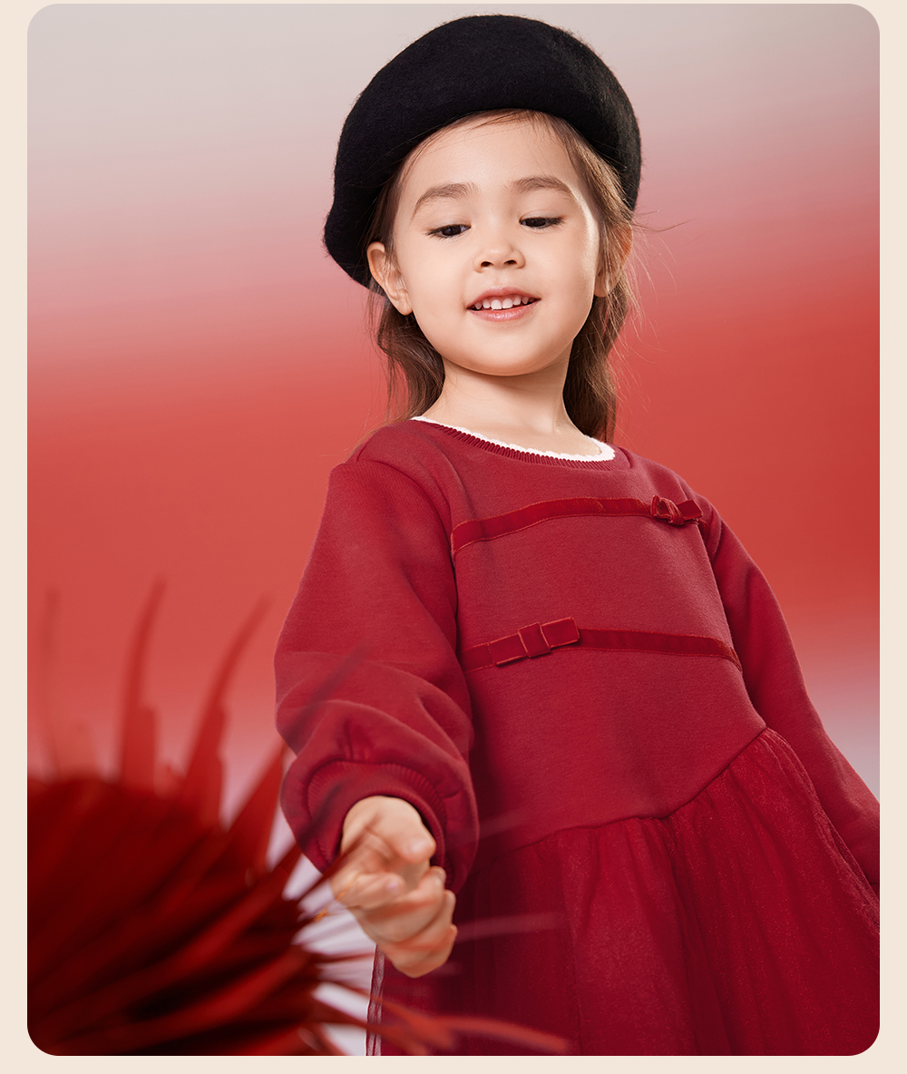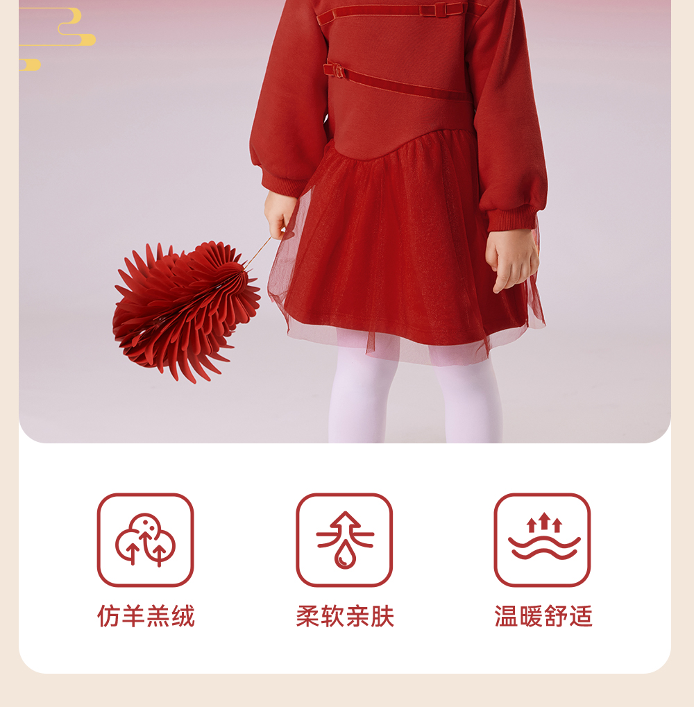英氏女童裙子加绒秋冬保暖女童连衣裙长袖裙子新款喜庆拜年服