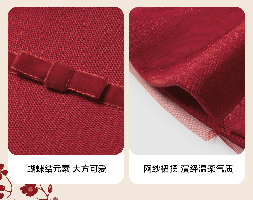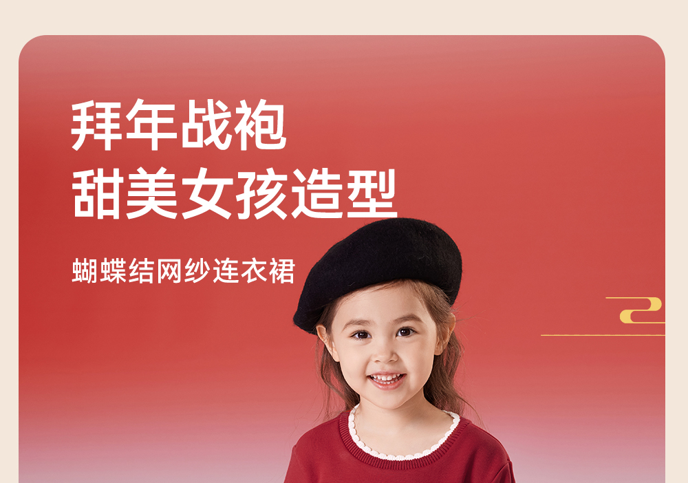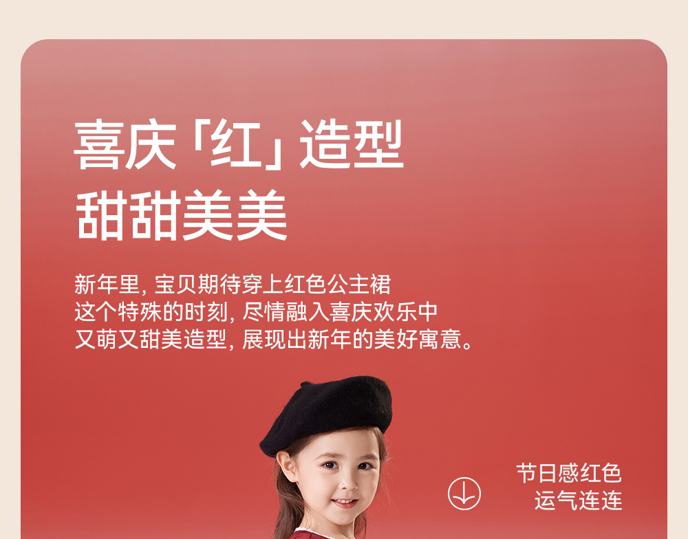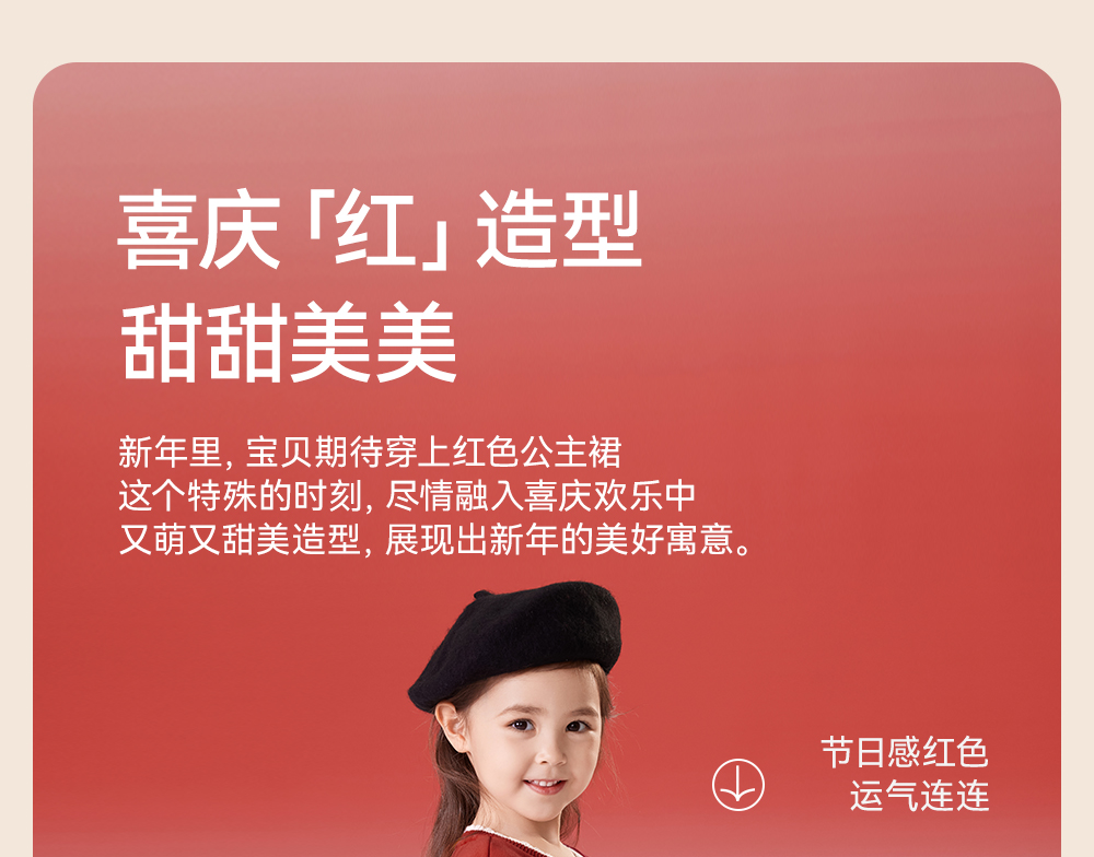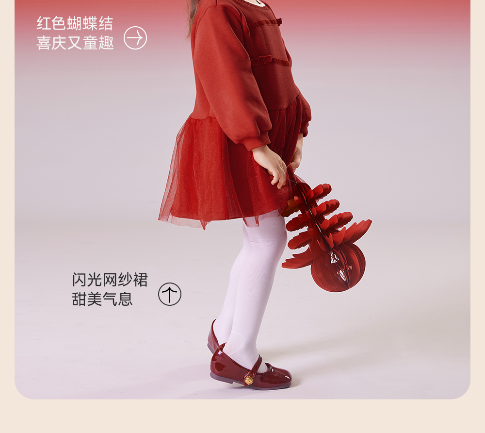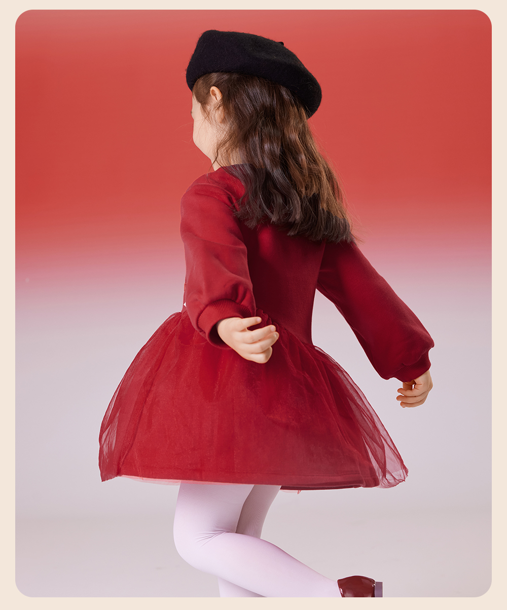 英氏女童裙子加绒秋冬保暖女童连衣裙长袖裙子新款喜庆拜年服