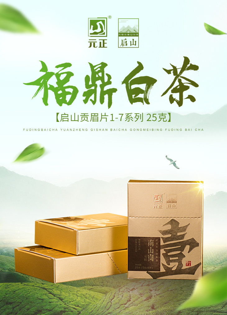 【金奖白茶试饮】元正好茶启山福鼎白茶茶叶南山岗贡眉片5片25克