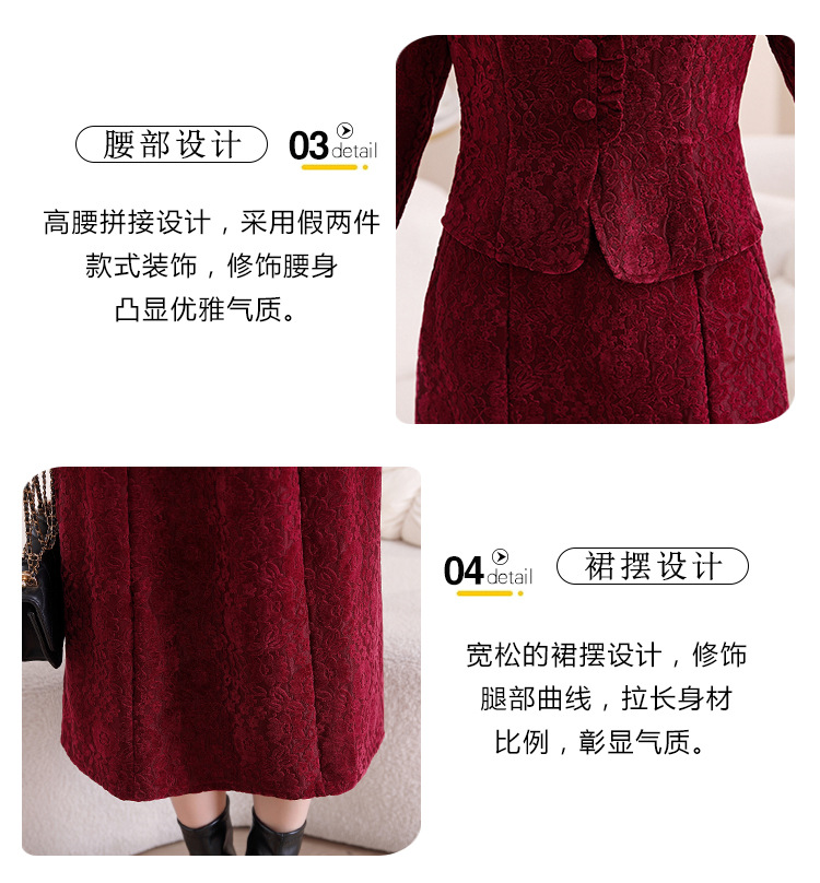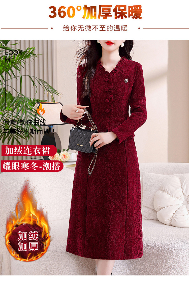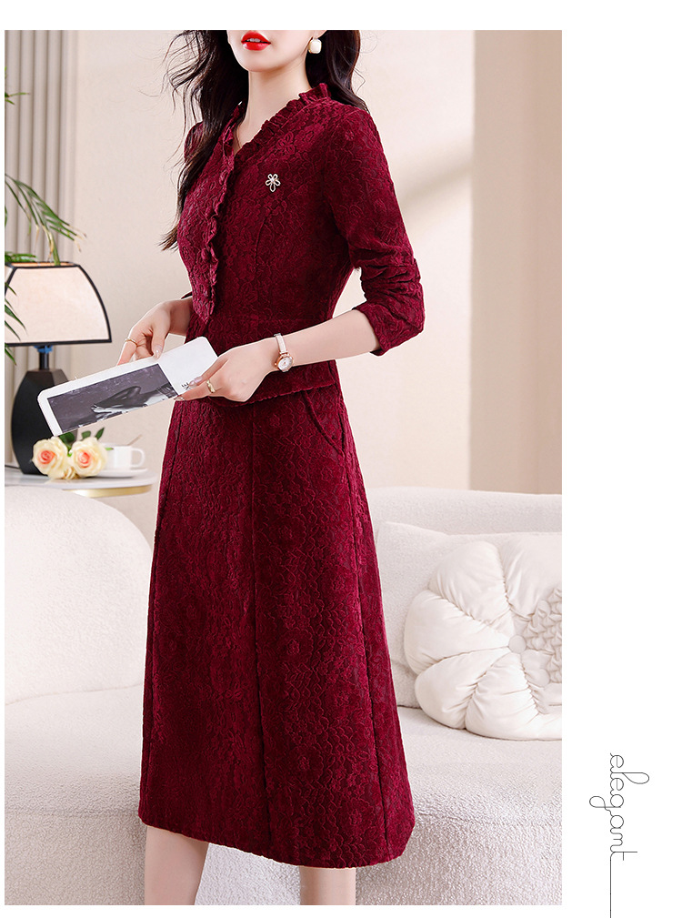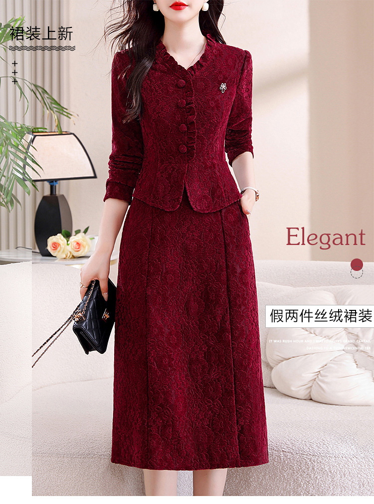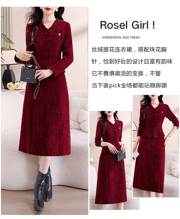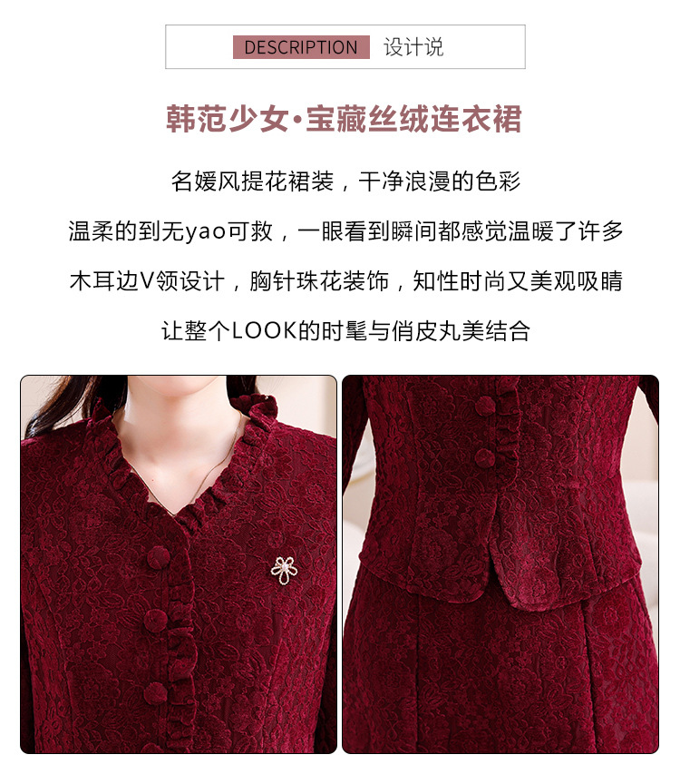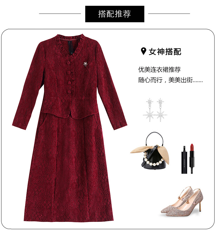 雀说安哥拉红碎花连衣裙新款时尚洋气V领拼接假两件中长裙AL9797