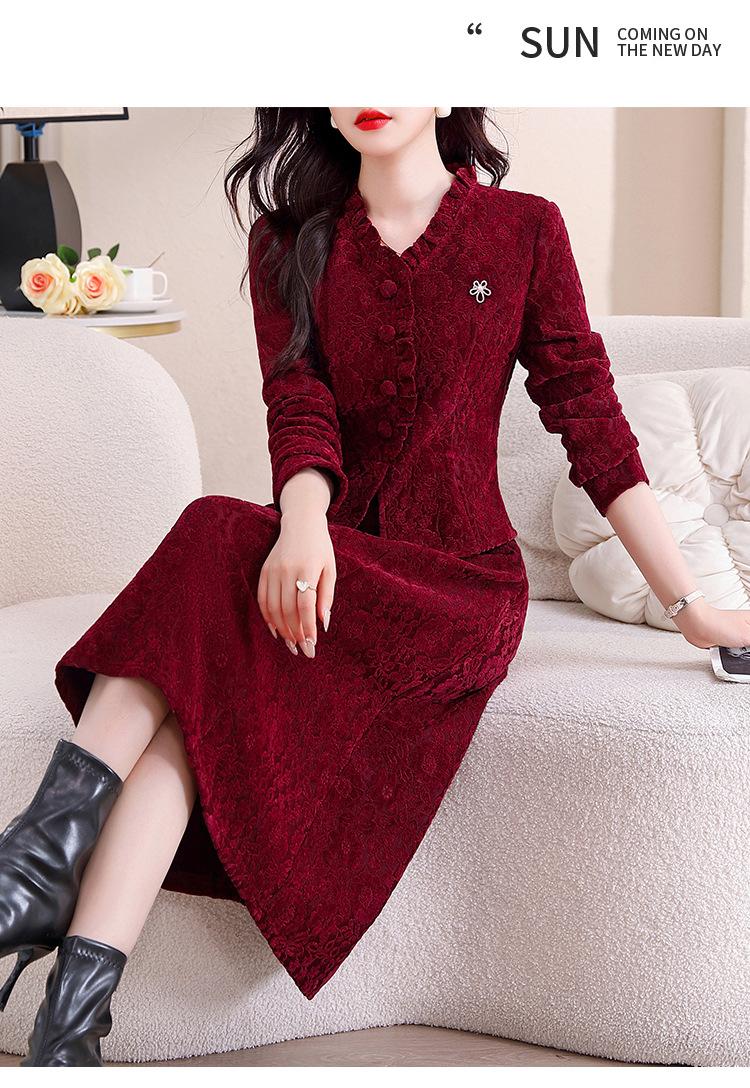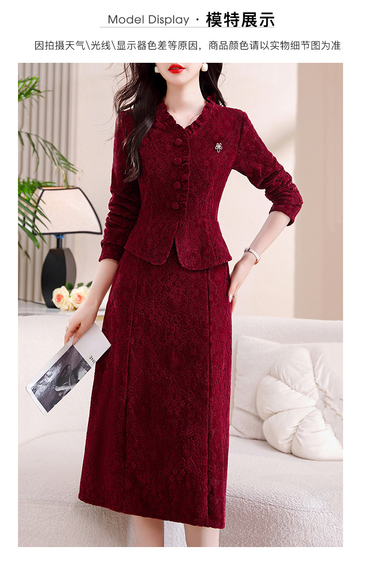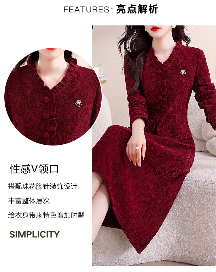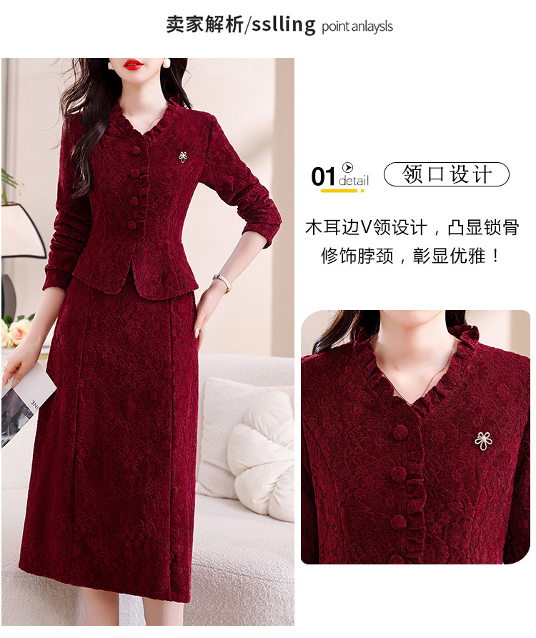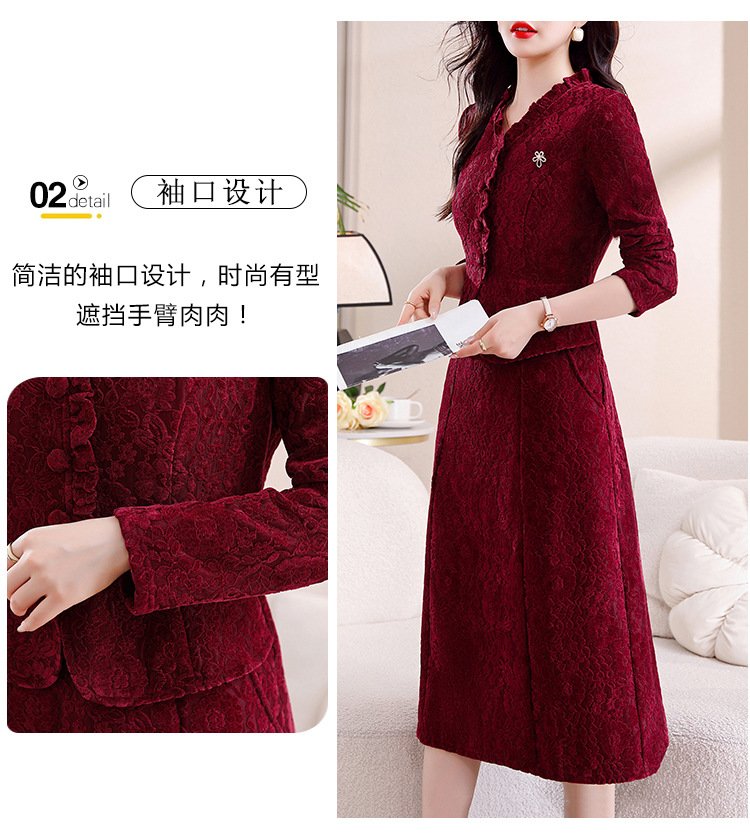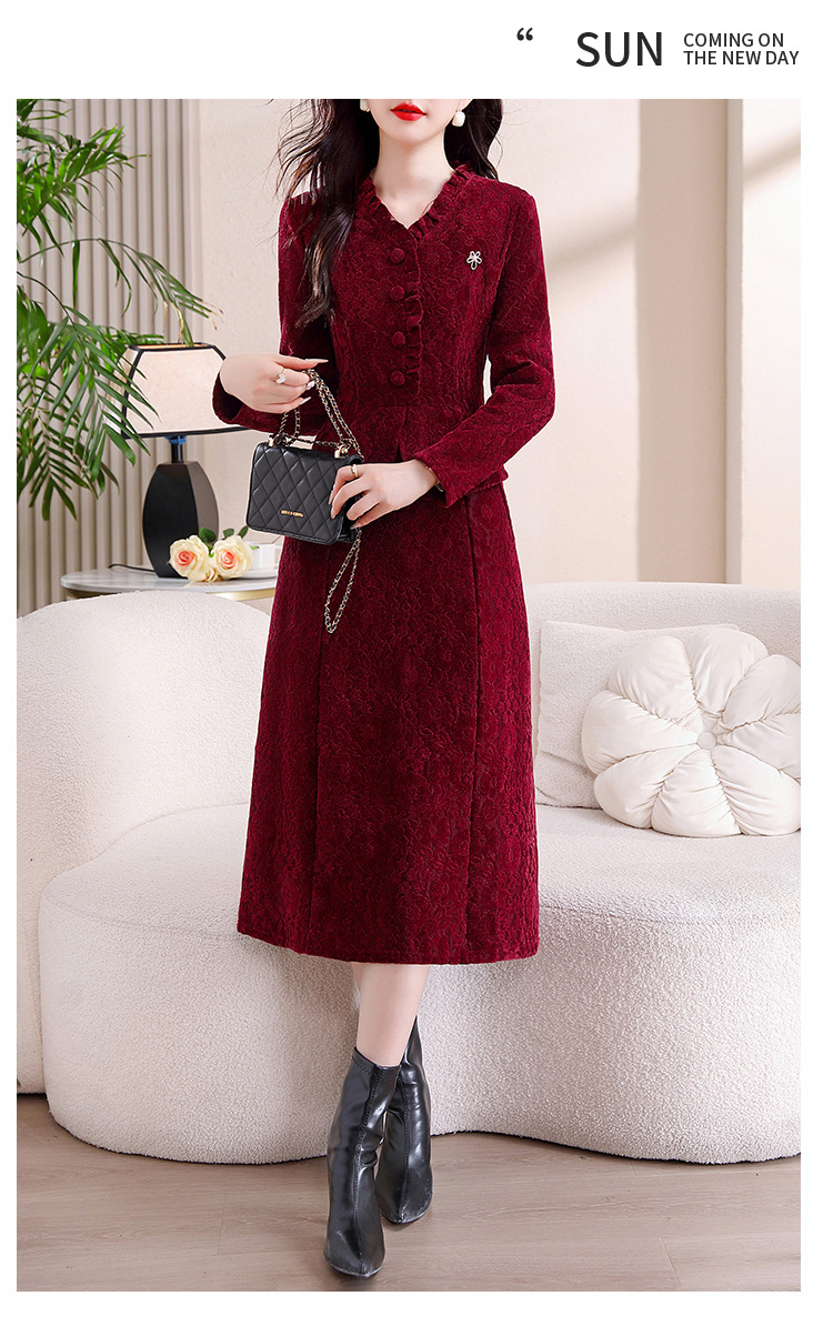雀说安哥拉红碎花连衣裙新款时尚洋气V领拼接假两件中长裙AL9797