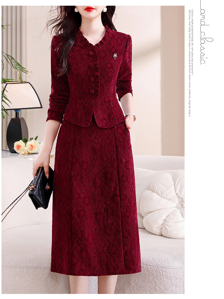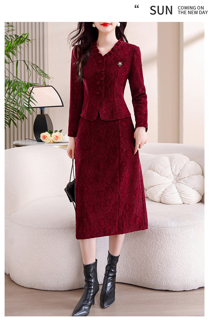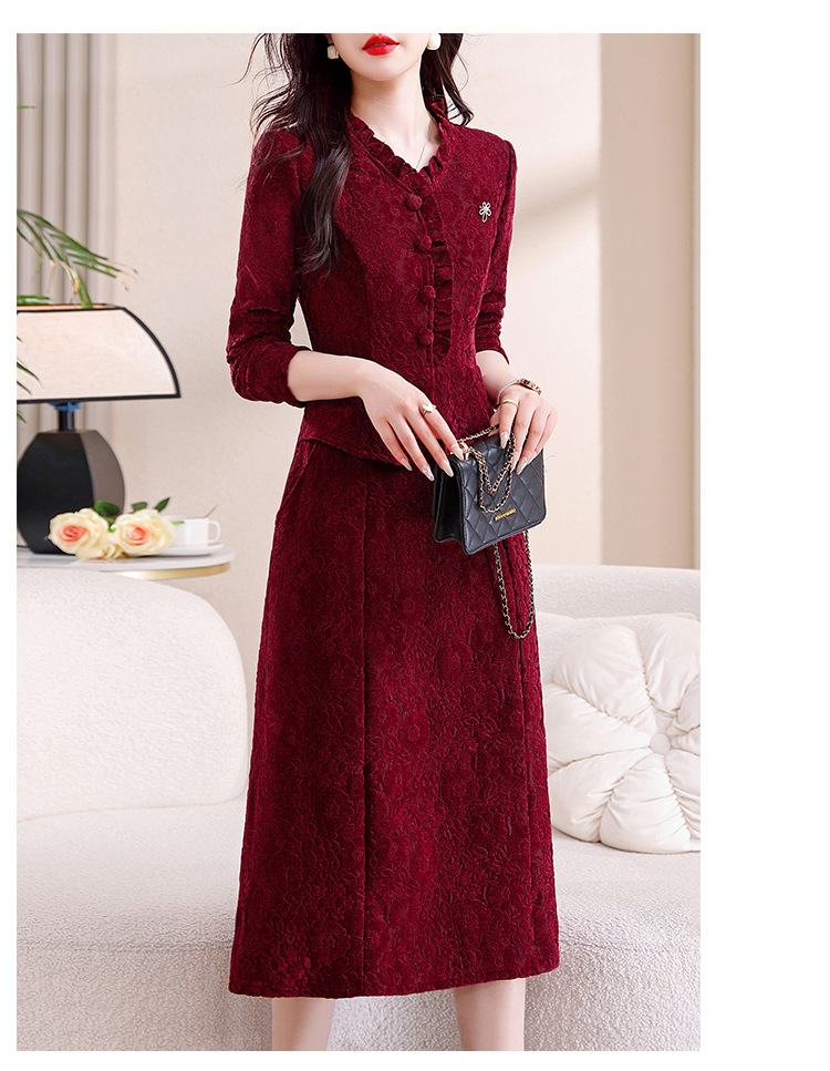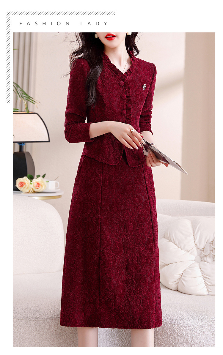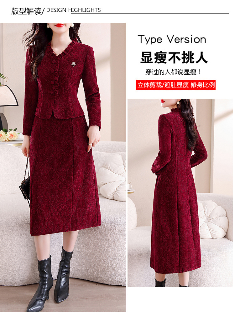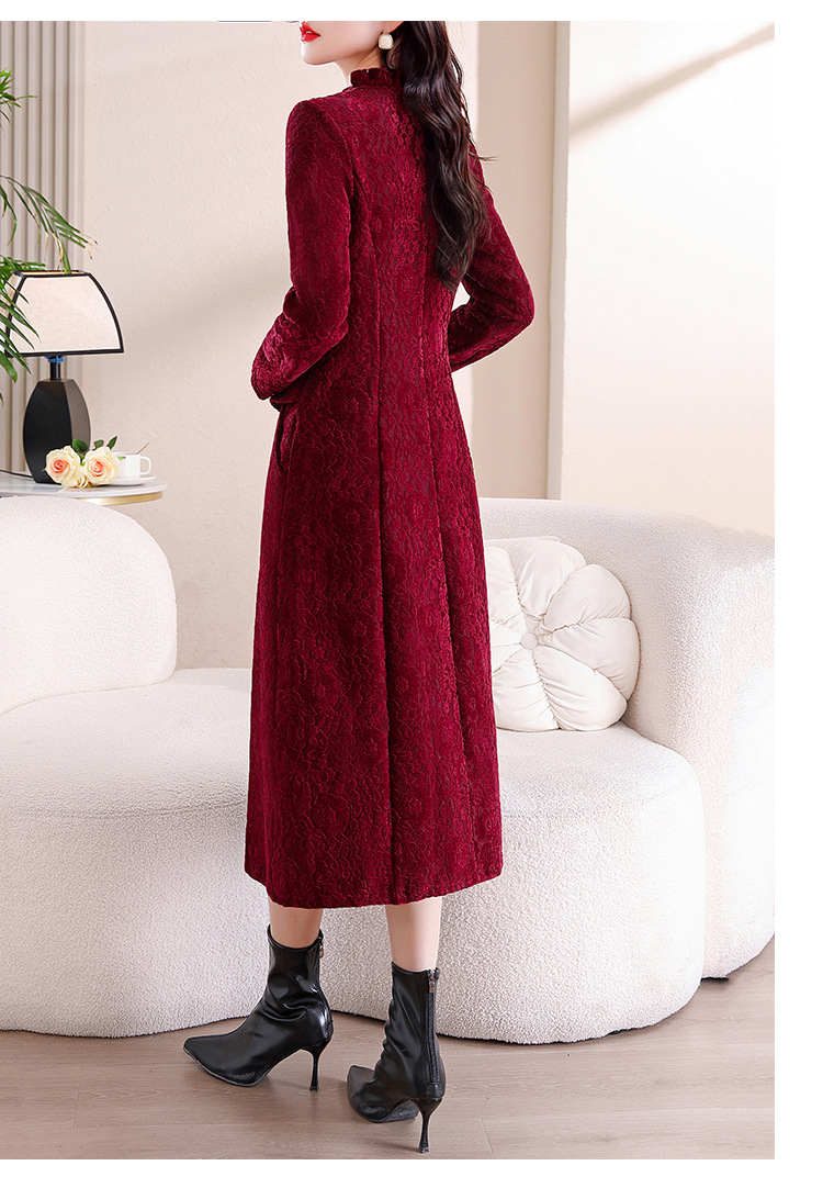 雀说安哥拉红碎花连衣裙新款时尚洋气V领拼接假两件中长裙AL9797