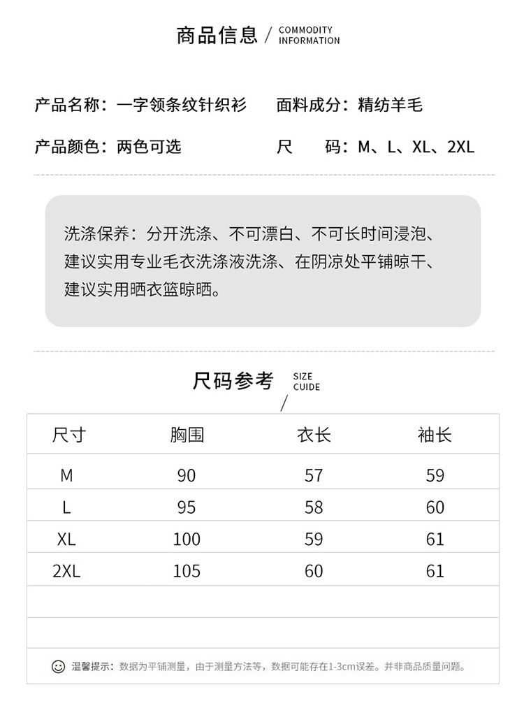雀说新款精纺羊毛一字领羊毛针织衫女长袖条纹宽松套头上衣AL2332
