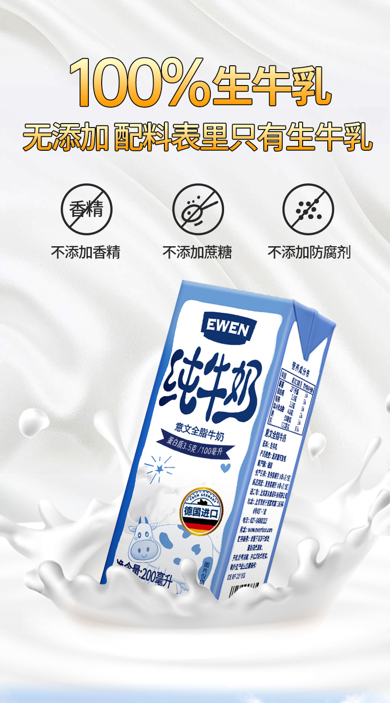 意文 德国进口 全脂纯牛奶 200ml*30盒整箱装