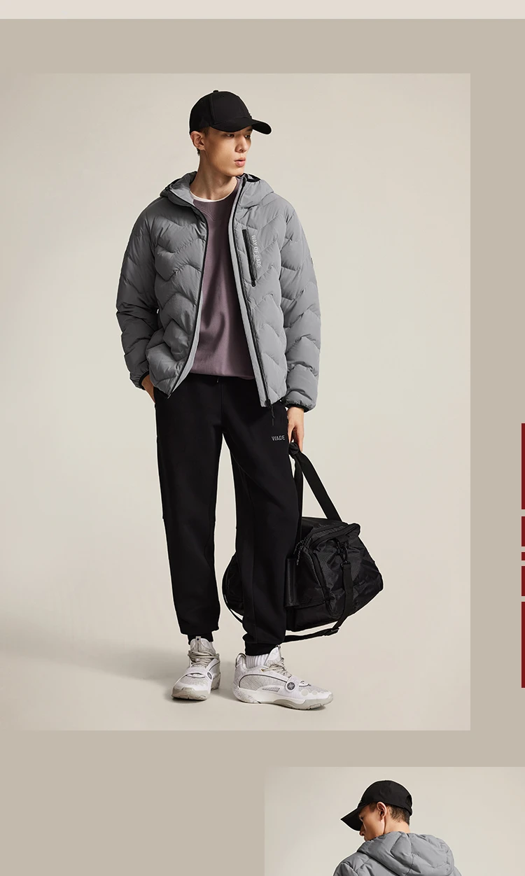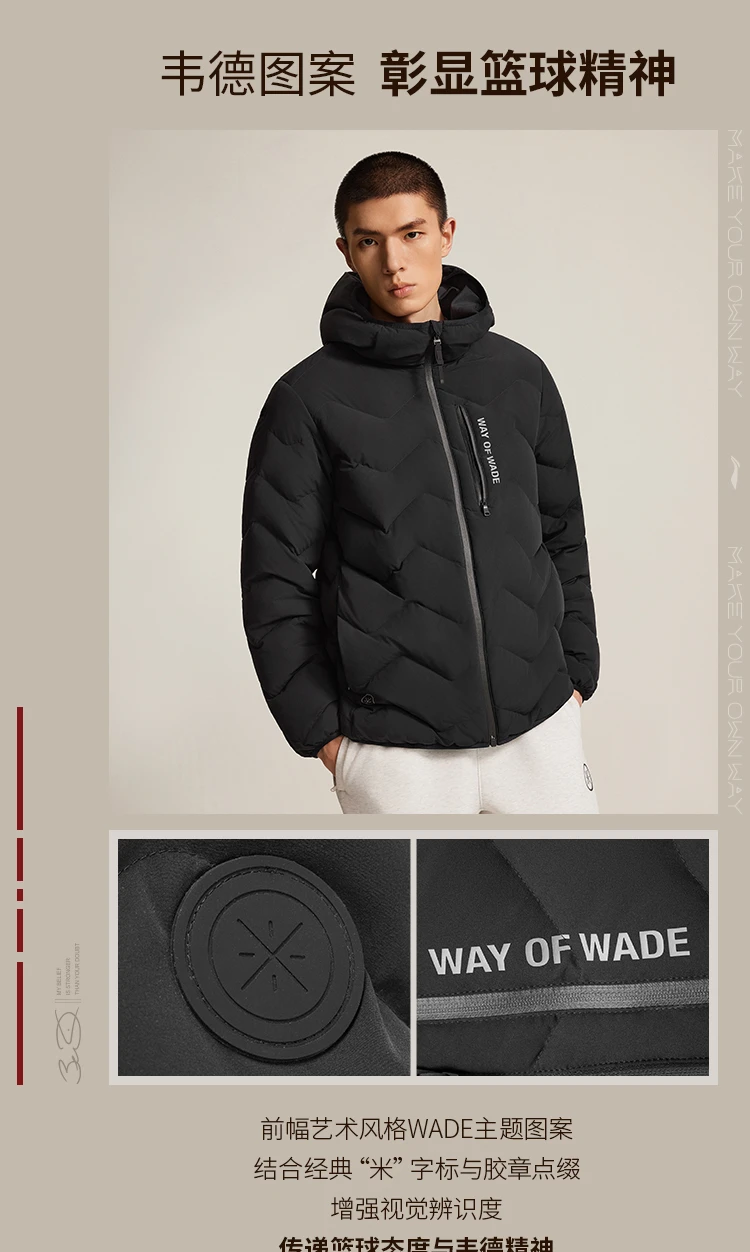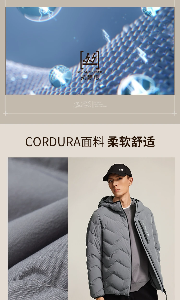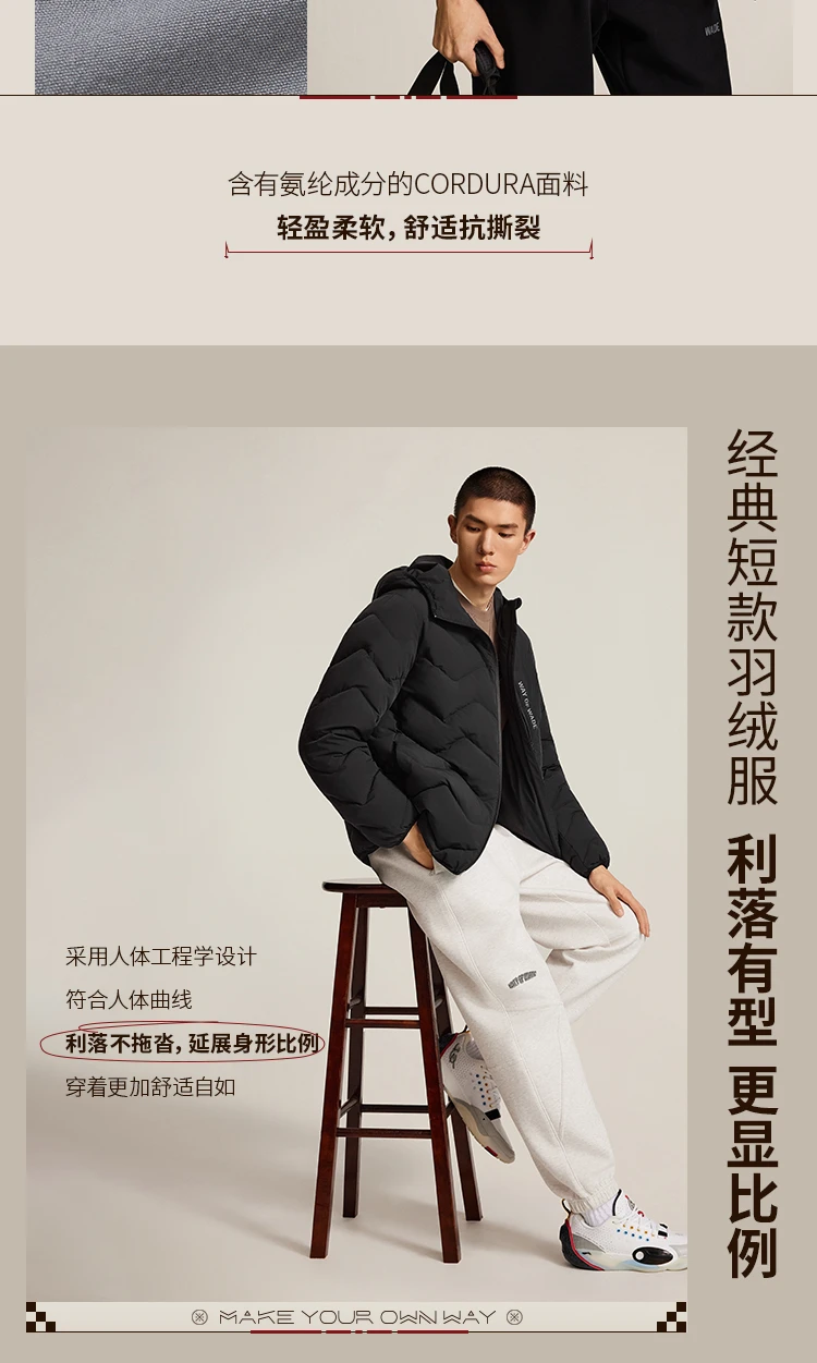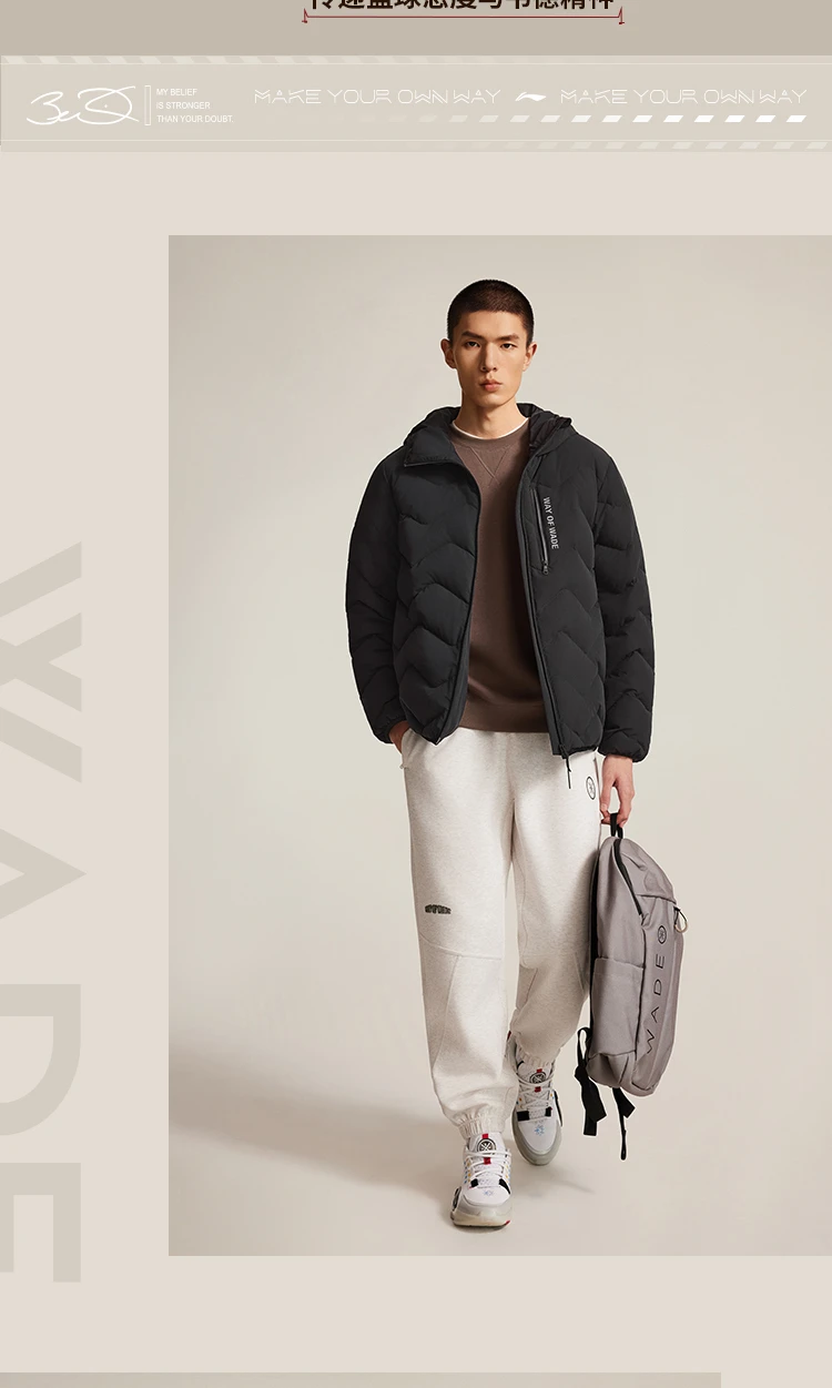 李宁韦德系列男子防泼水鹅绒短羽绒服AYMV055