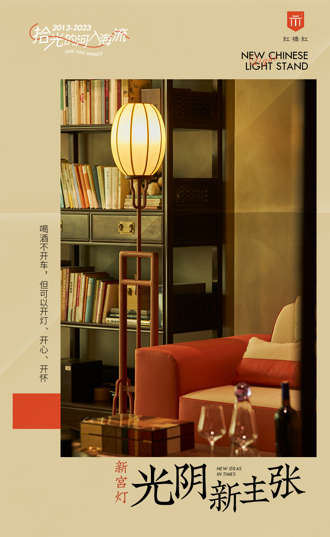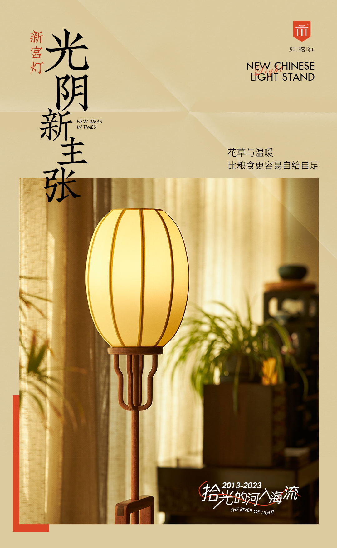 灯台由上至下以仿羊皮纸做灯罩,兼顾透光性、阻燃性及美感。内安可遥控智能灯泡。灯罩固定于圆盘之上,下安四块升龙形态的素挂牙;灯杆细长,打孔穿线,易致材料劈裂报废,技术难度颇高。故市面类似款型多将灯杆料对剖,再粘合以节约成本,难免美中不足。灯杆与下安横木呈倒T字形,横木两端纳入立柱内侧的长凹槽,故可上提或下按,实现上下自由调节,辅以弧形木楔,随意固定照明高度。