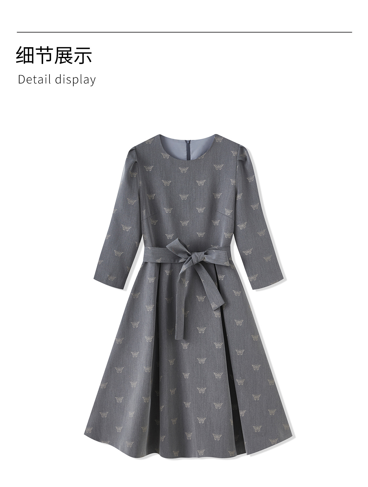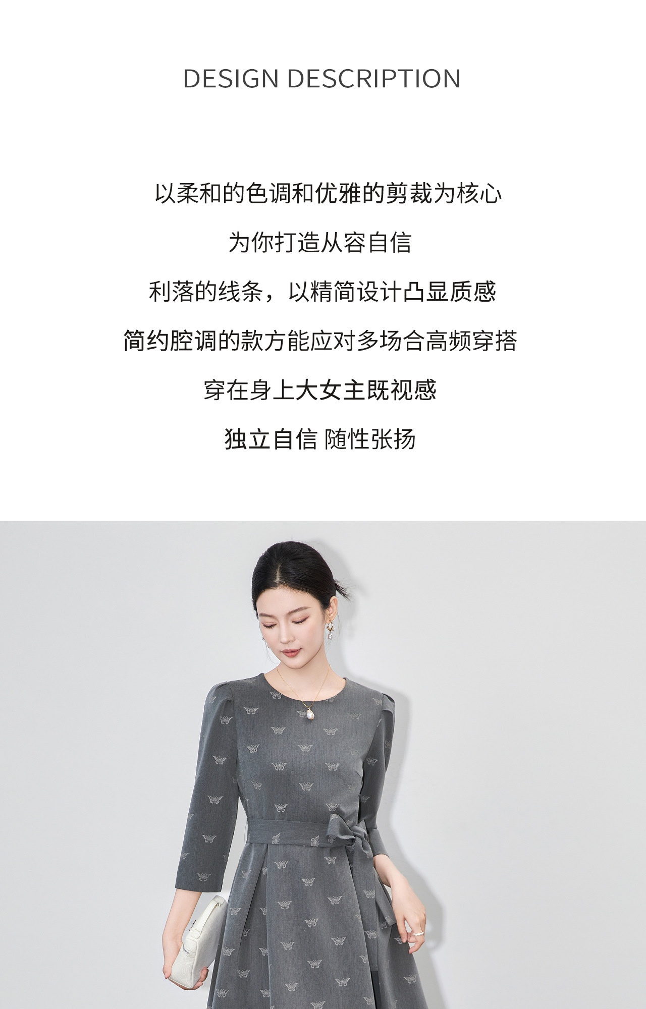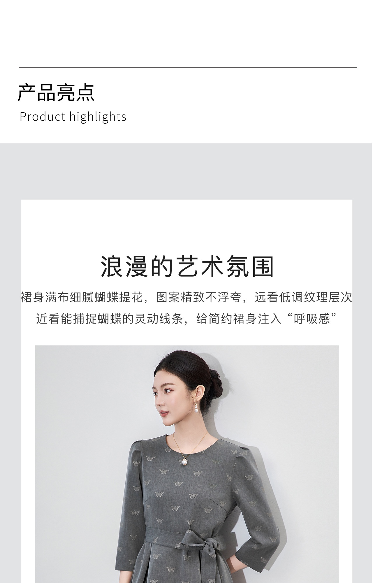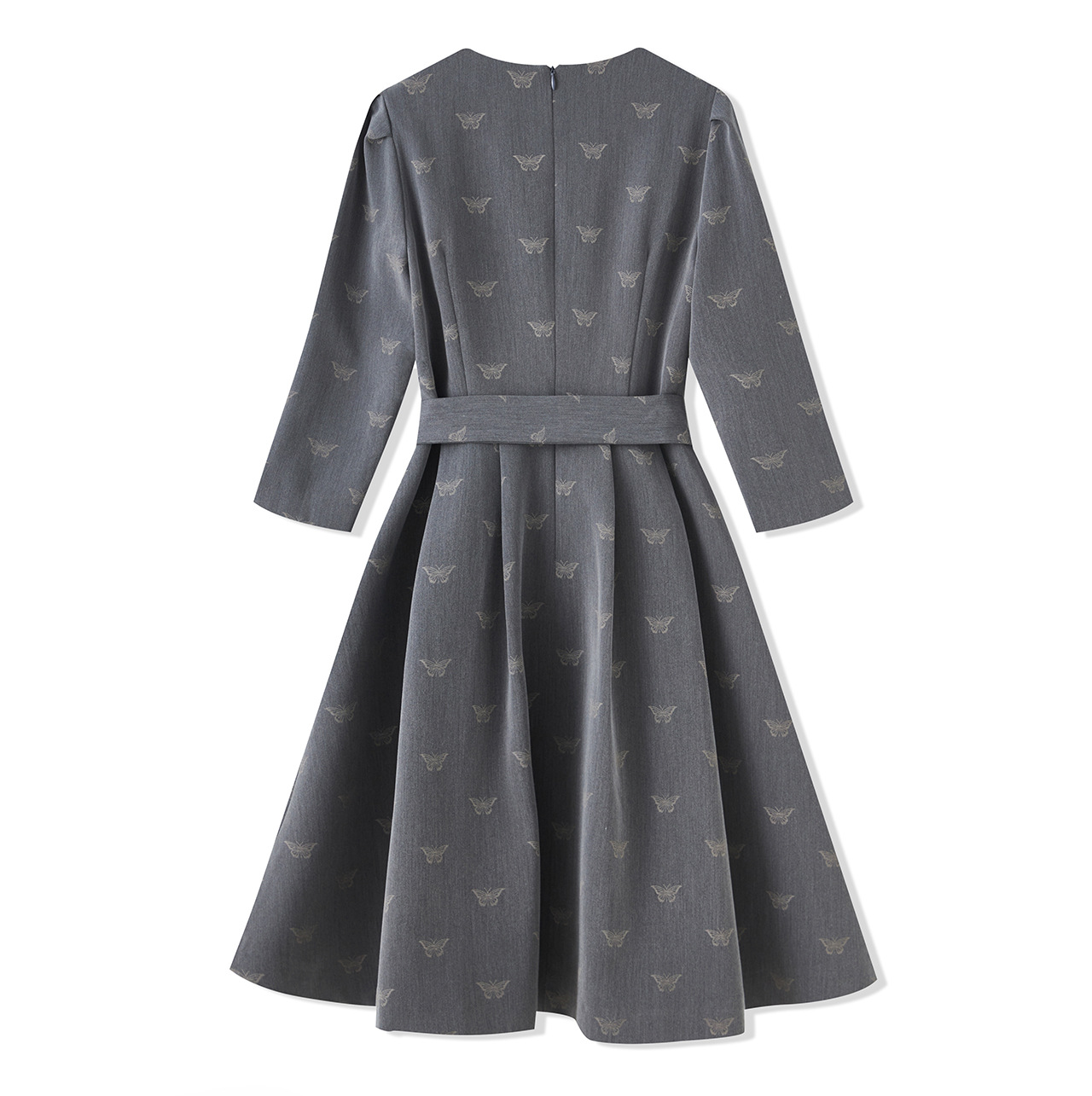 「高货wl」全新升级【铂金会员330/天猫439/差价109】(52724)洛诗琳法式复古蝴蝶提花连衣裙2025秋季系带收腰大摆A字裙