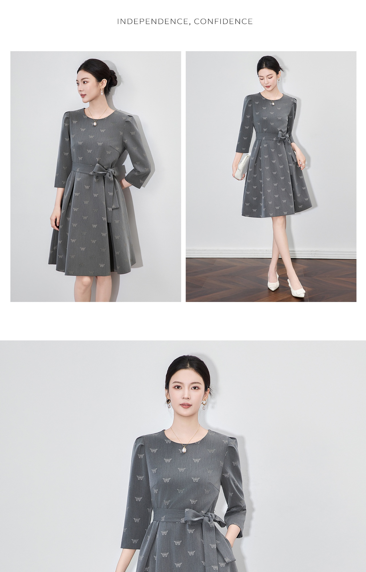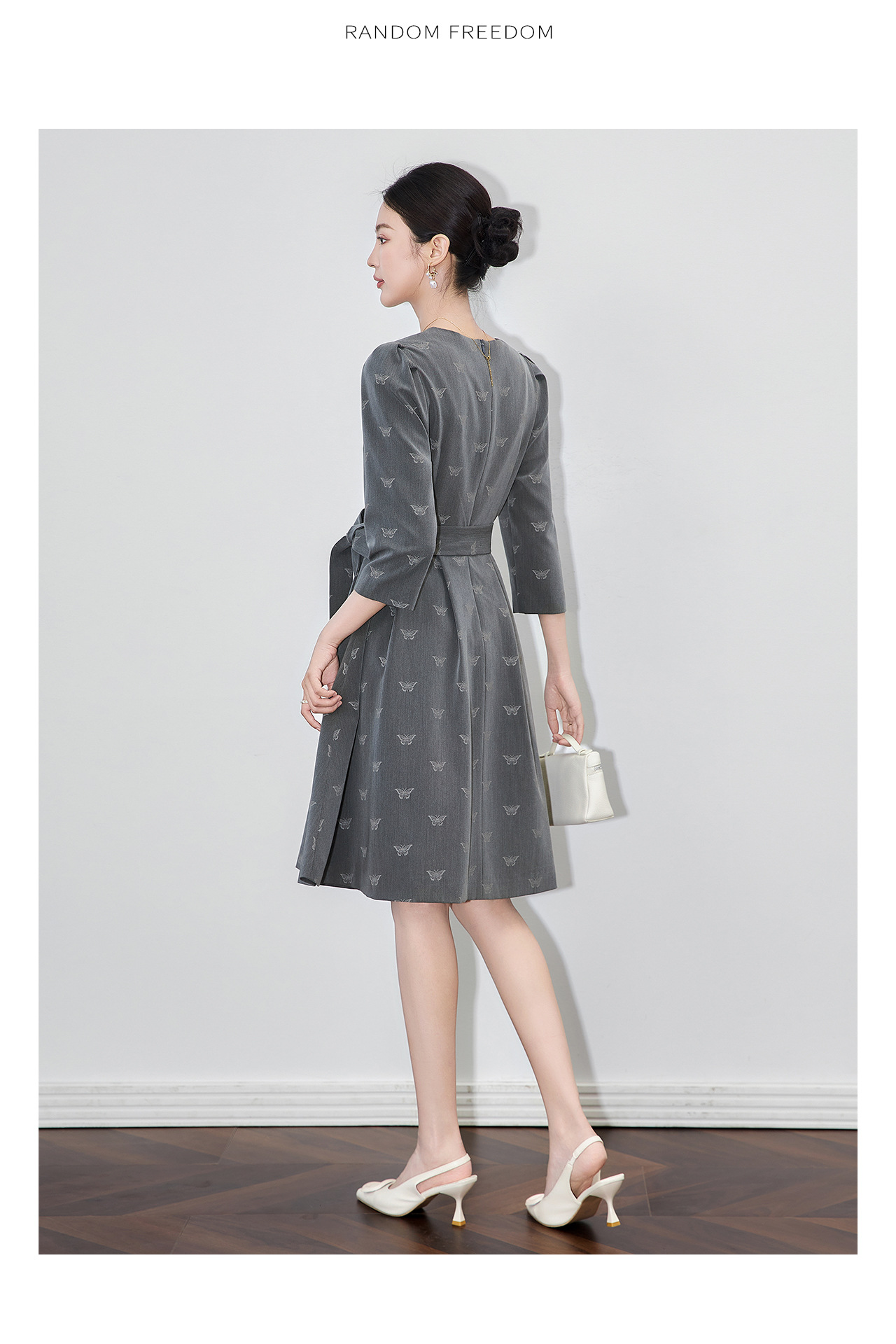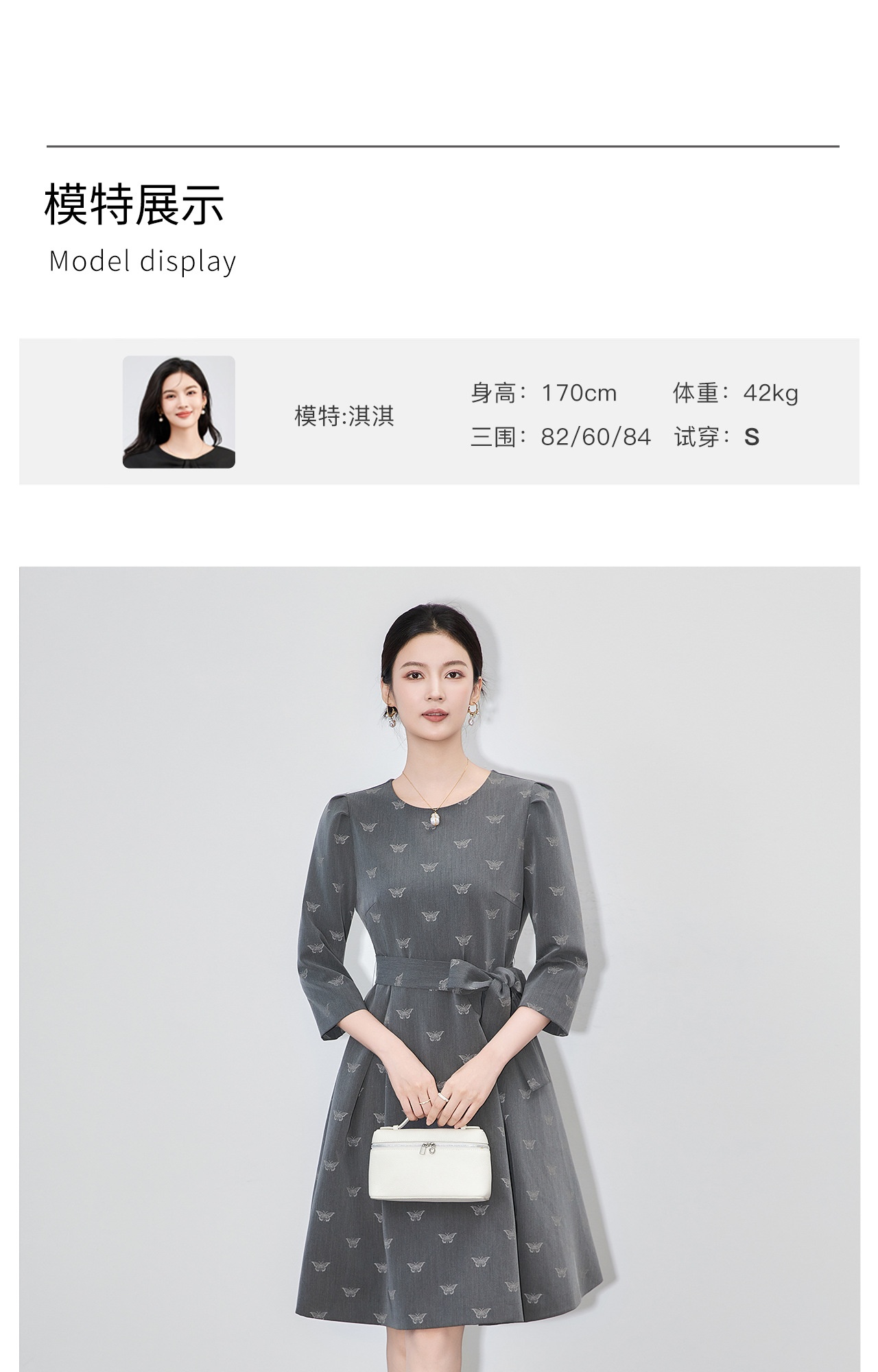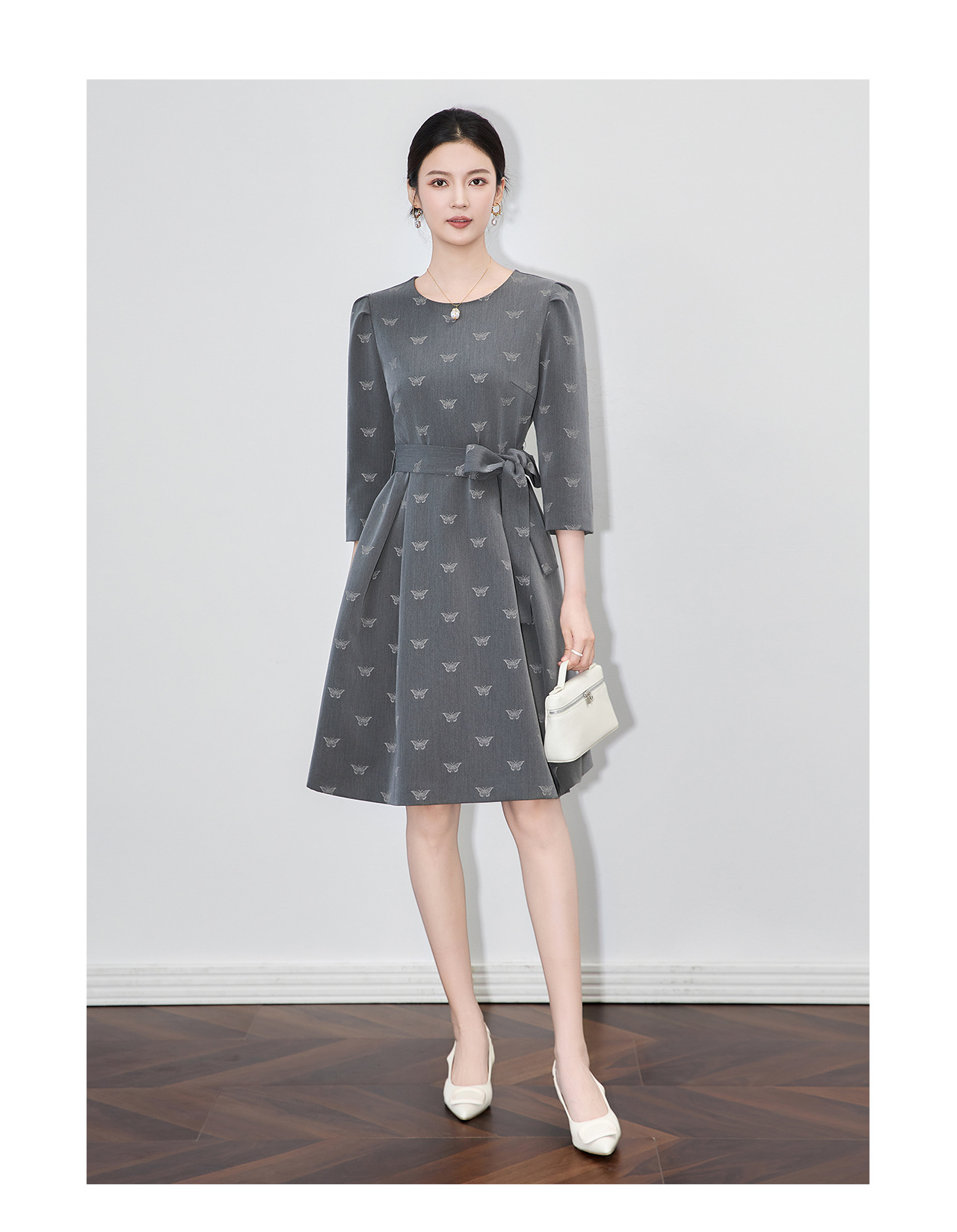 「高货wl」全新升级【铂金会员330/天猫439/差价109】(52724)洛诗琳法式复古蝴蝶提花连衣裙2025秋季系带收腰大摆A字裙