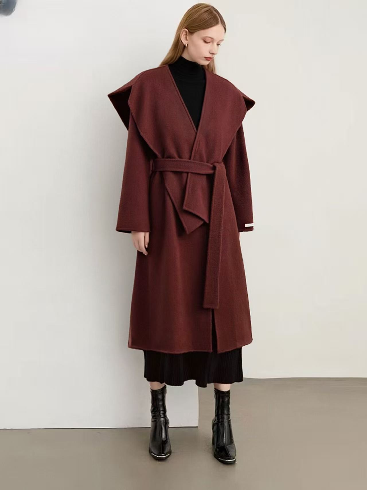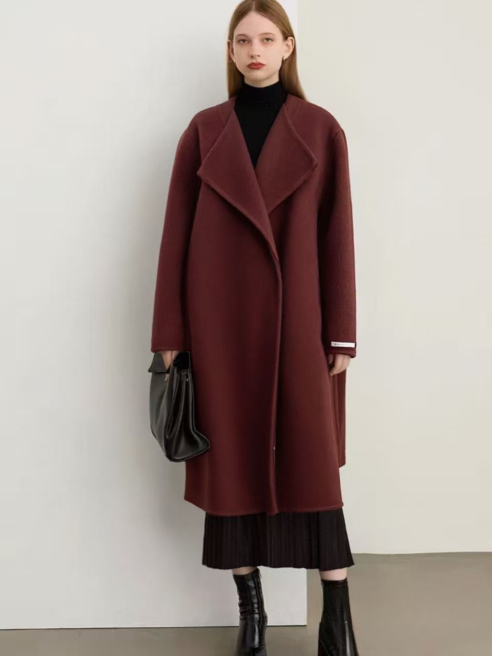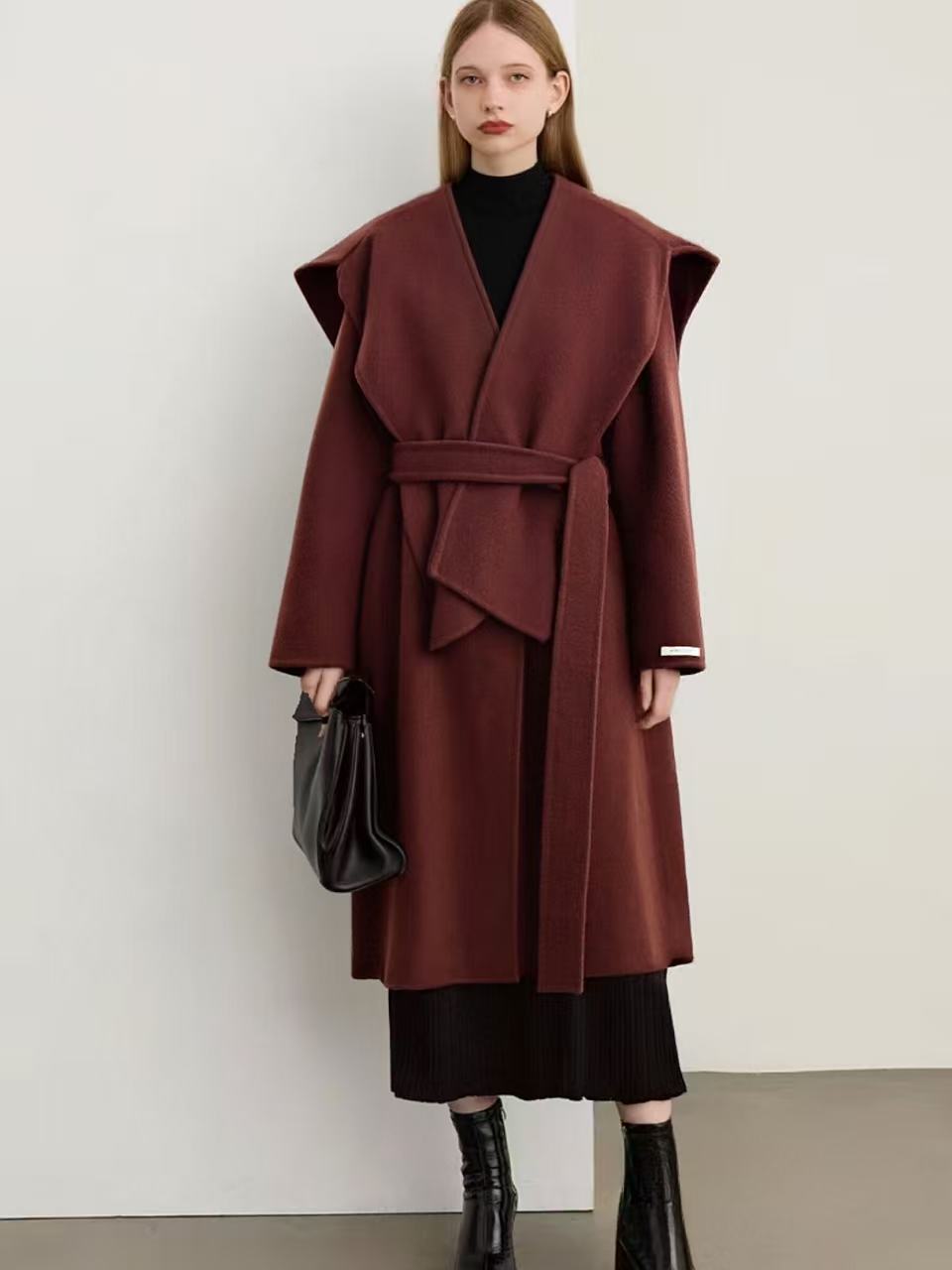 披肩可拆卸【轻奢双面尼】2526(100%绵羊毛)超显白配色~安哥拉红披肩款双面尼外套大衣-喜出