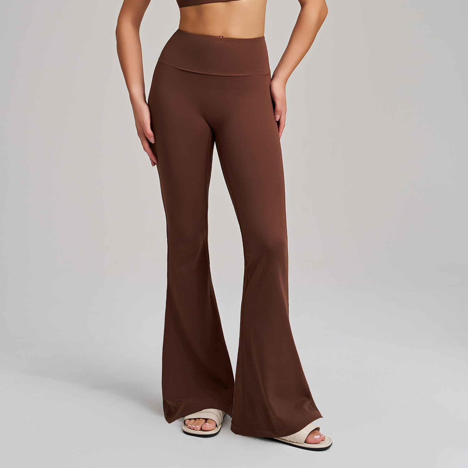 跃牌【安琪拉系列】新款阔腿紧身裸感提臀瑜伽喇叭裤舞蹈高腰微喇休闲运动裤CK9113