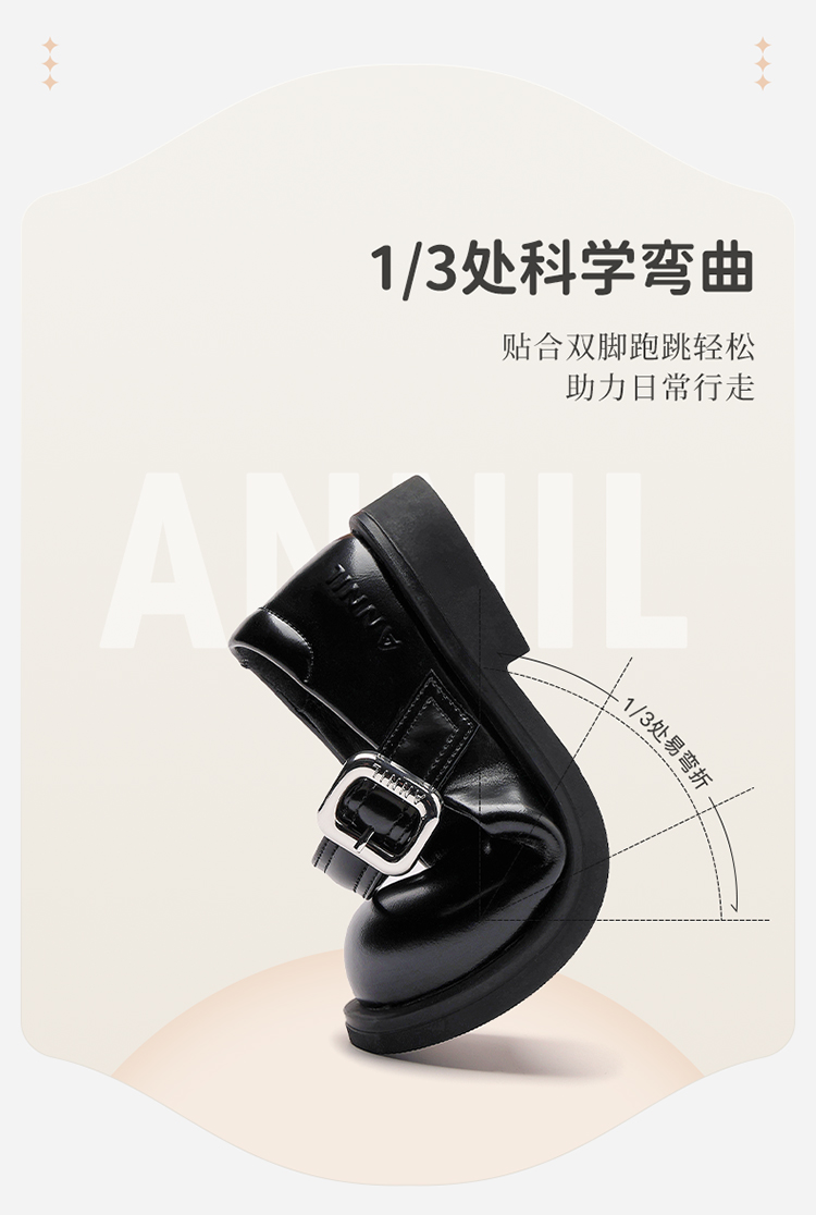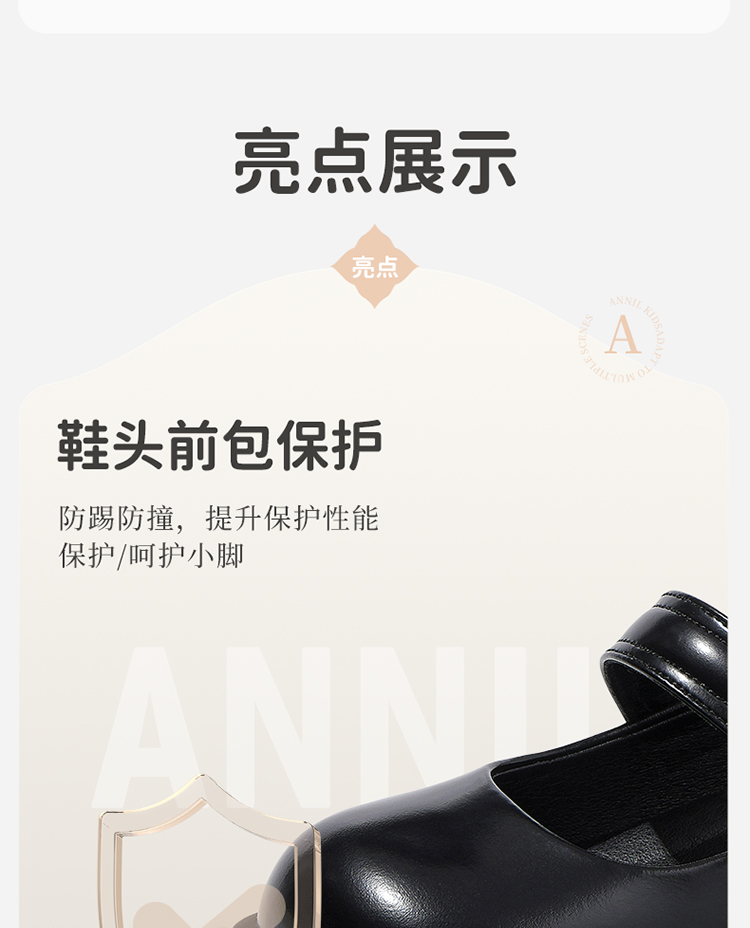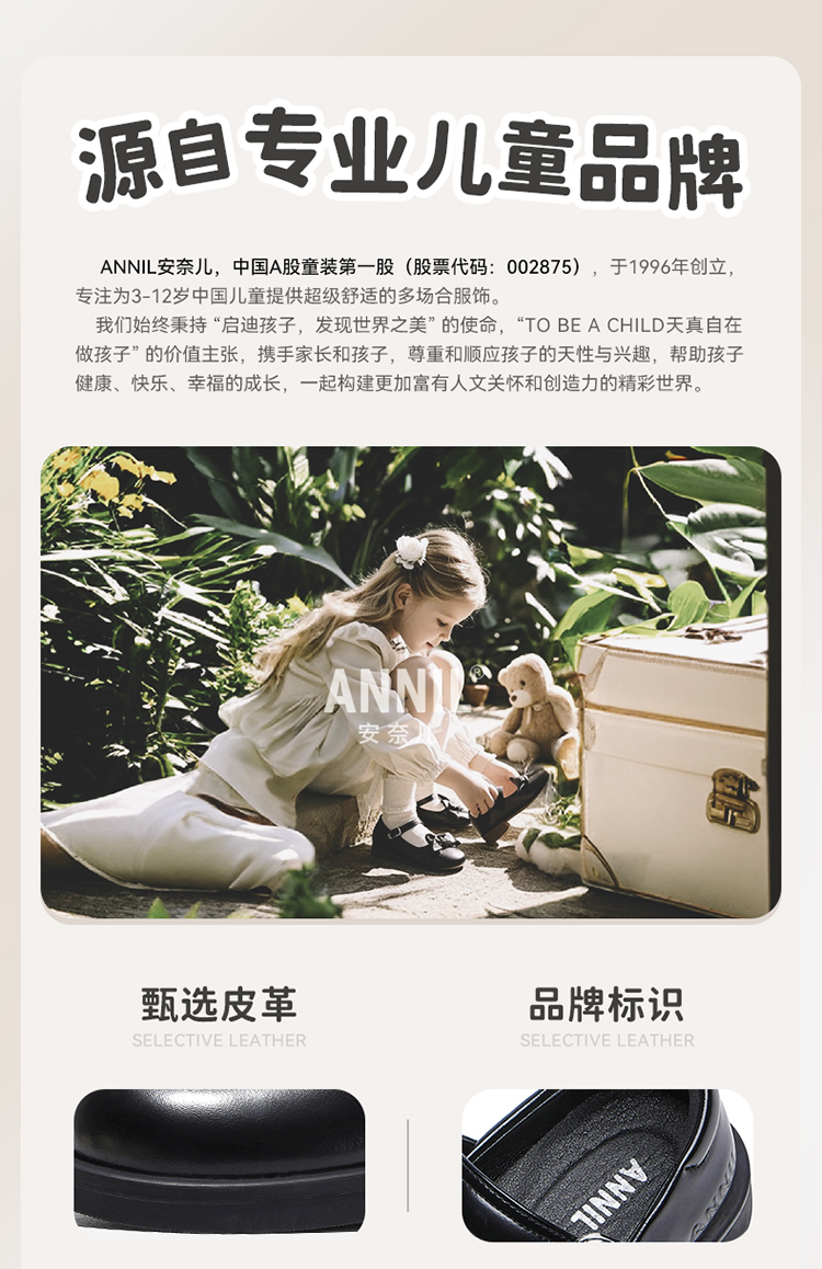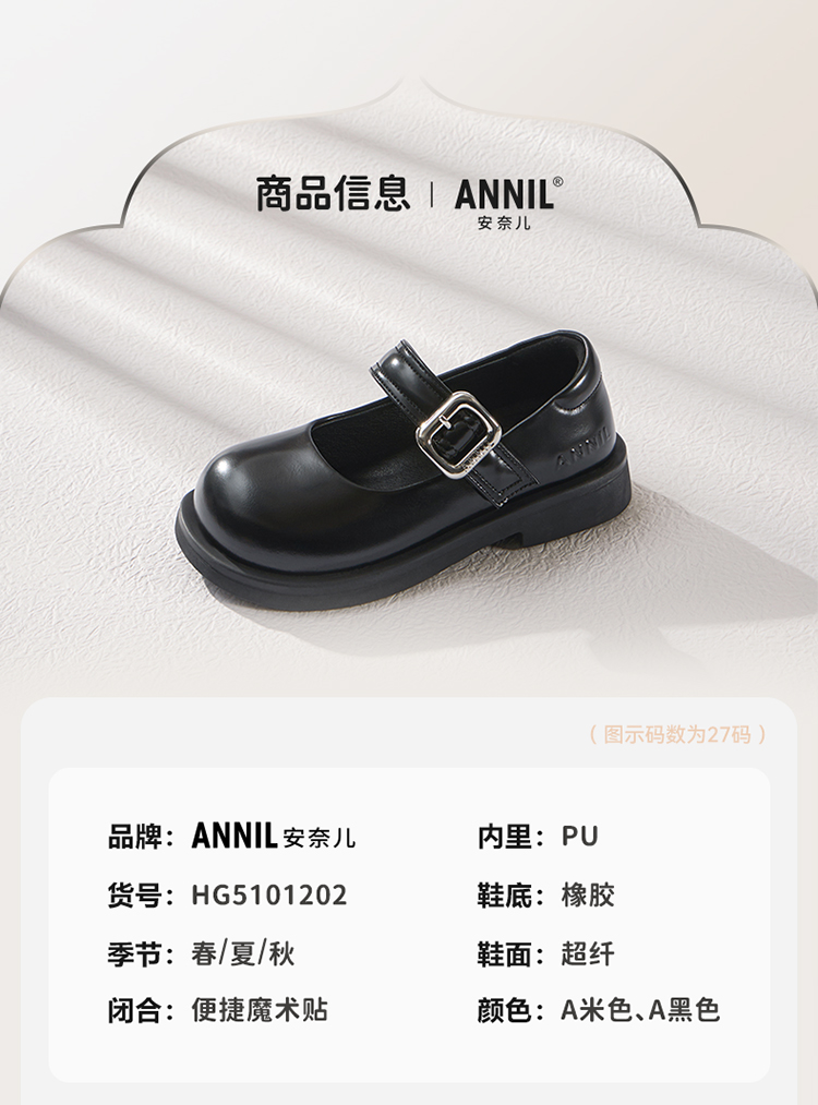 ANNIL/安奈儿女童皮鞋2025春季新款女孩演出儿童舞蹈鞋公主黑色软底单鞋HG5101202