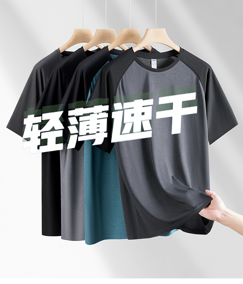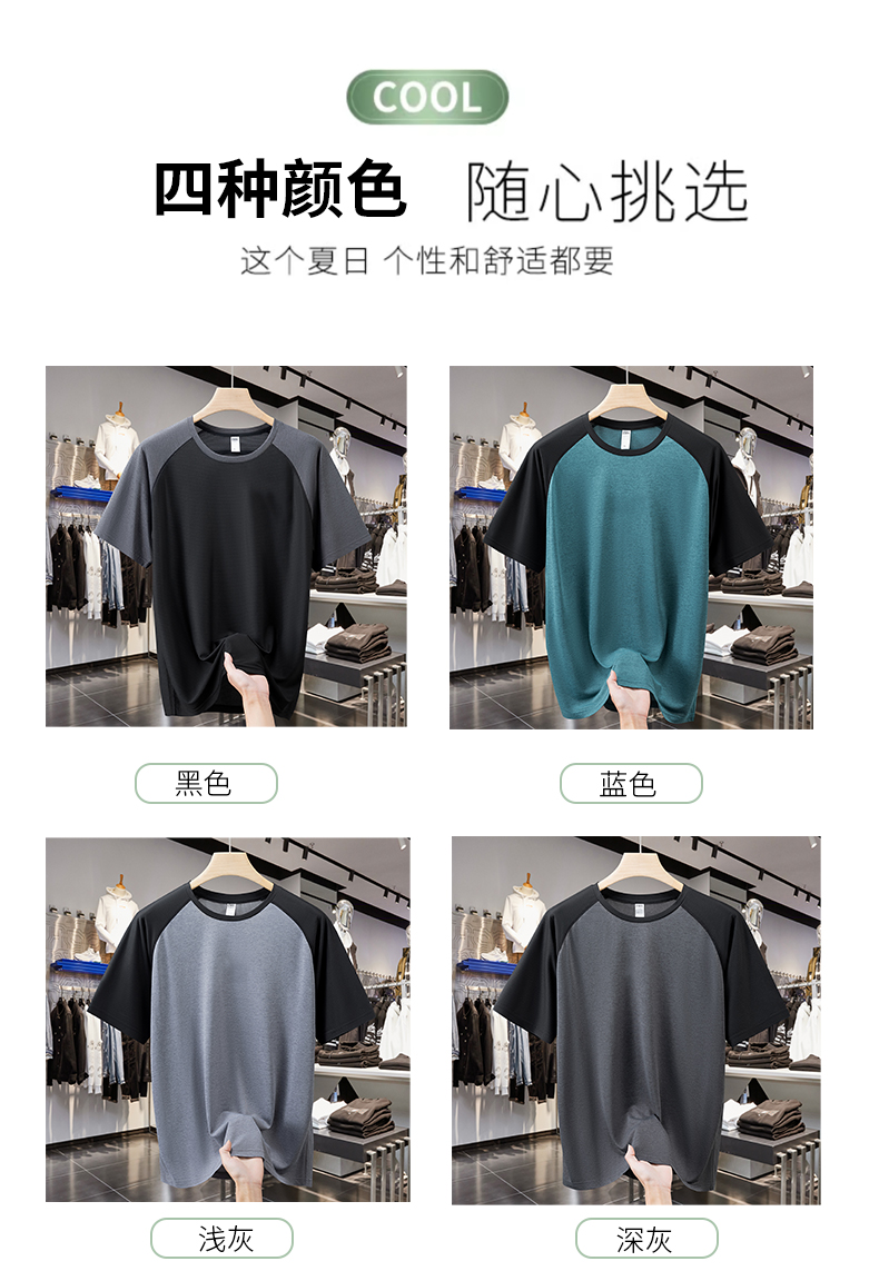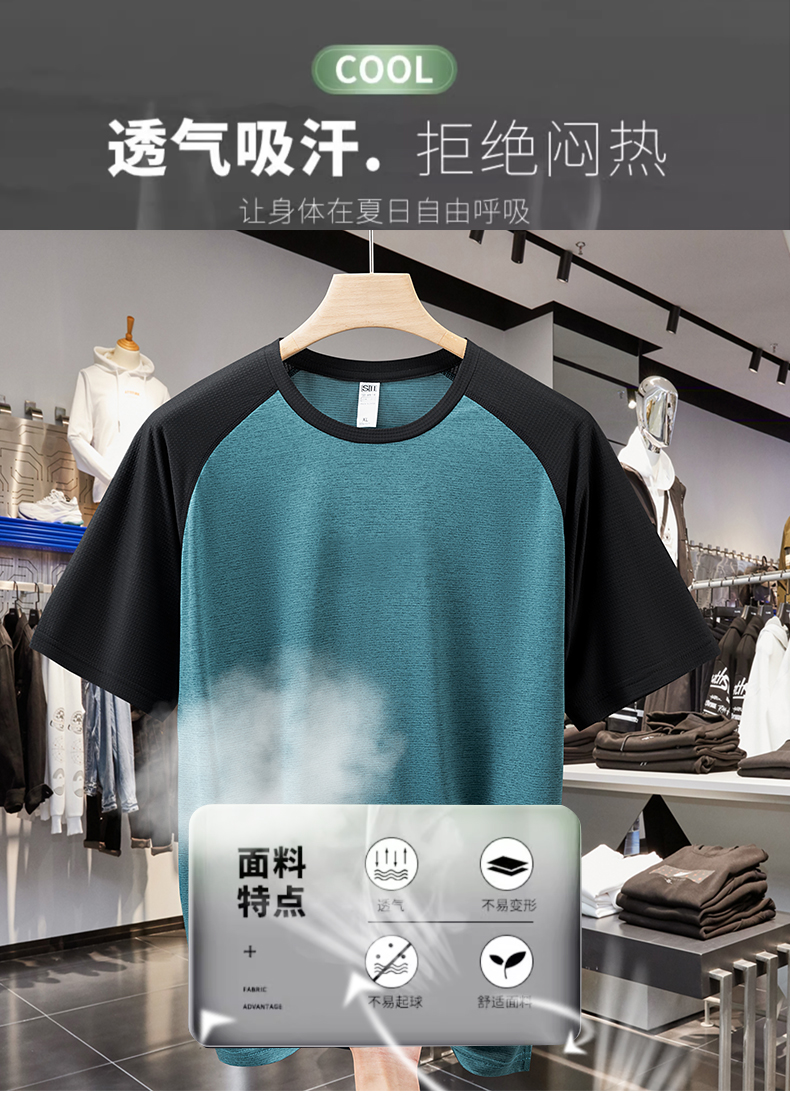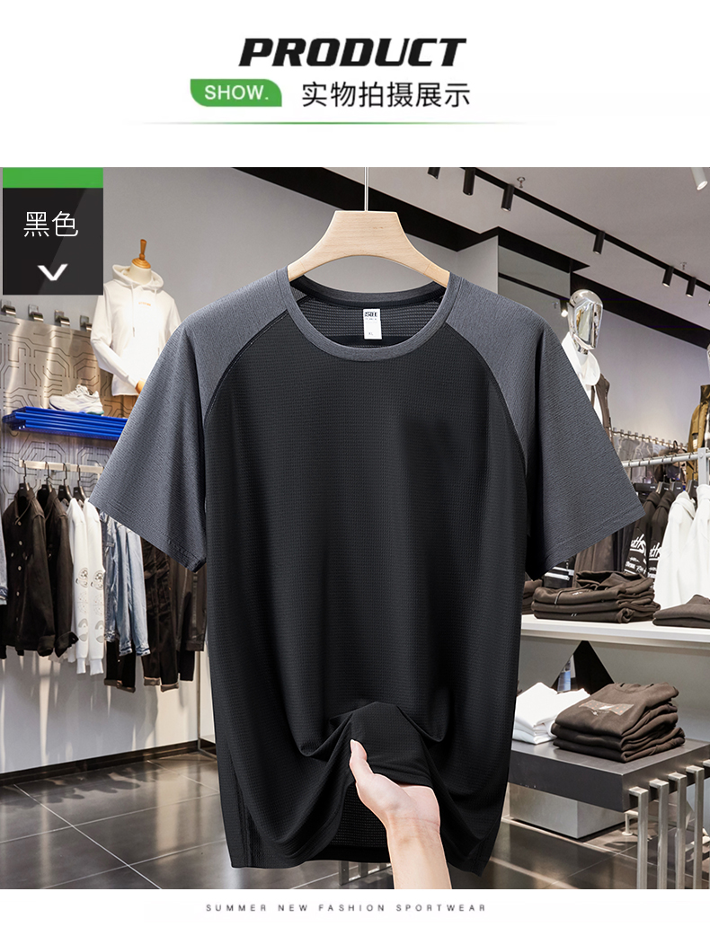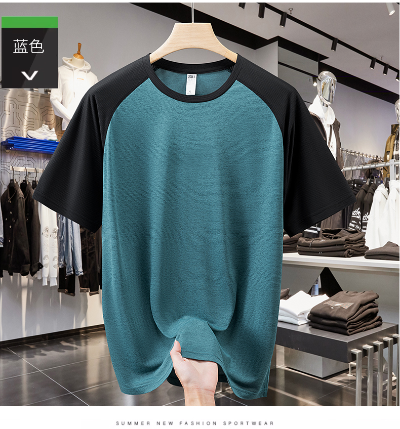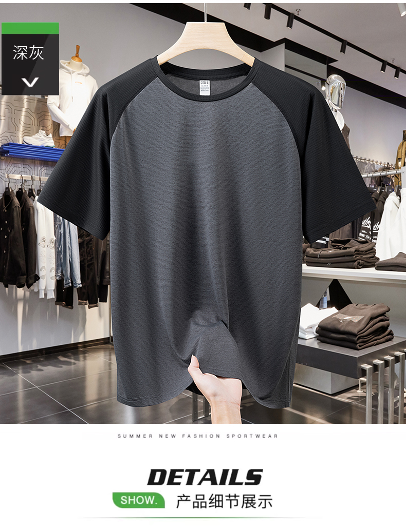【速干】【DH】大依优型大码拼接短袖T恤加肥加大宽松休闲胖子打底半袖男士上衣潮流