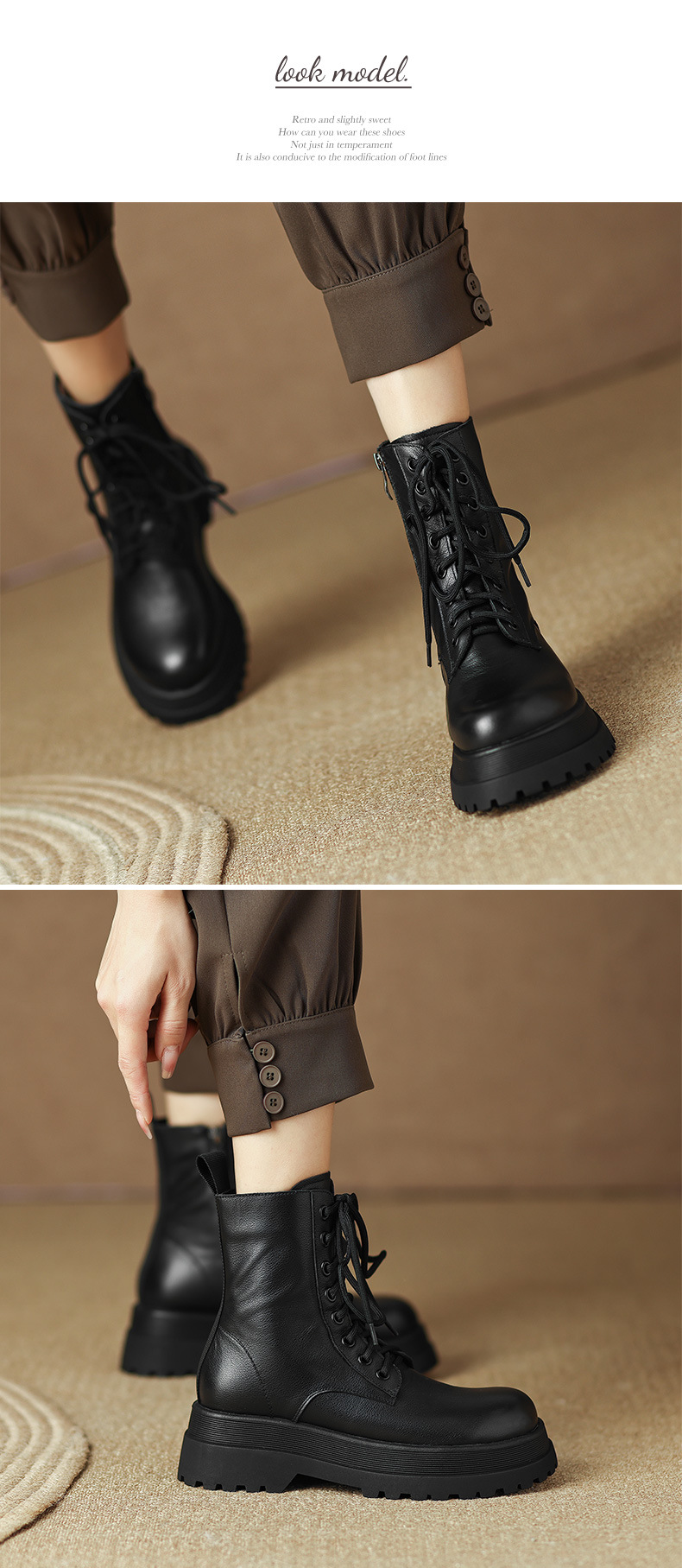 英伦风厚底,系带短靴黑色女靴DTN-XB79-2