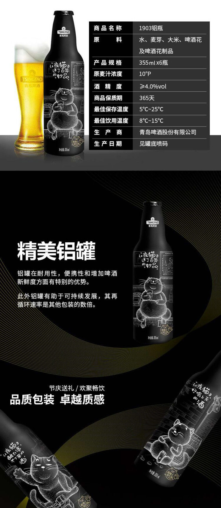 青岛啤酒 经典(1903)夜猫子10度355ml*6铝瓶/箱2.0版 商品图1