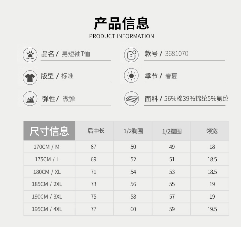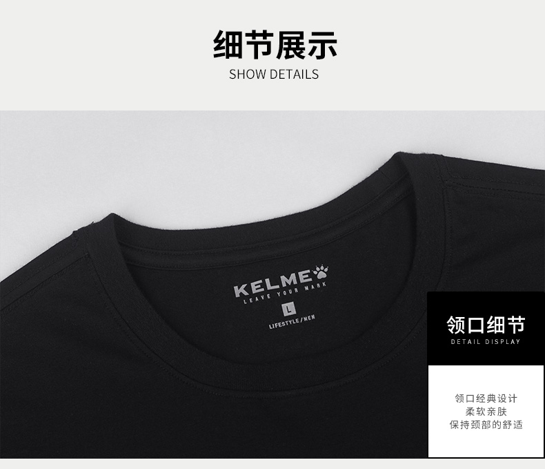 KELME 卡尔美纯色棉短袖夏季新款男士运动T恤纯色透气休闲T恤